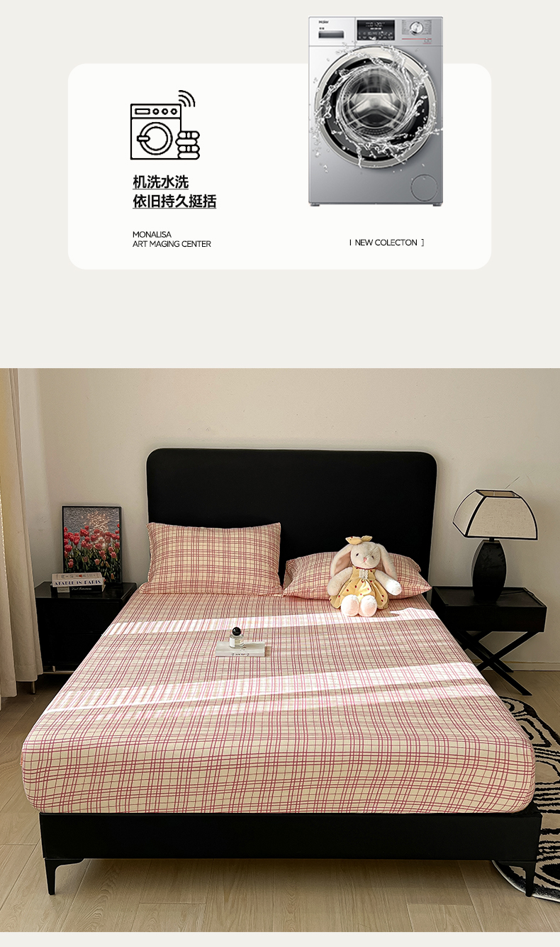 • 91家纺网 家纺一手货源 找家纺 韩巢家纺 2026新款三层纱单床笠热销款防滑床笠单件 梅森-粉
