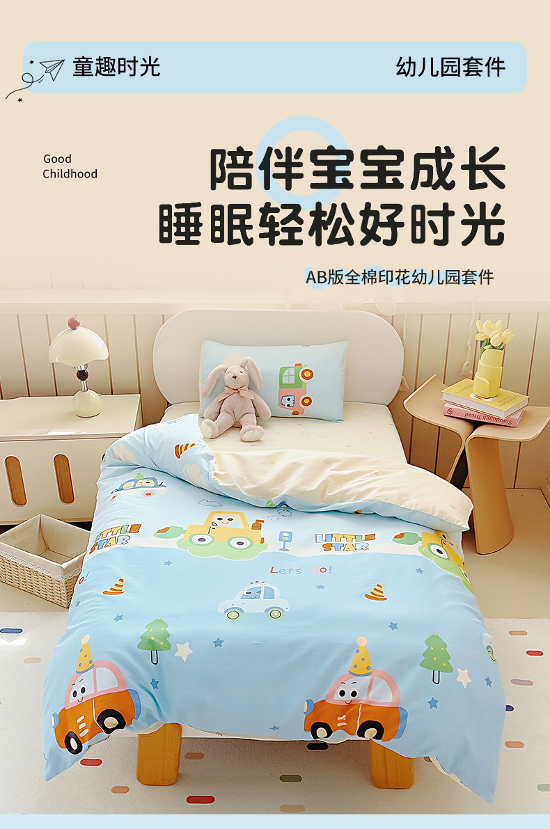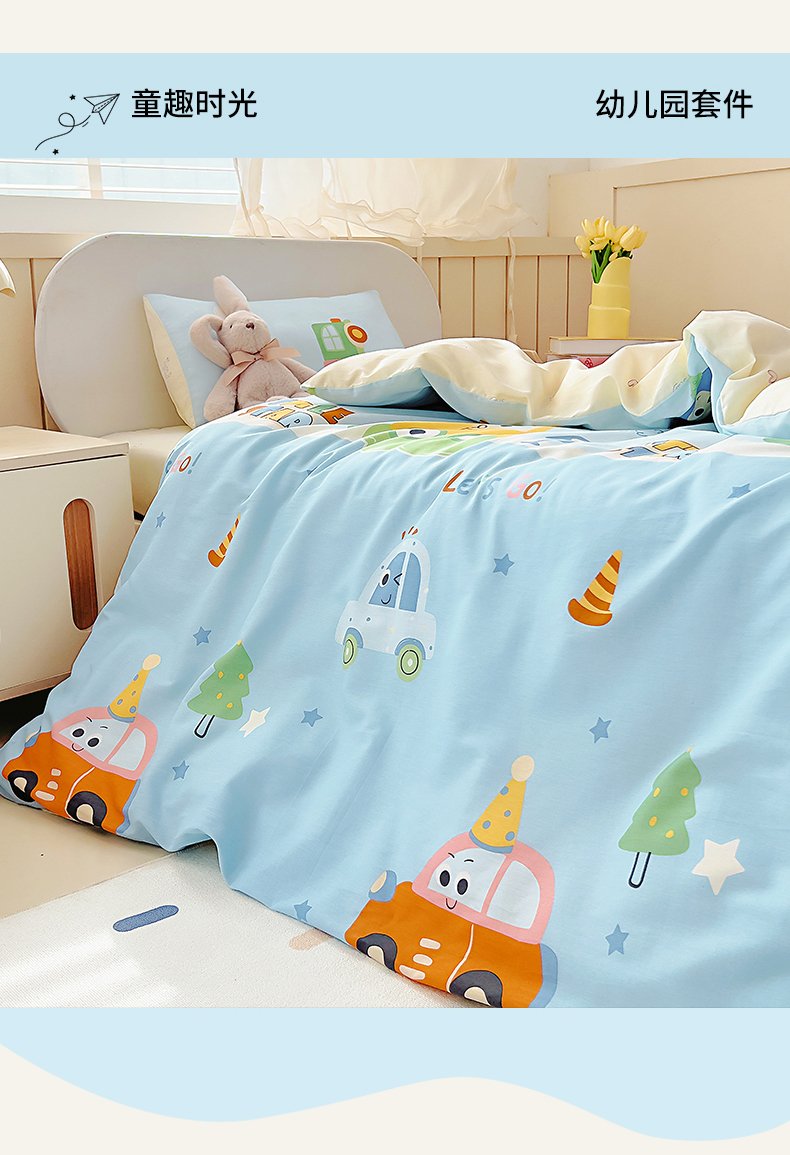 当前位置: 91家纺网 > 商品网购 > 床品套件 > 四件套 > 全棉普通四件套 > 御棉坊 2026新款AB版全棉纯棉印花幼儿园三件套儿童午睡被宝宝入园含芯多件套 挖机行动
