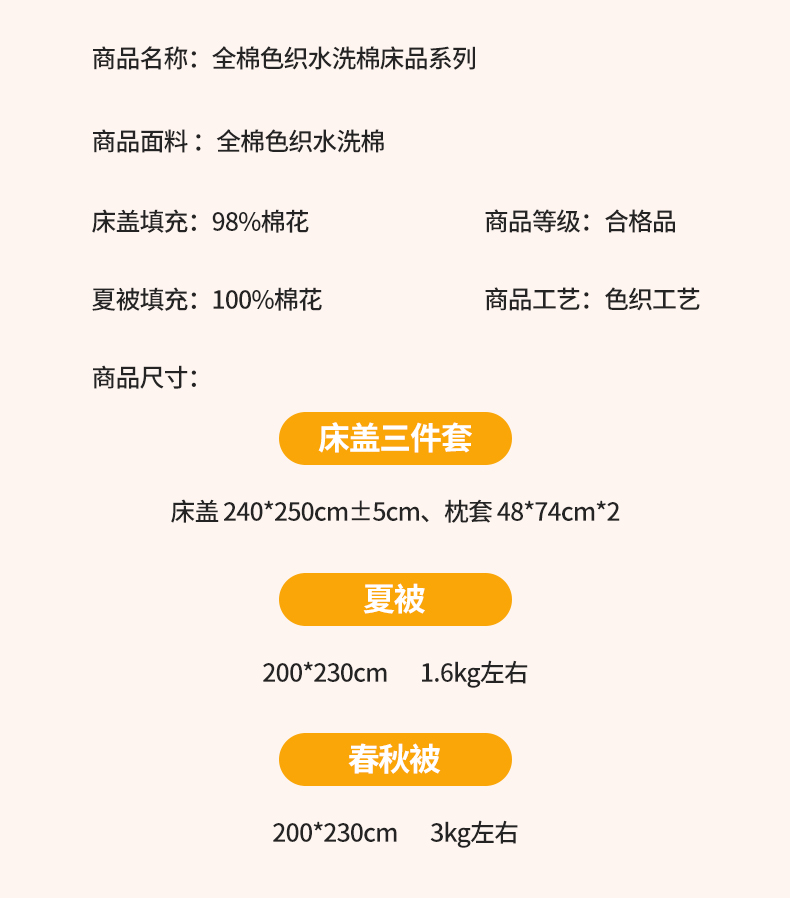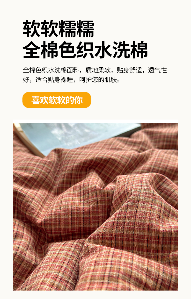商品名称:(总)橙子家居 2026新款全棉纯棉色织水洗棉棉花床盖四件套
