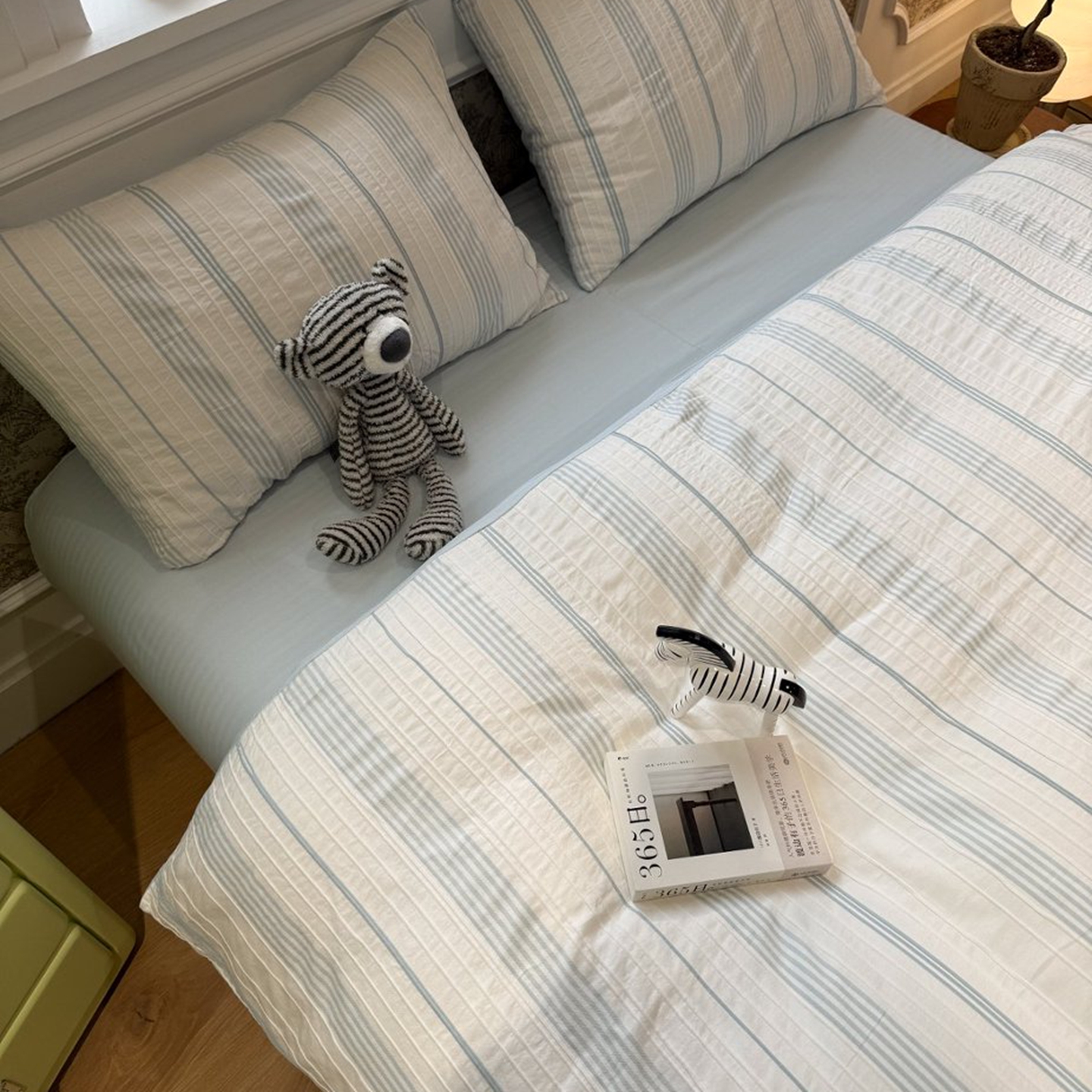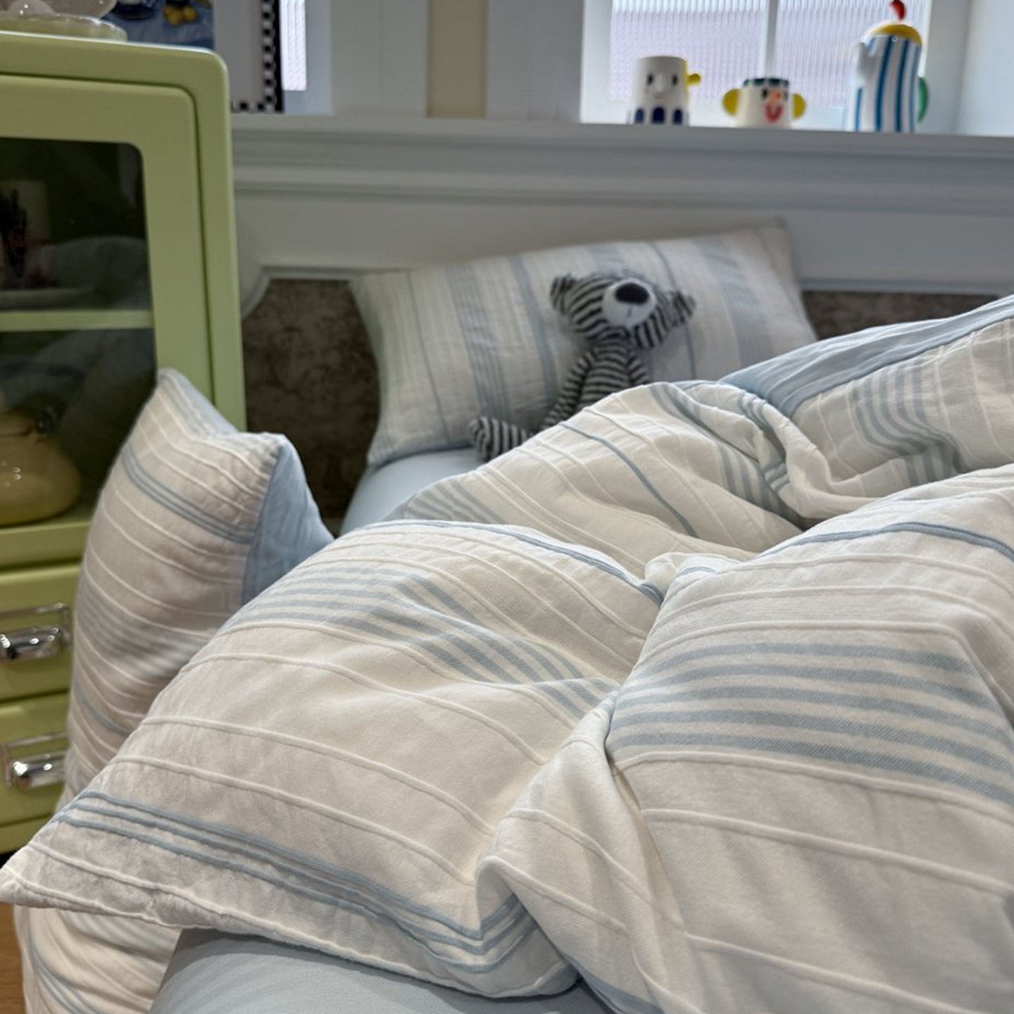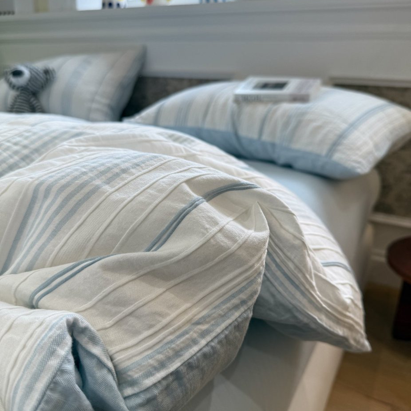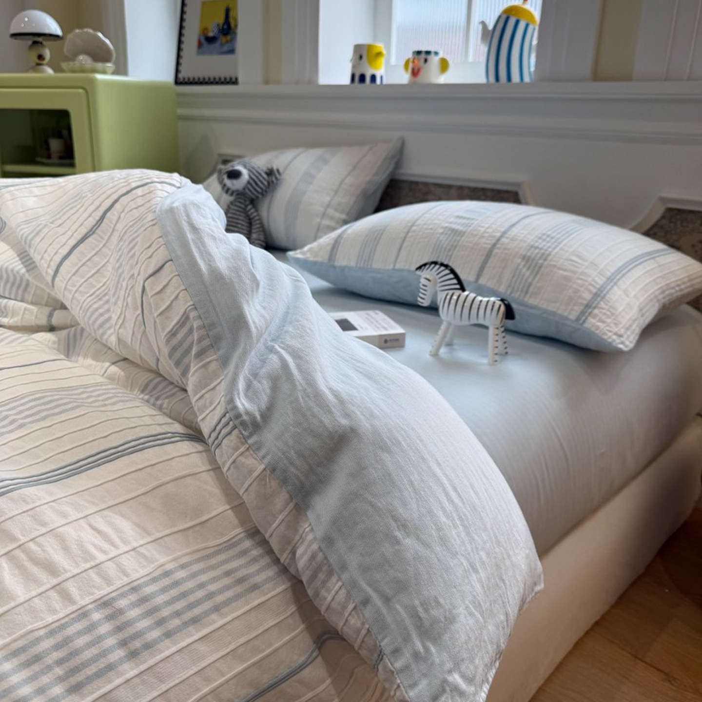商品名称:仰望棉麻双层纱供应链 2026新款全棉色织提花四件套-太妃糖-蓝