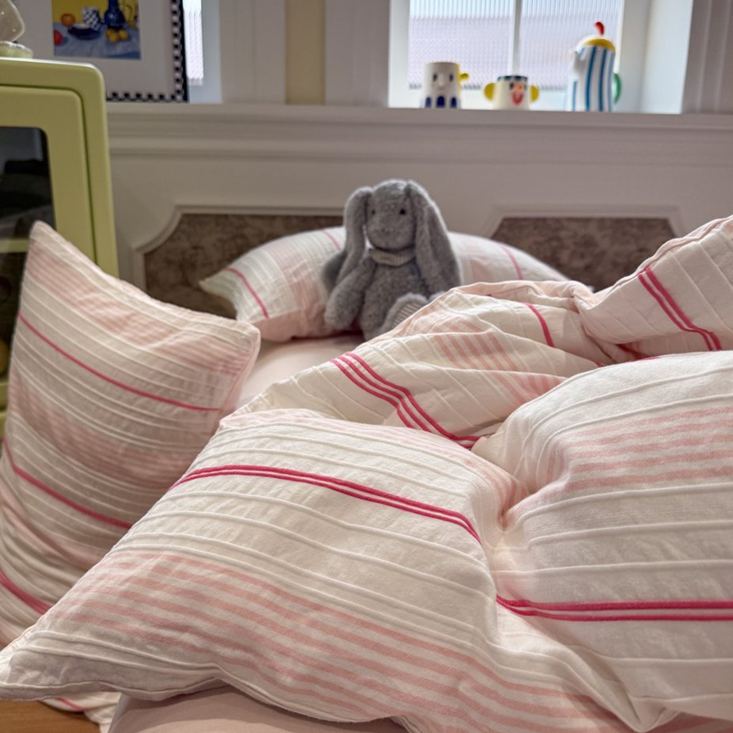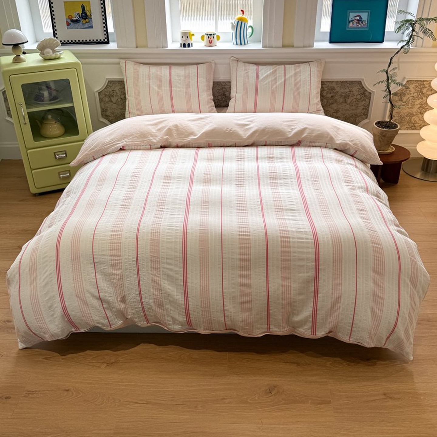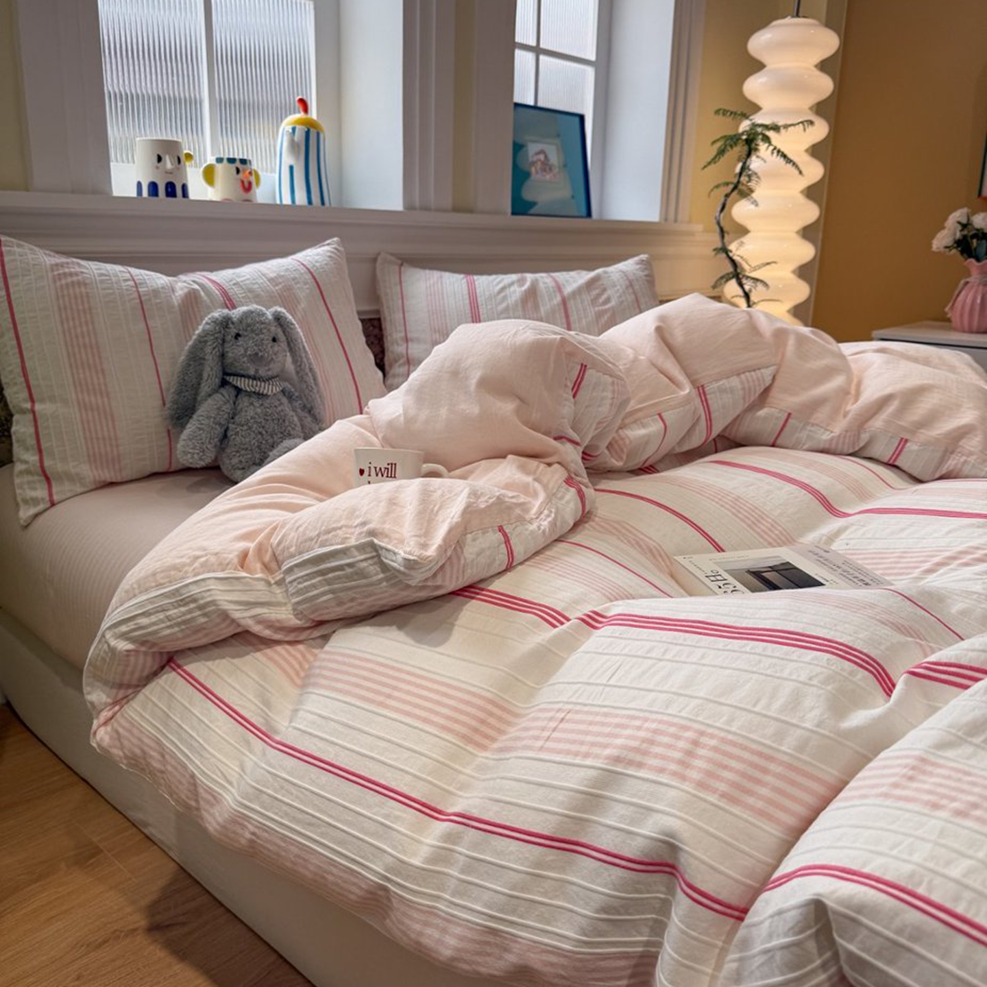 (总)仰望棉麻双层纱供应链 2026新款扶摇小清新风全棉纯棉色织提花双层纱纽扣款四件套,扶摇-薄荷绿,扶摇-黑云,扶摇-紫粉