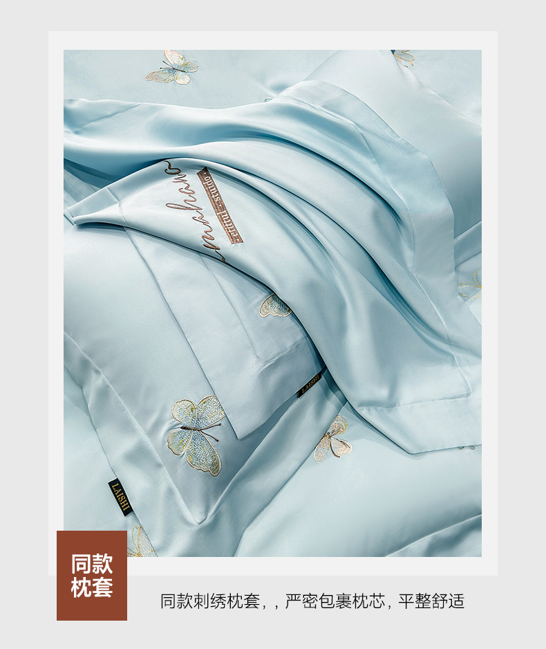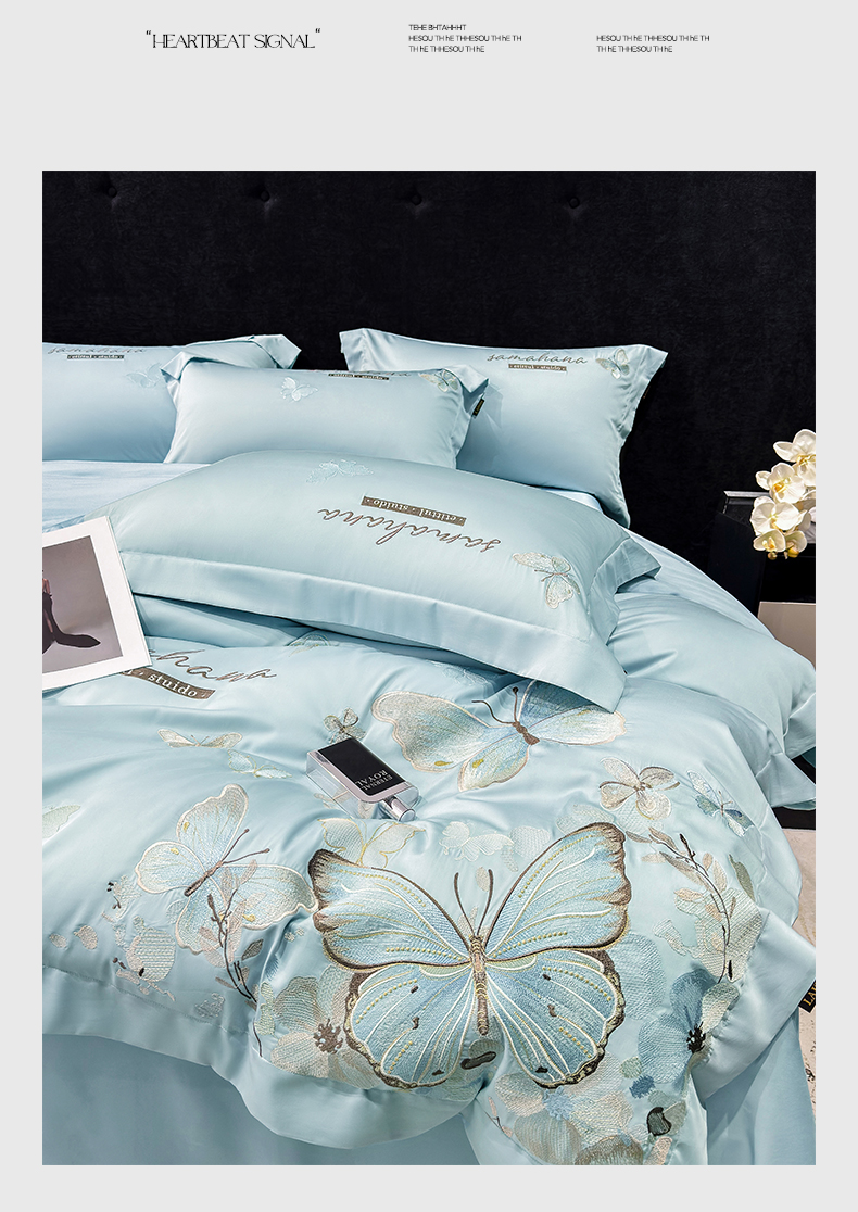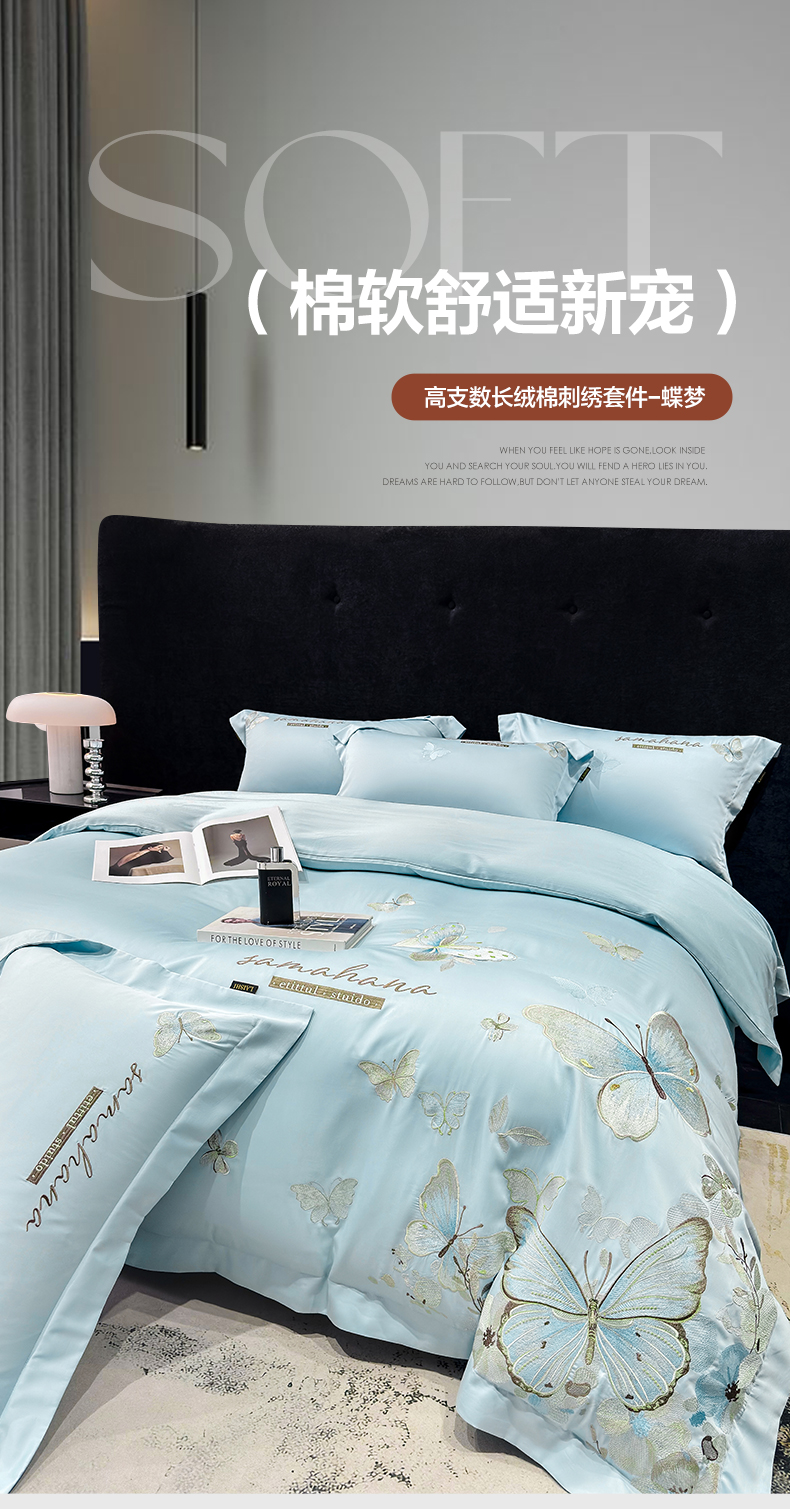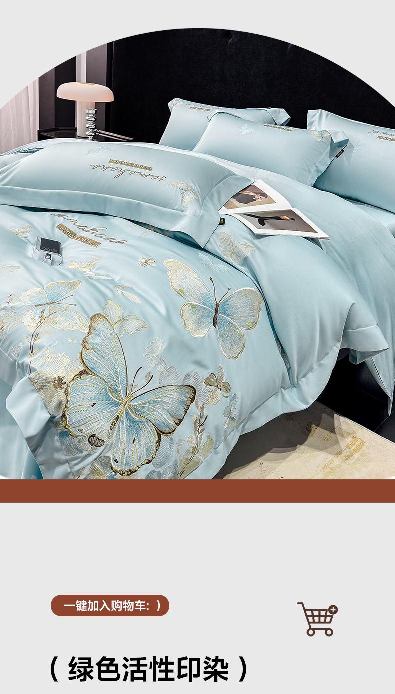 (总)欣宜家纺 2026新款50x50s纯棉全棉贡缎长绒棉刺绣绣花四件套【高端礼盒】-蝴蝶泉边,蝴蝶泉边-白拼粉,蝴蝶泉边-轻奢粉,蝴蝶泉边-清新绿,蝴蝶泉边-天空蓝