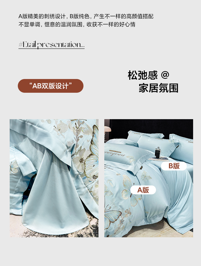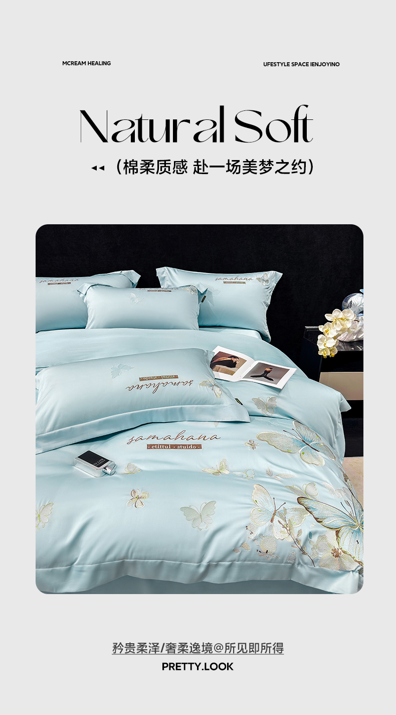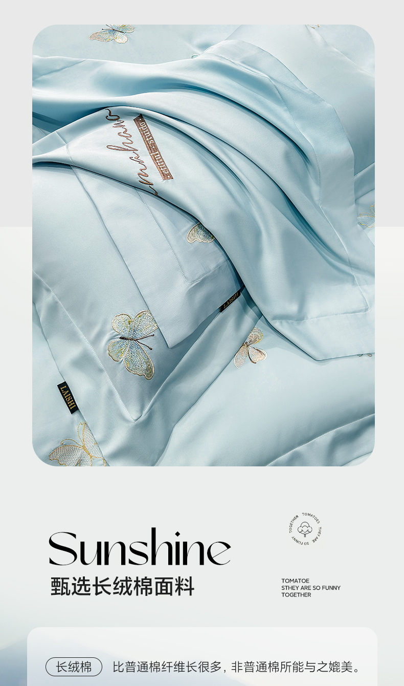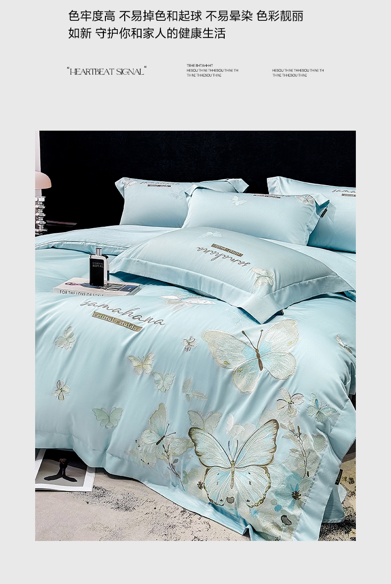 (总)欣宜家纺 2026新款50x50s纯棉全棉贡缎长绒棉刺绣绣花四件套【高端礼盒】-蝴蝶泉边,蝴蝶泉边-白拼粉,蝴蝶泉边-轻奢粉,蝴蝶泉边-清新绿,蝴蝶泉边-天空蓝