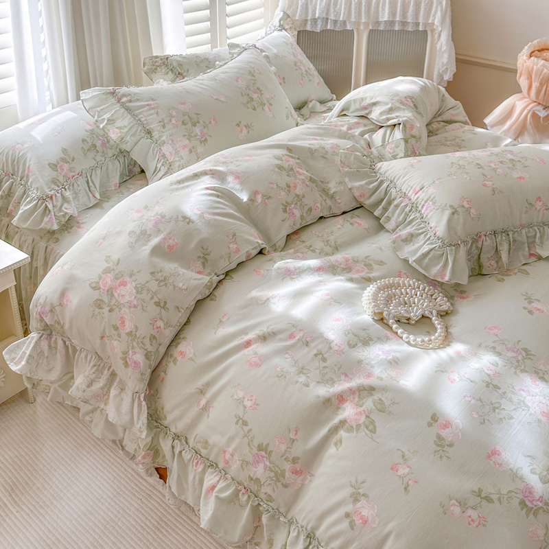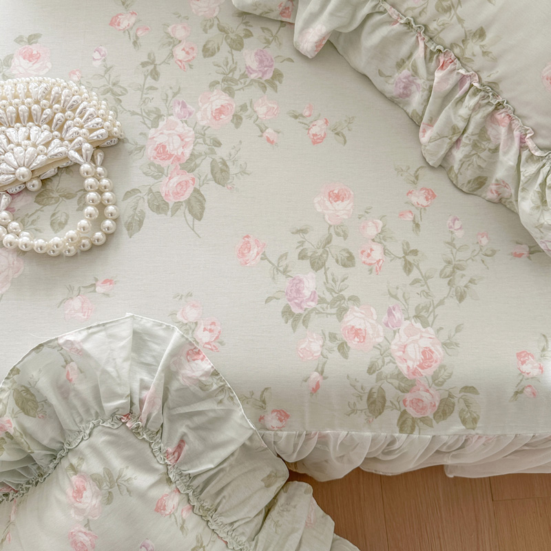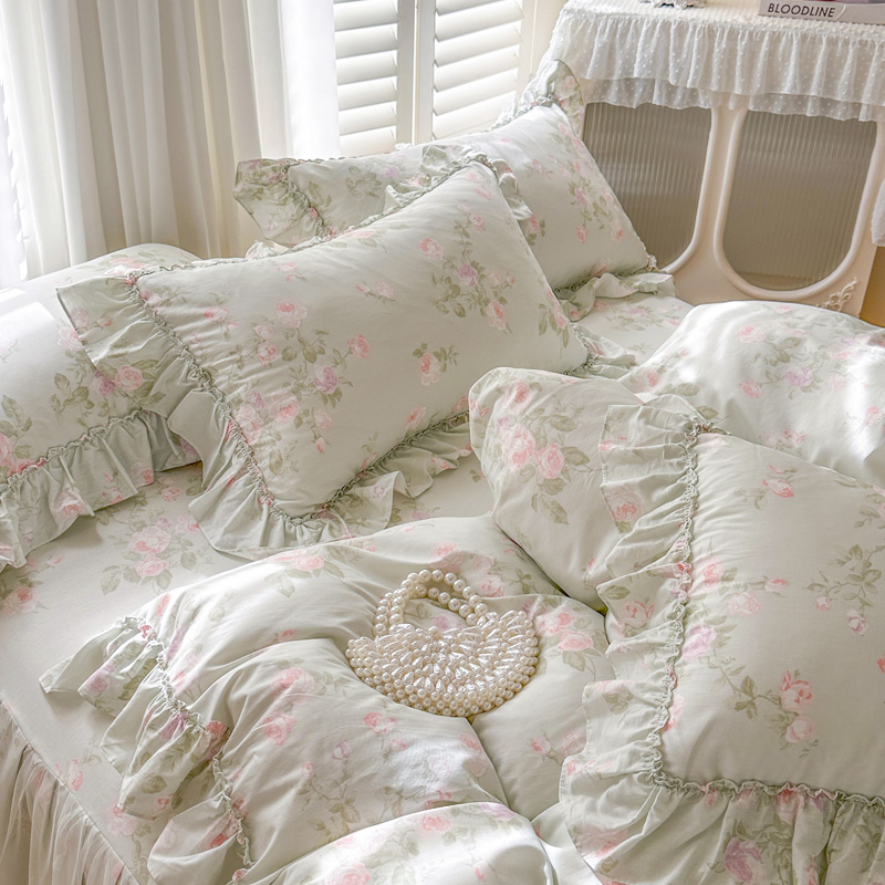 瑞宝 2026新款全棉印花床裙三件套床裙被套单品系列 漫步花庭