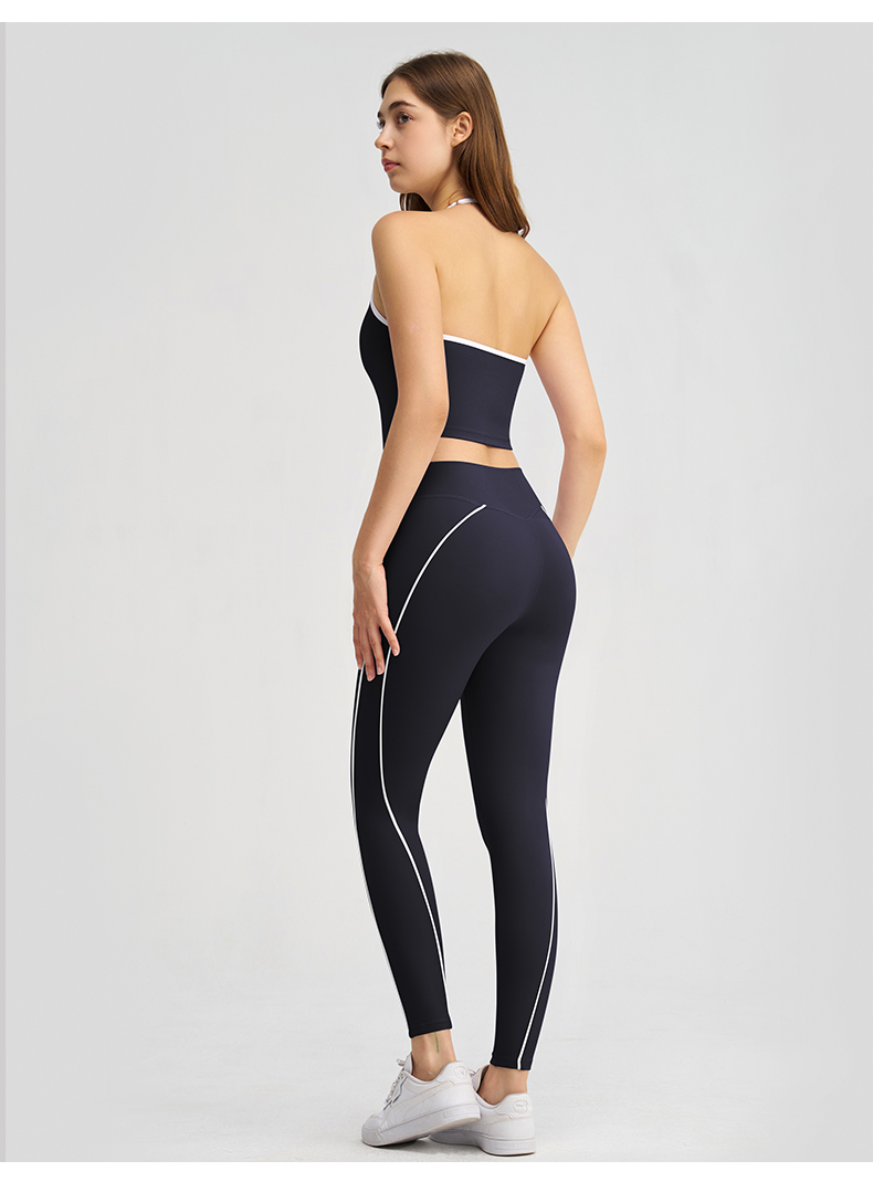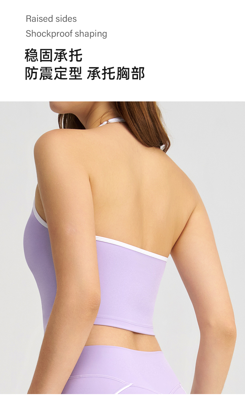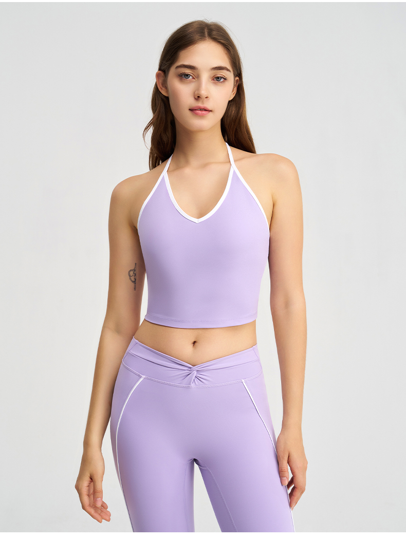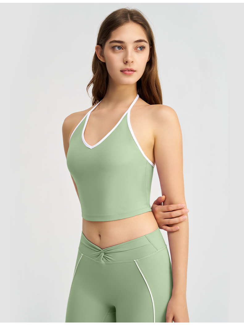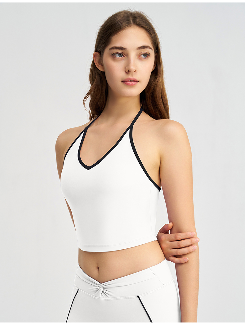 商品名称:(总)沐珩家纺 2026新款健身上衣吊带细肩带撞色白条带胸垫挂脖运动内衣文胸背心瑜伽套装