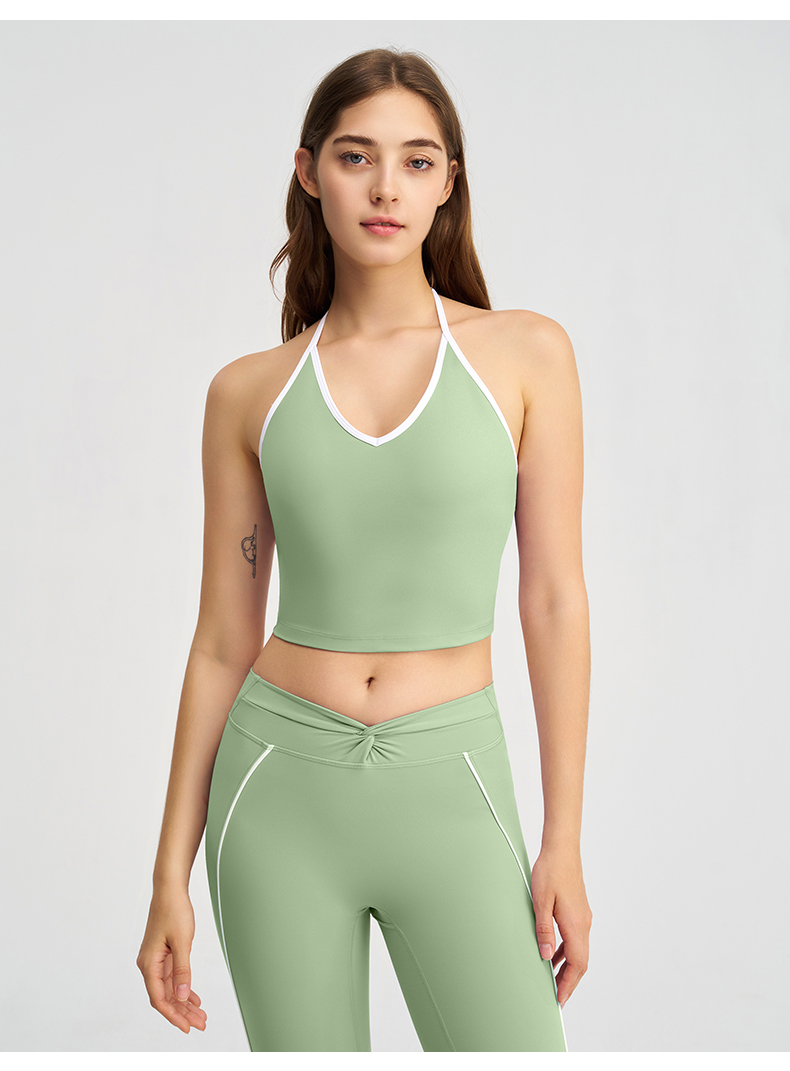 (总)沐珩家纺 2026新款健身上衣吊带细肩带撞色白条带胸垫挂脖运动内衣文胸背心瑜伽套装