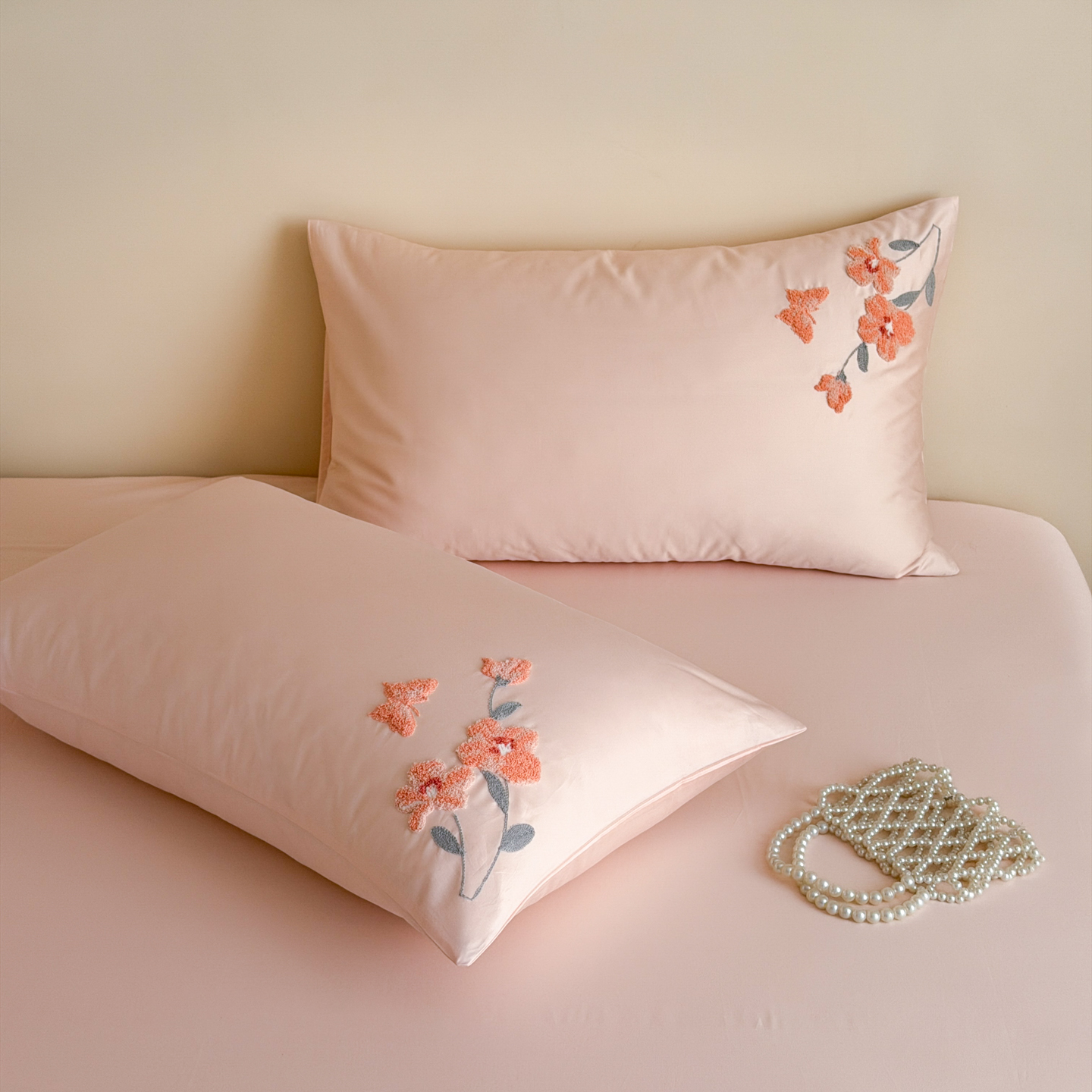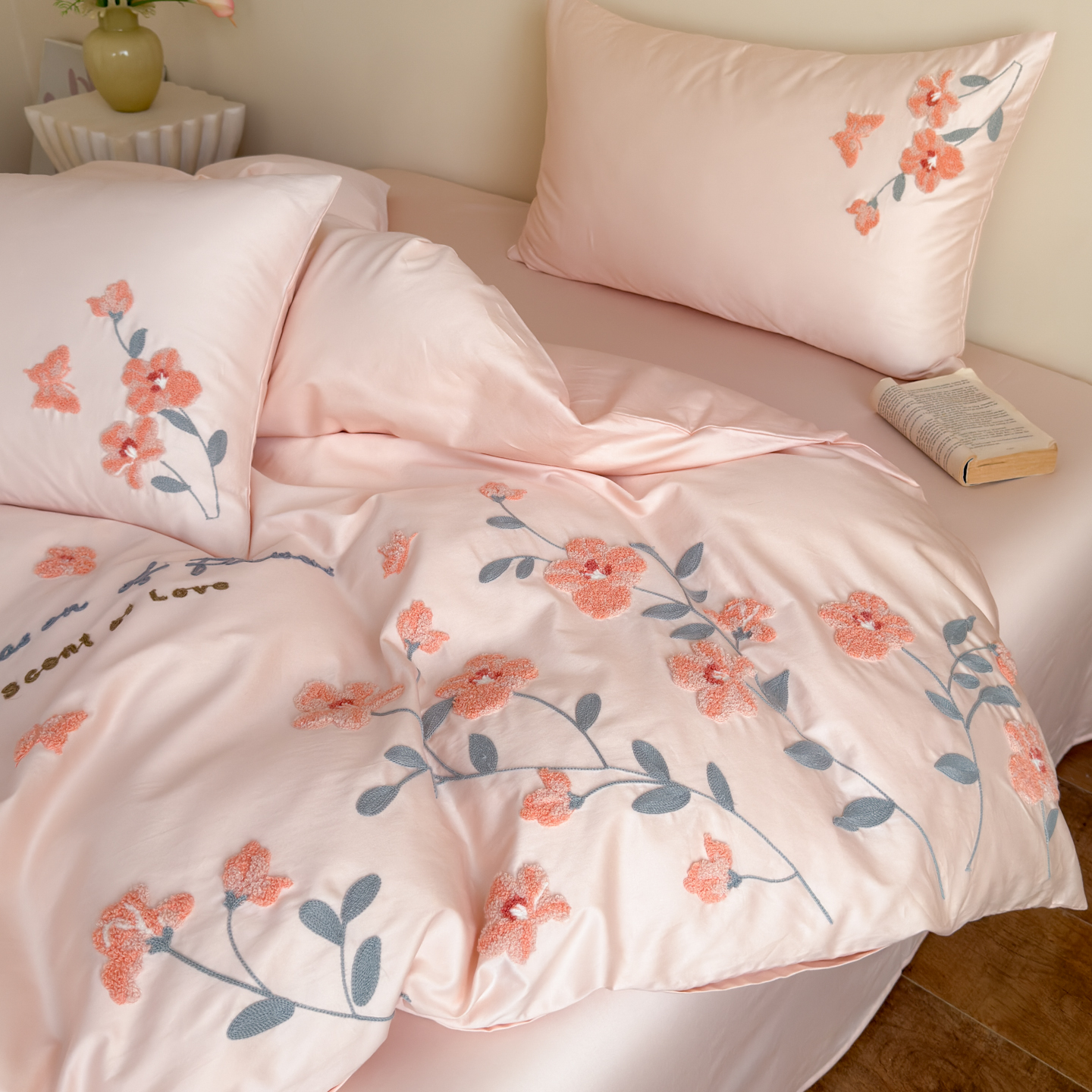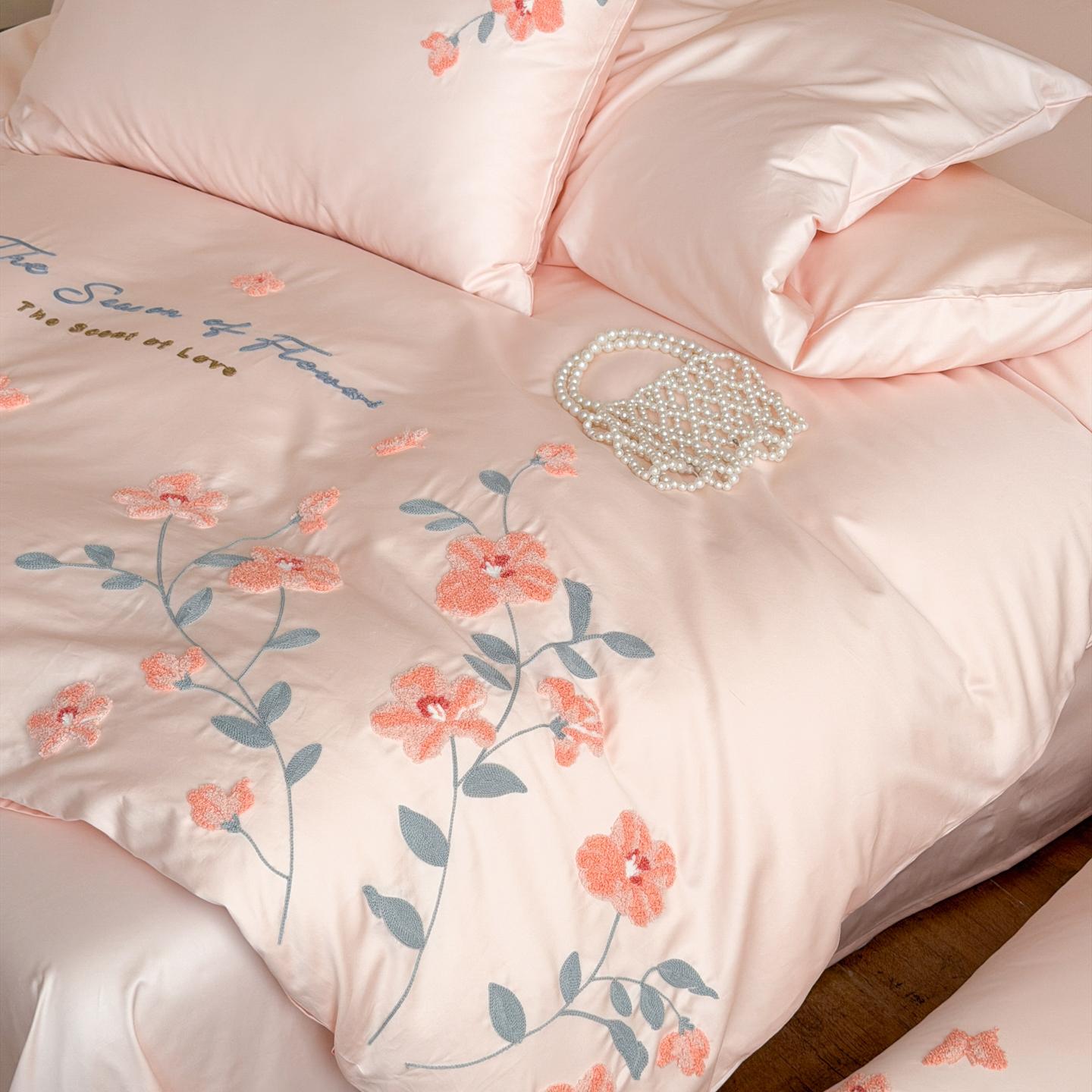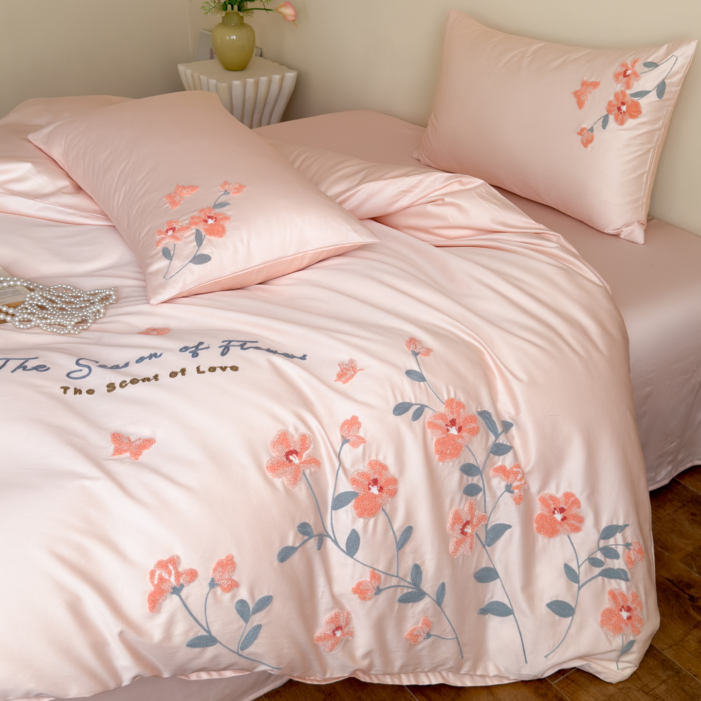 (总)优彩 2025新款全棉40支水洗棉水果刺绣系列四件套,蜜桃,葡萄