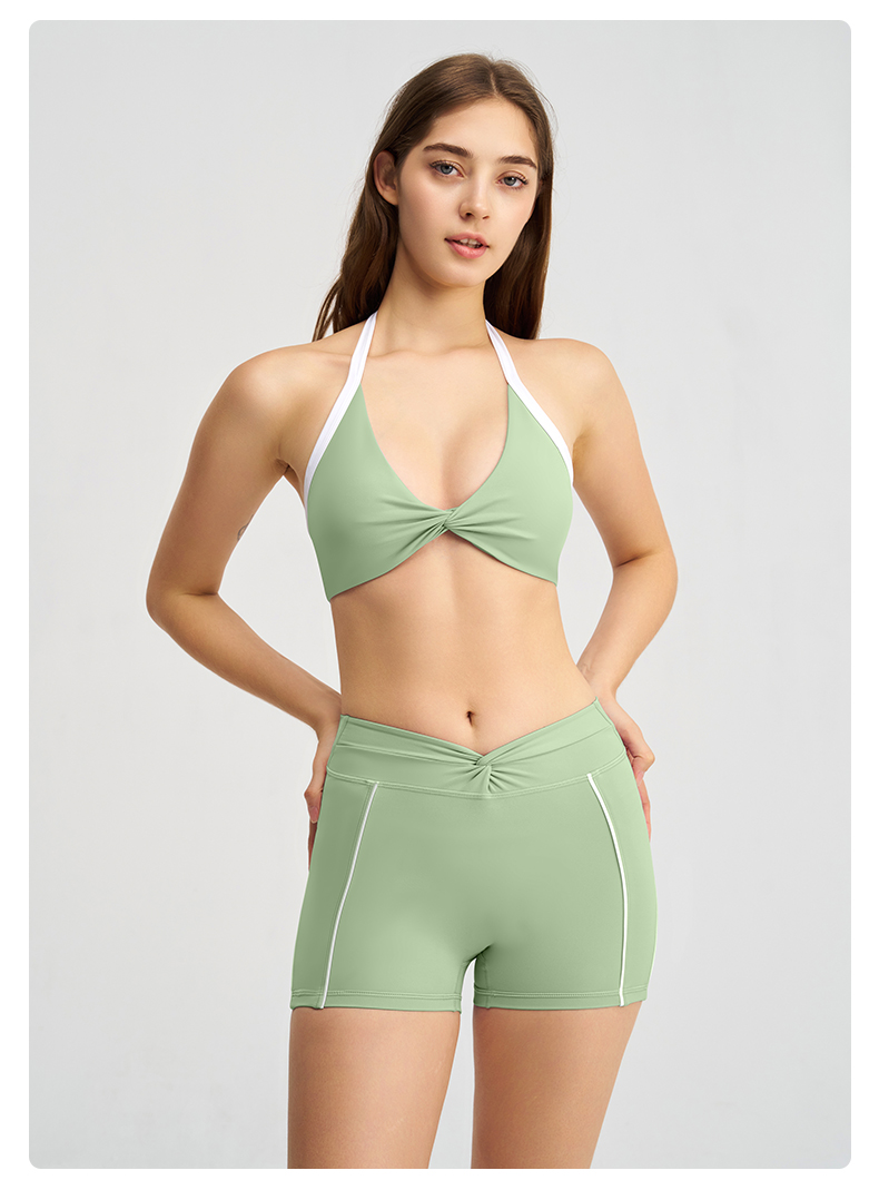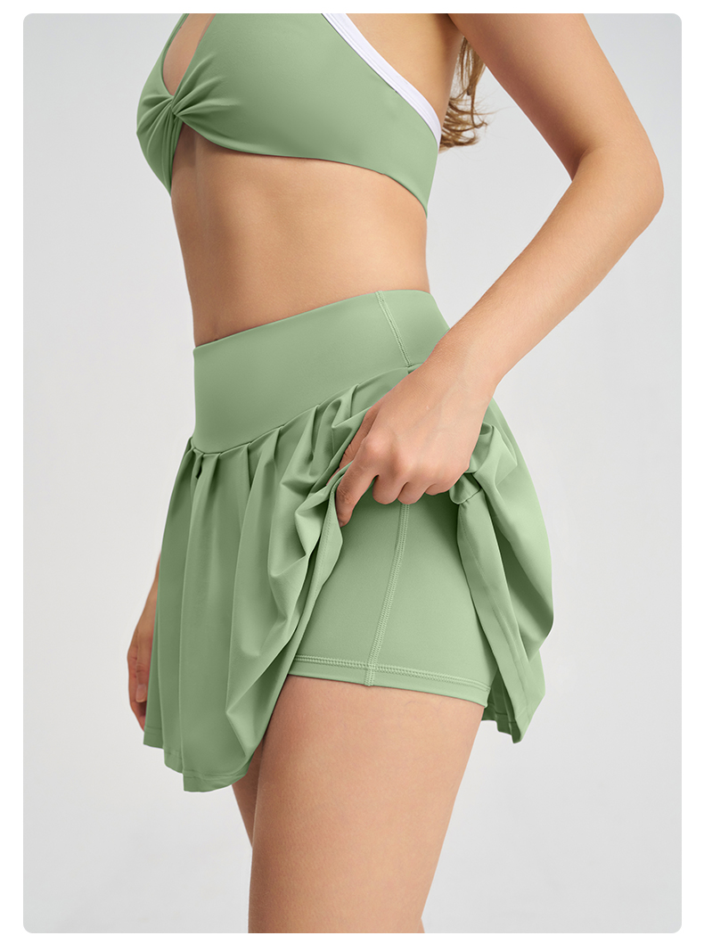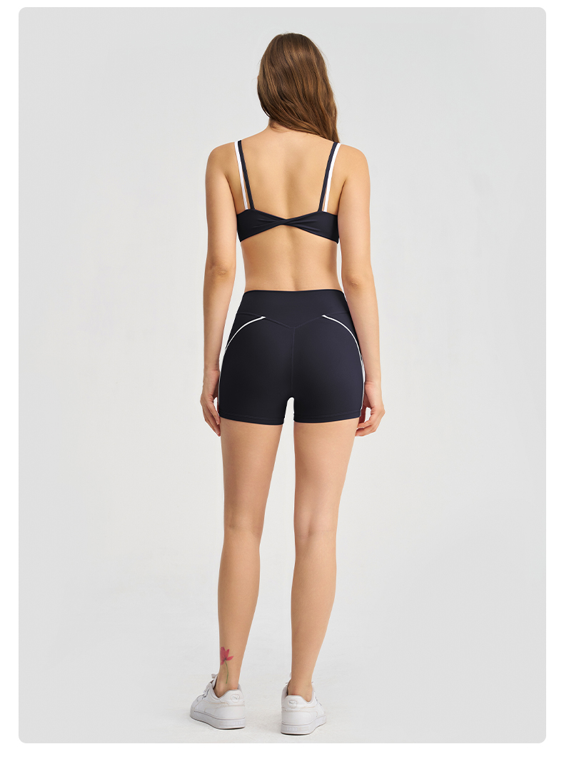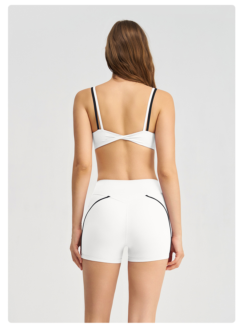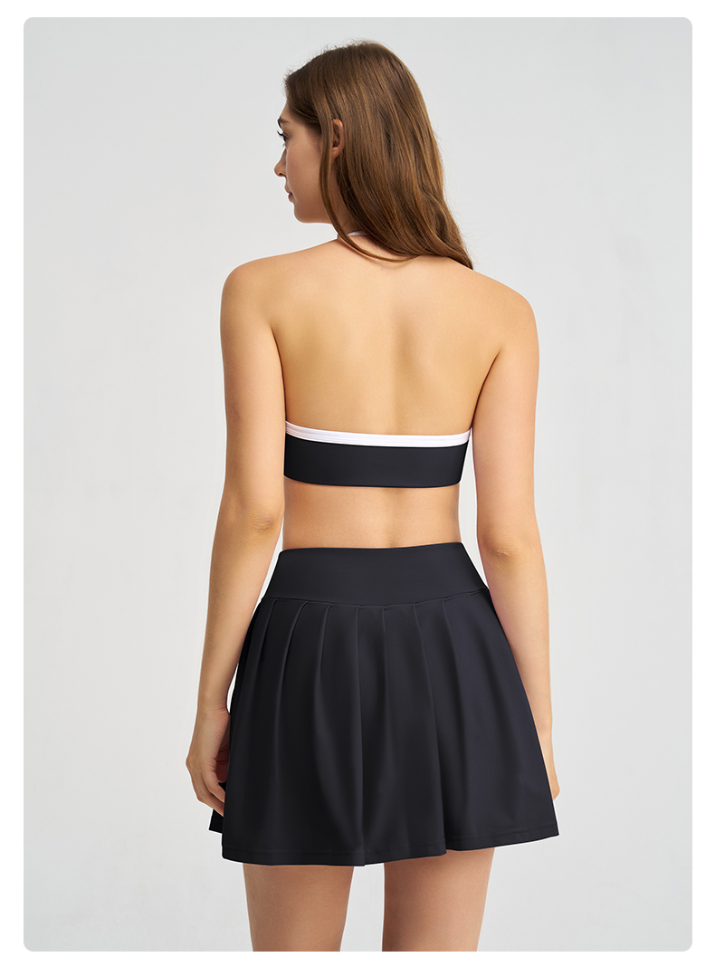商品名称:沐珩家纺 2026新款撞色文胸上衣长袖短袖长裤短裤短裙百褶裙拉链外套瑜伽服六件套装(1) B款 浅紫色