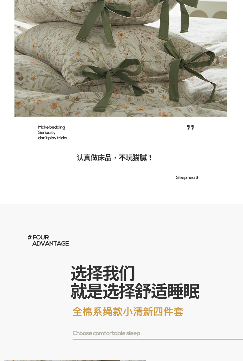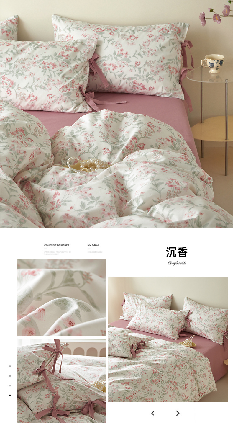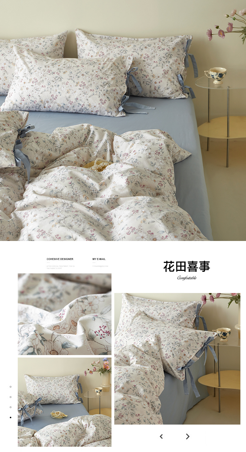 (总)绫韵家纺 2026春夏新款13372全棉ins小碎花纯棉田园风床单床笠四件套系绳蝴蝶结系列,贝贝利亚,沉香,丹恒,花田喜事