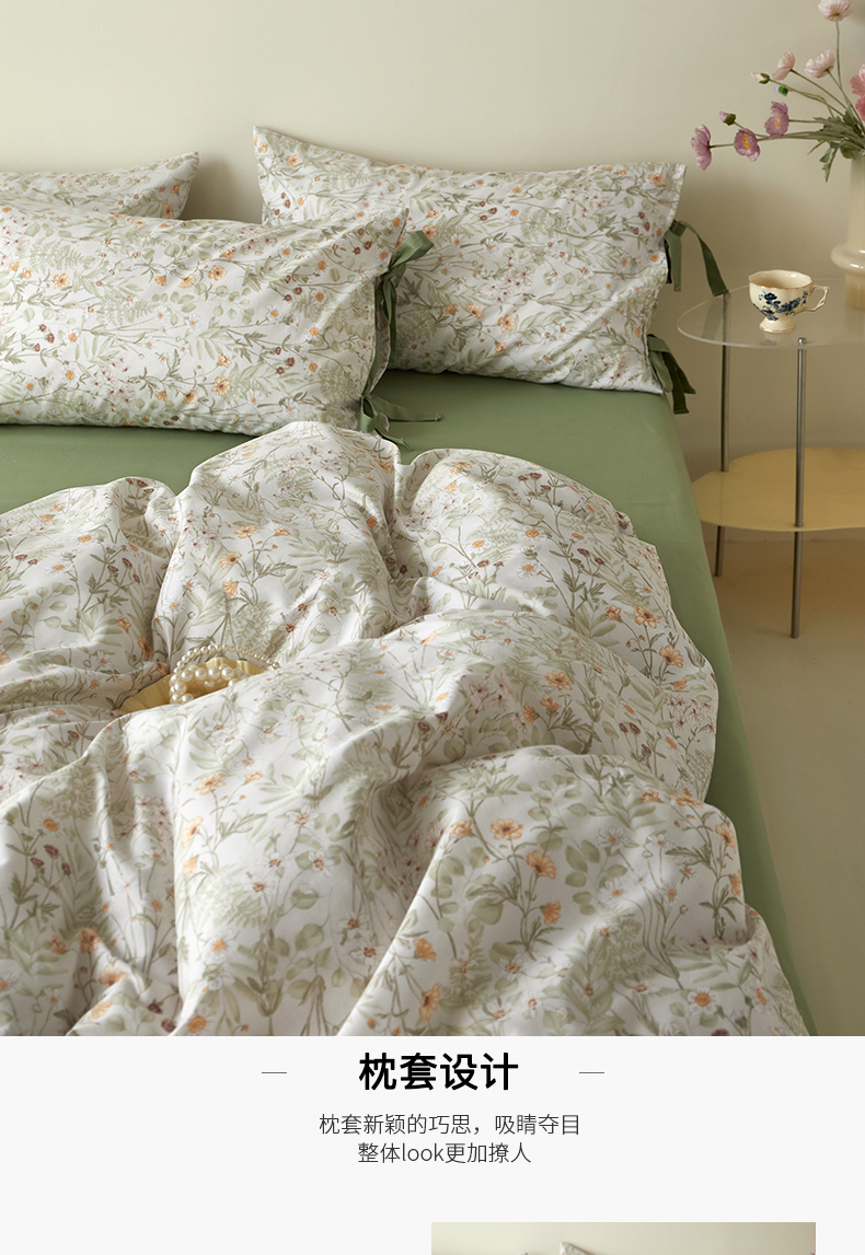 (总)绫韵家纺 2026新款13372全棉ins小碎花纯棉田园风床单床笠四件套系绳蝴蝶结系列二,布洛尔,白兰地,碎花小熊,妃子笑黄-松霜绿,露娜-风信紫,蔓春-风信紫,晴天-海棠红,汀兰-海港蓝,仙子-松霜绿,小花兔-海棠红,元气兰