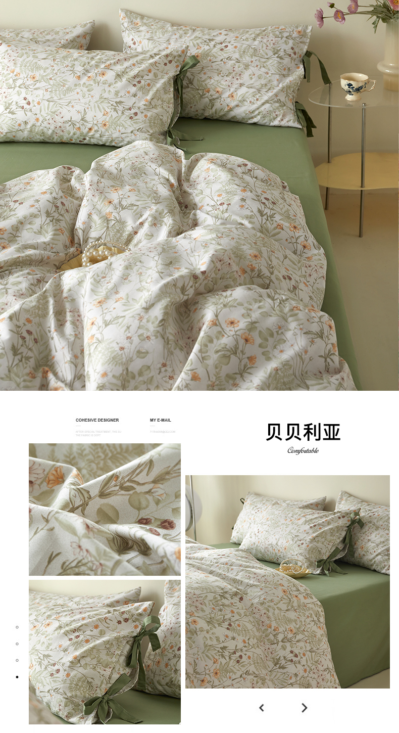 商品名称:绫韵家纺 2026春夏新款13372全棉ins小碎花纯棉田园风床单床笠四件套系绳蝴蝶结系列 贝贝利亚