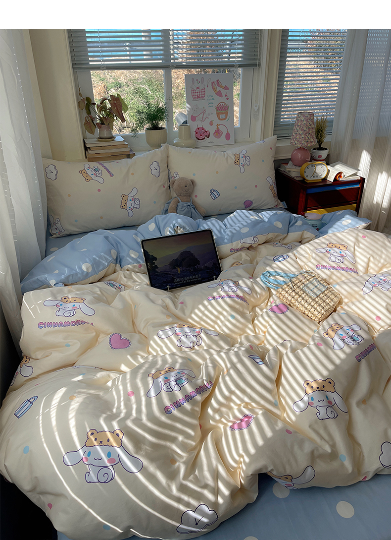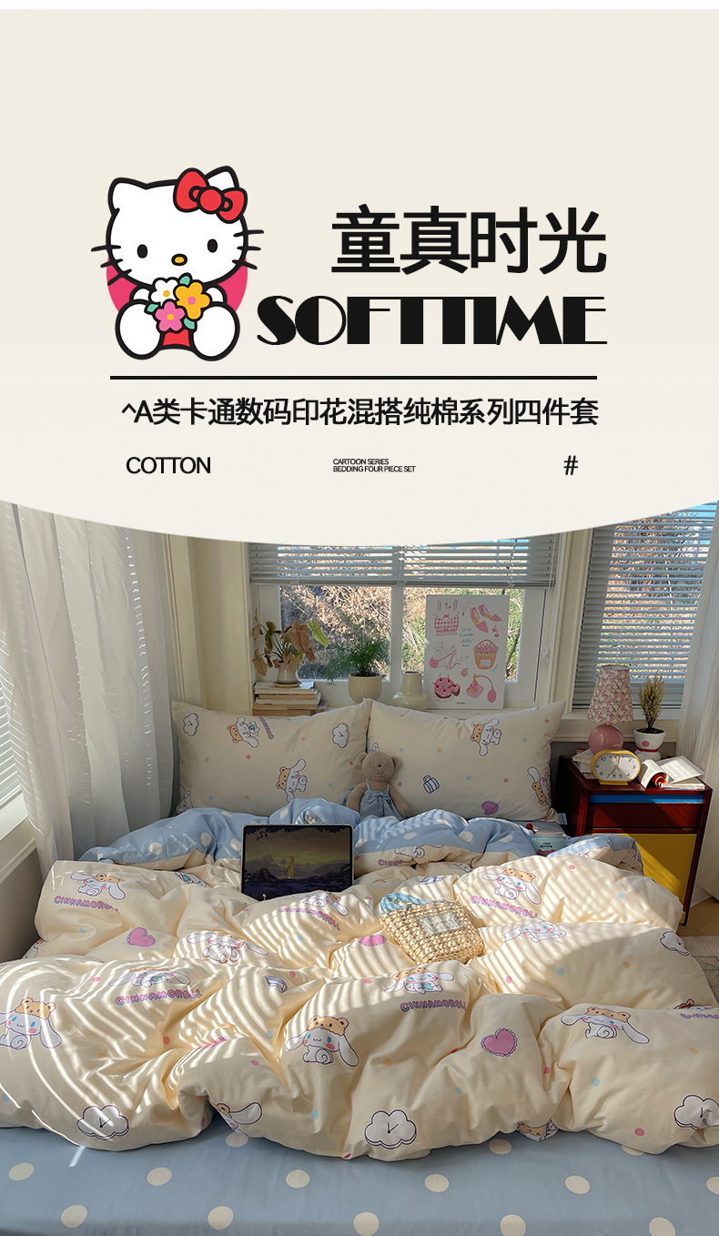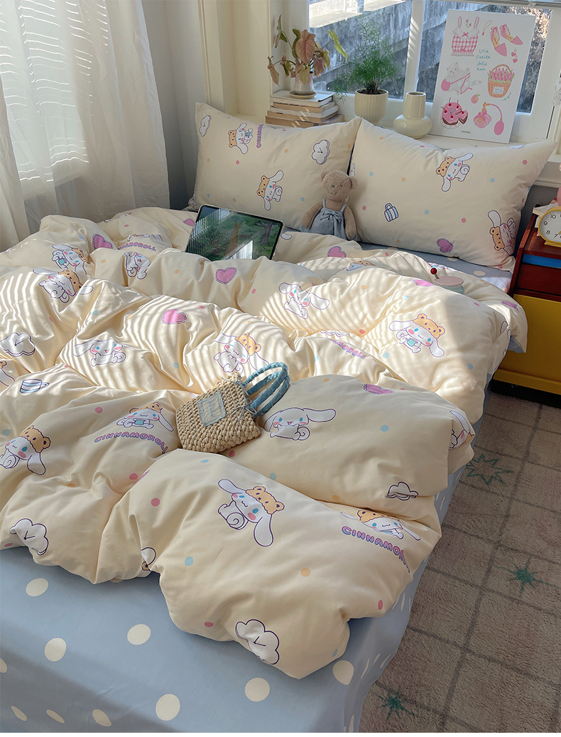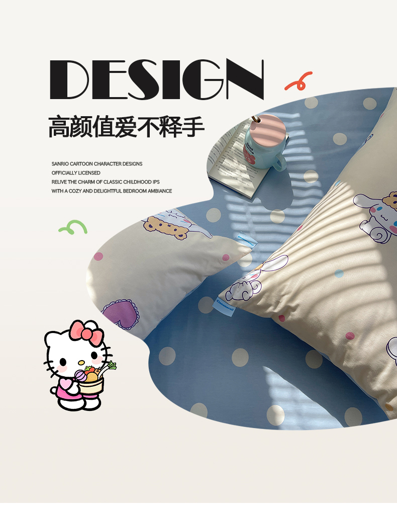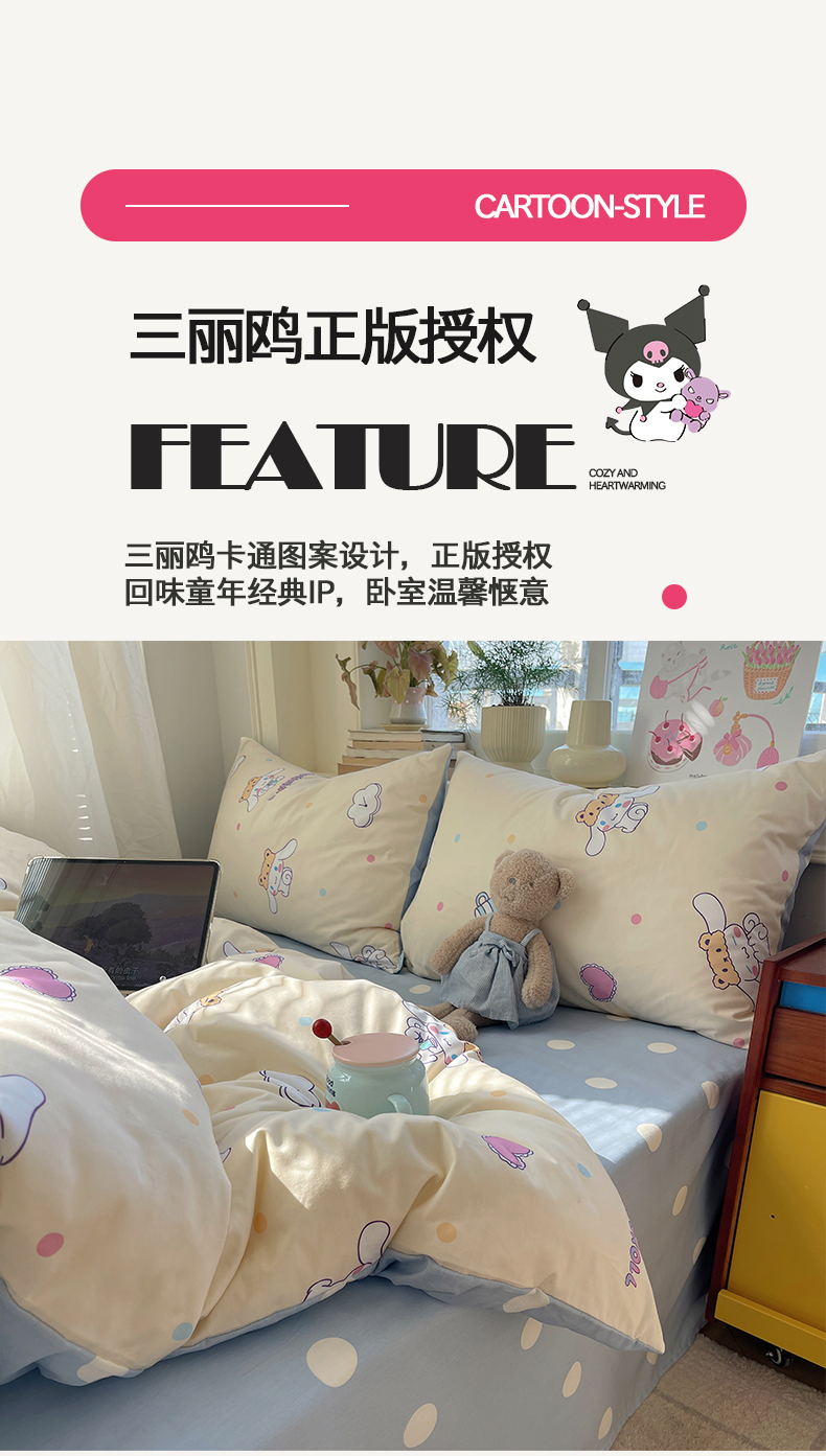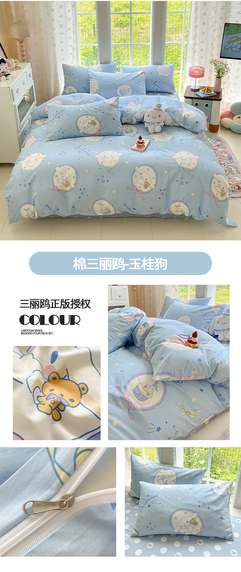 当前位置: 91家纺网 > 商品网购 > 床品套件 > 四件套 > 全棉普通四件套 > 桃子家居 2026新款A类三丽鸥正版授权卡通数码印花混搭纯棉印花系列四件套 棉三丽鸥-开心玉桂狗