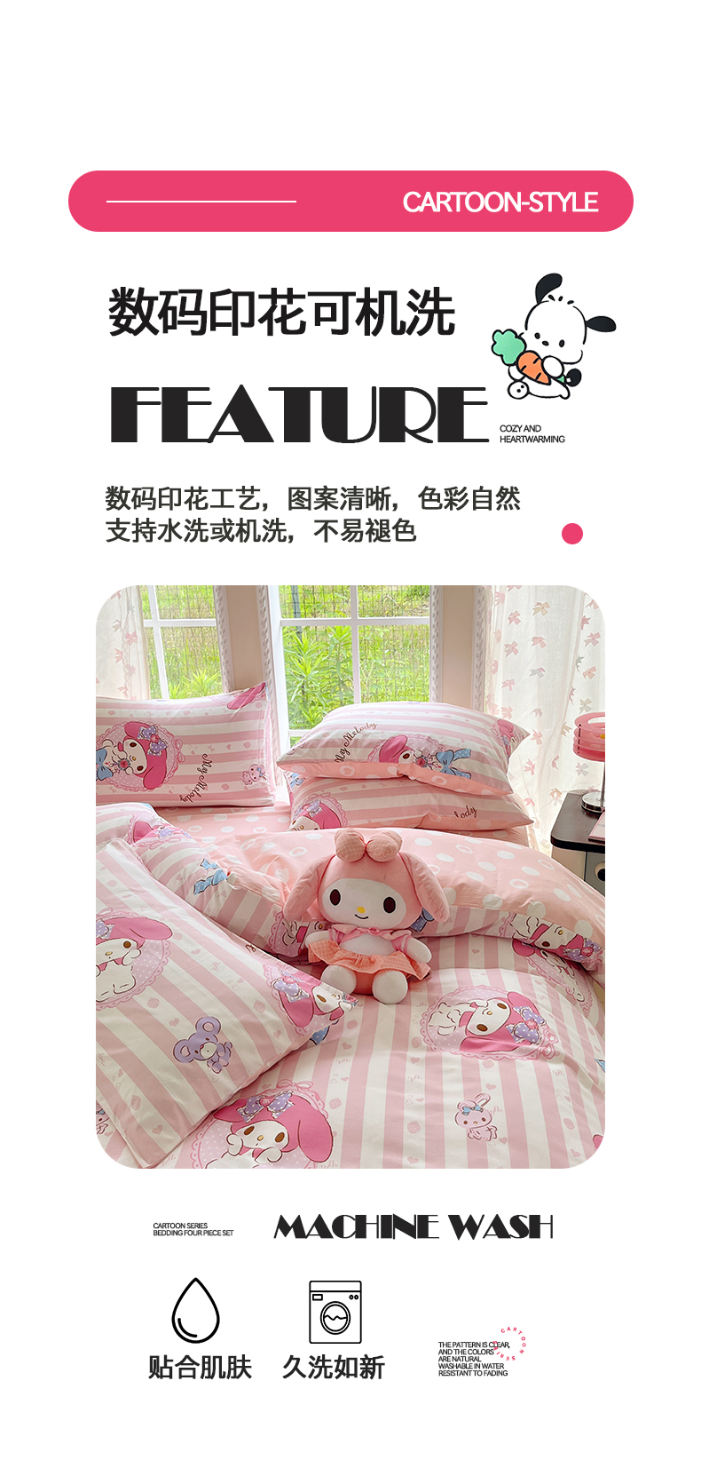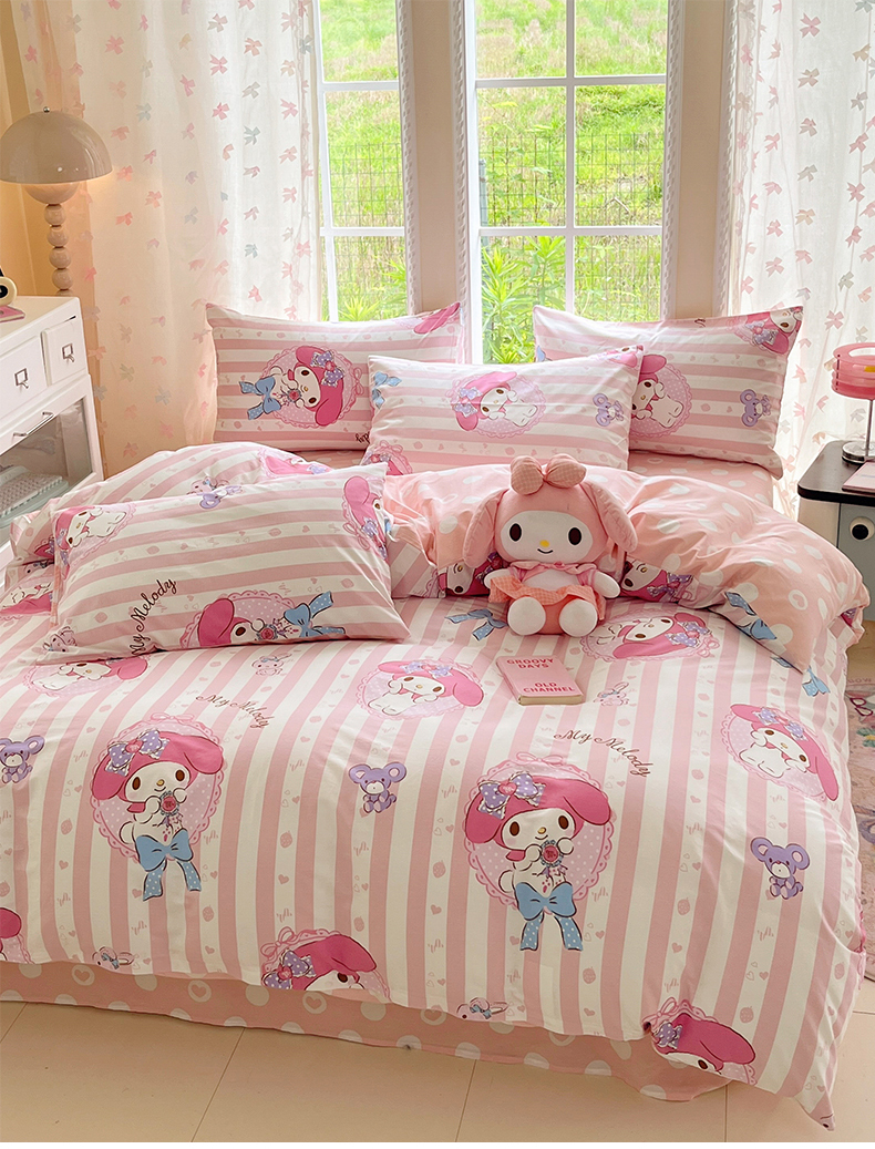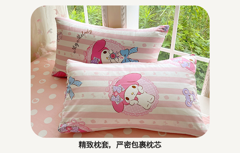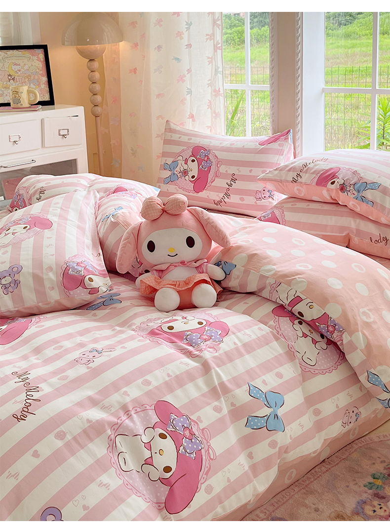 当前位置: 91家纺网 > 商品网购 > 床品套件 > 四件套 > 全棉普通四件套 > 桃子家居 2026新款A类三丽鸥正版授权卡通数码印花混搭纯棉印花系列四件套 棉三丽鸥-甜甜美乐蒂