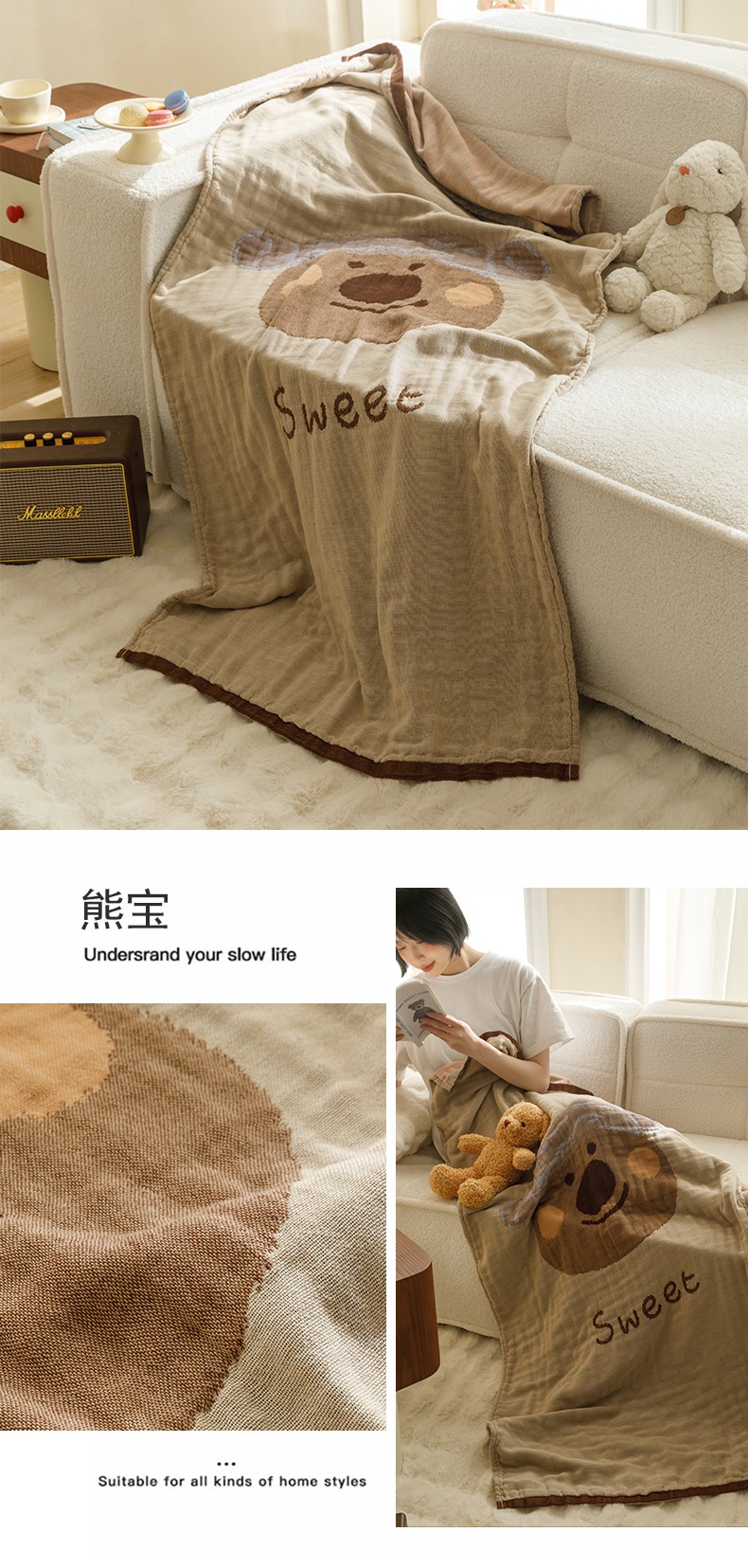 当前位置: 91家纺网 > 商品网购 > 毛毯休闲毯绒毯 > 毛毯 > 沐珩家纺 2026新款全棉纯棉四层纱布浴巾沙发巾加大尺寸多功能毛巾毯 小美好