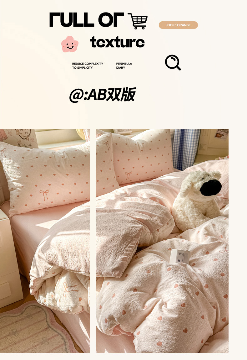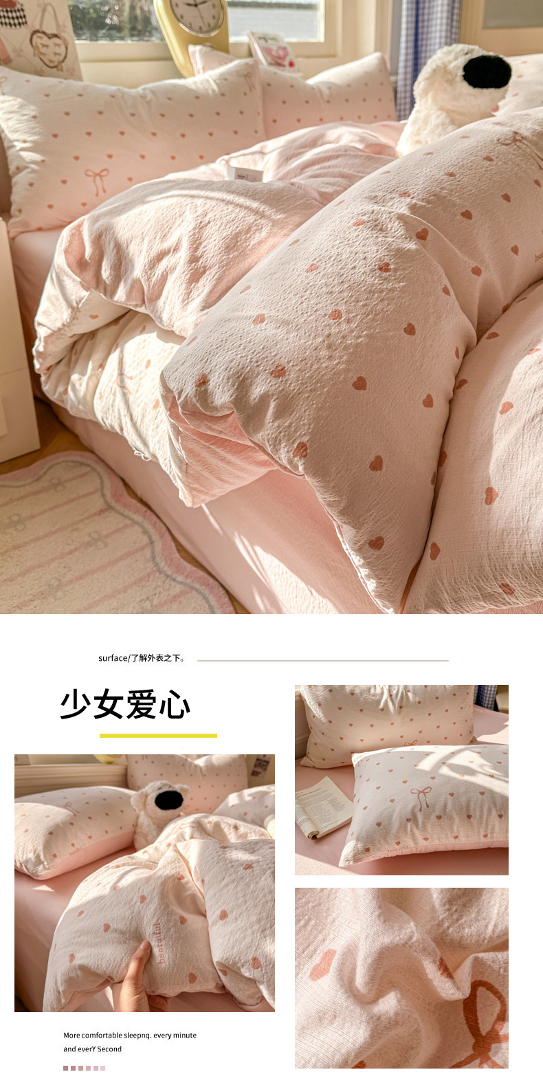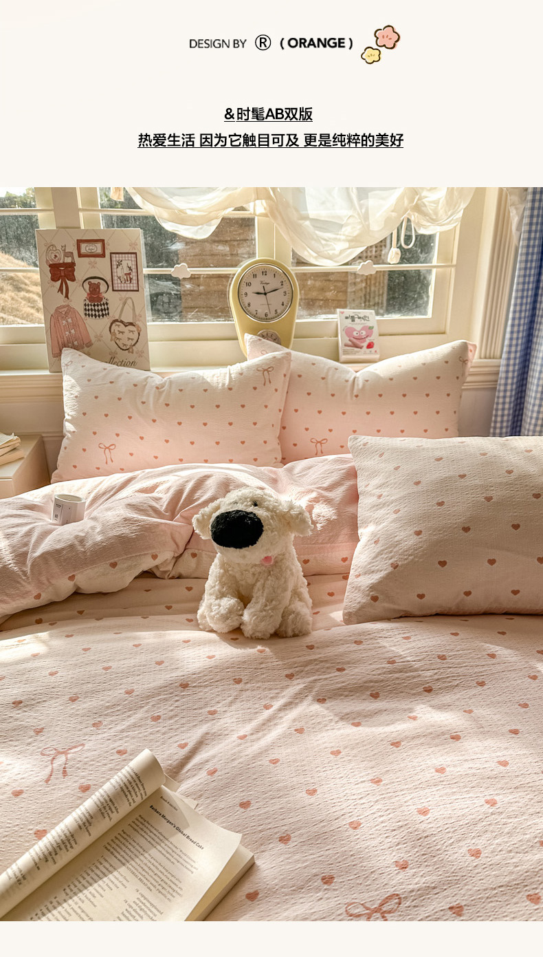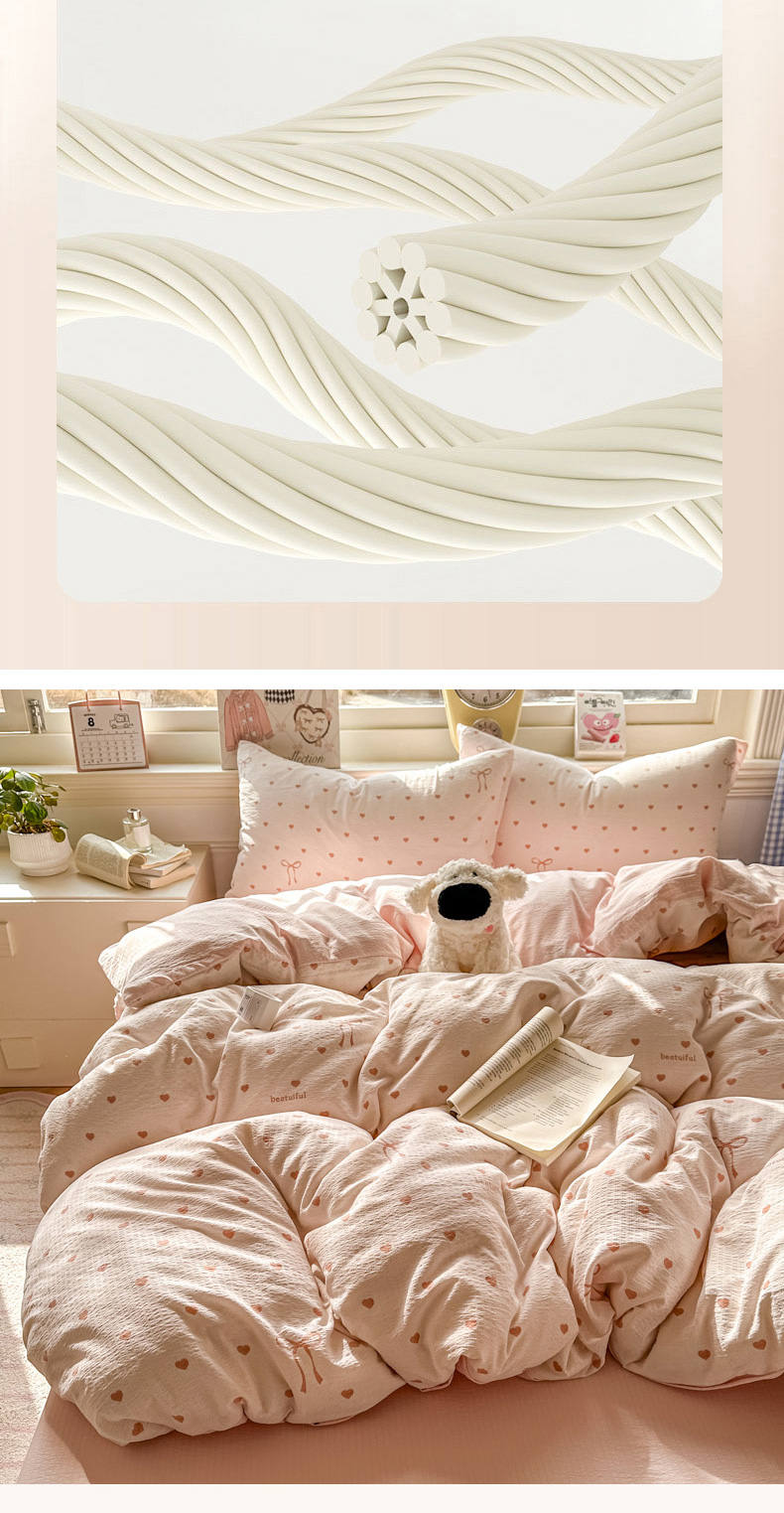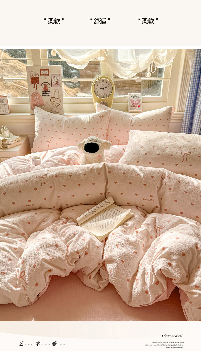 当前位置: 91家纺网 > 商品网购 > 床品套件 > 四件套 > 其它四件套 > 女子家纺 2026春夏新款云感皱皱纱小清新四件套 少女爱心
