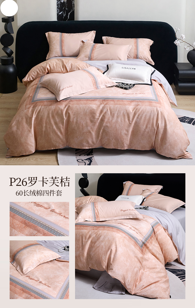 商品名称:梧桐树 2026新款60长绒棉平网大版系列四件套 P38许愿瓶桔