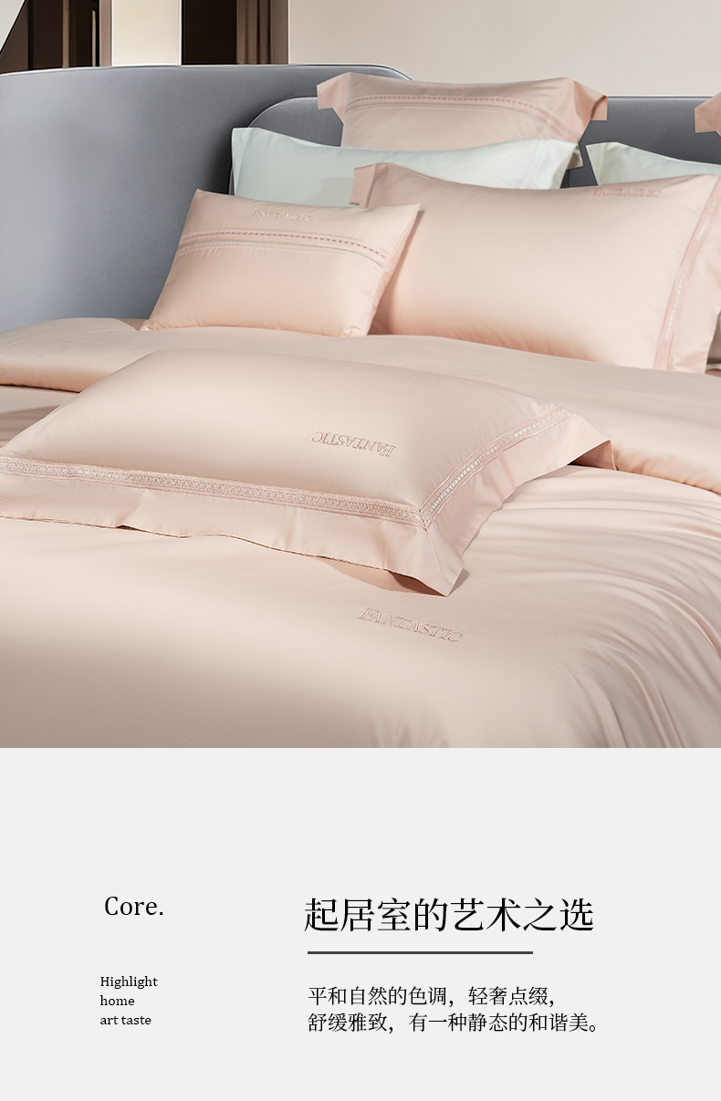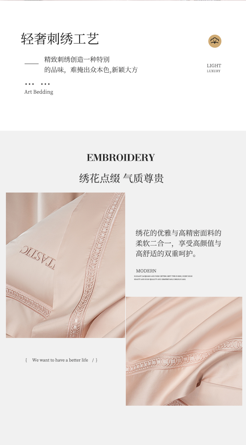 (总)诗黛尔 2026春夏新款长绒棉刺绣四件套黎境系列,黎境-香槟金,黎境-极光蓝,黎境-卡其色,黎境-落樱粉,黎境-绅士灰