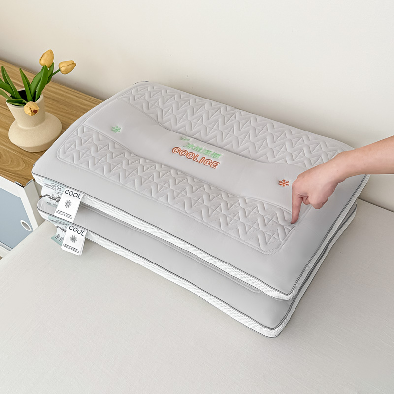 商品名称:浩宇家纺 2026新款冰丝凉感枕头枕芯刺绣护颈枕成人家用舒适定型款6308 粉色