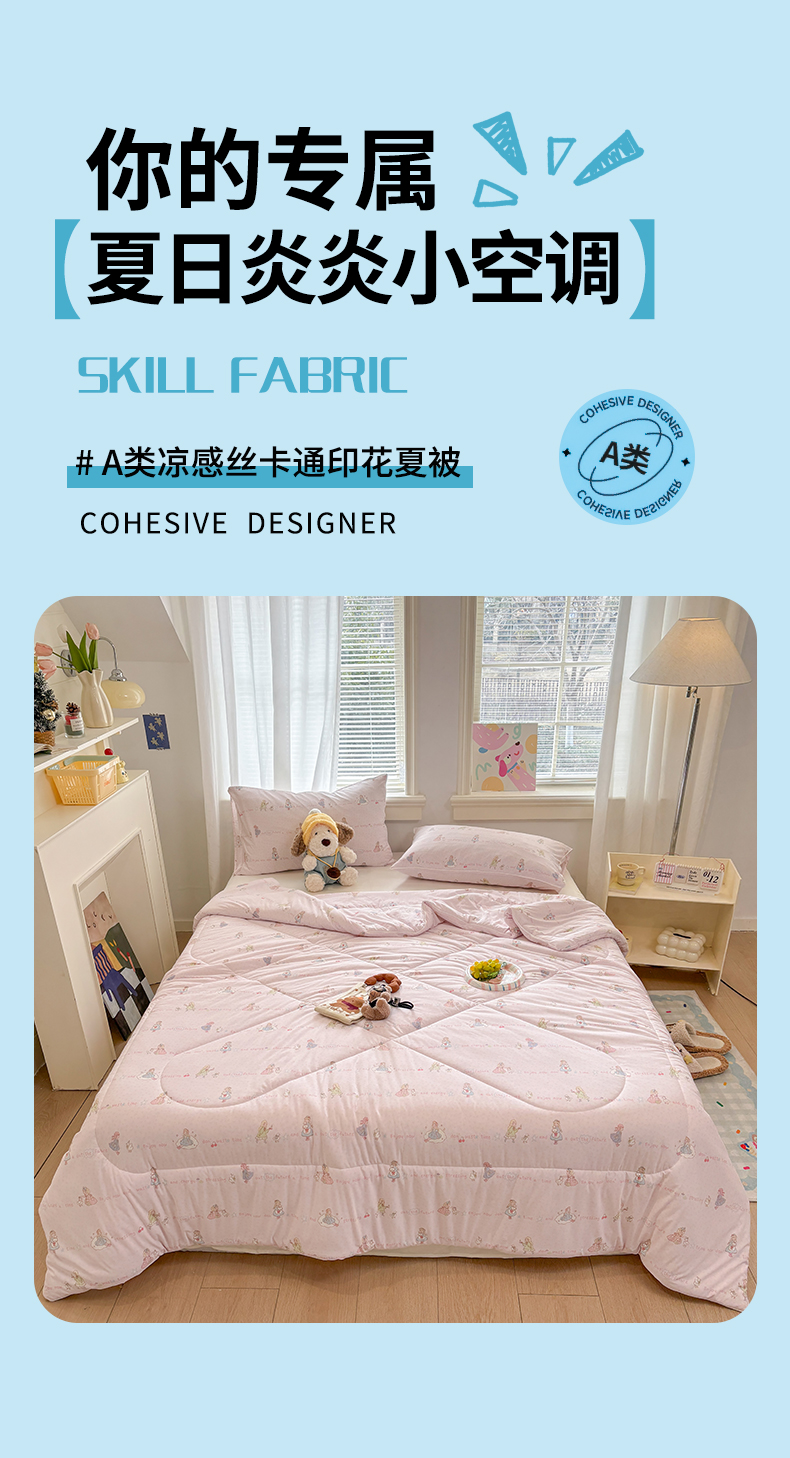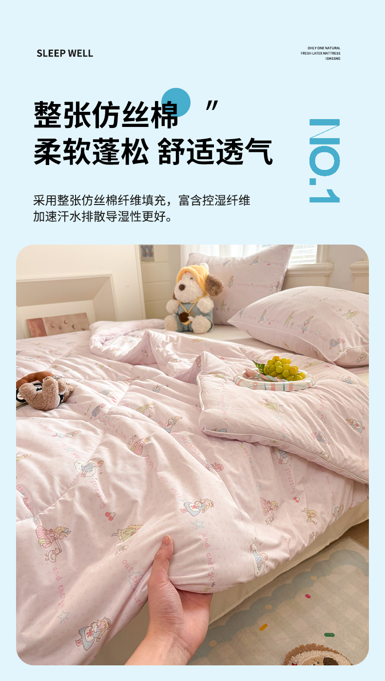 商品名称:益多眠 【同款超低价】2026新款锦氨夏凉被凉感丝夏被空调被单人夏被自带凉感冰丝夏被【四周踩棉】 粉裙女孩