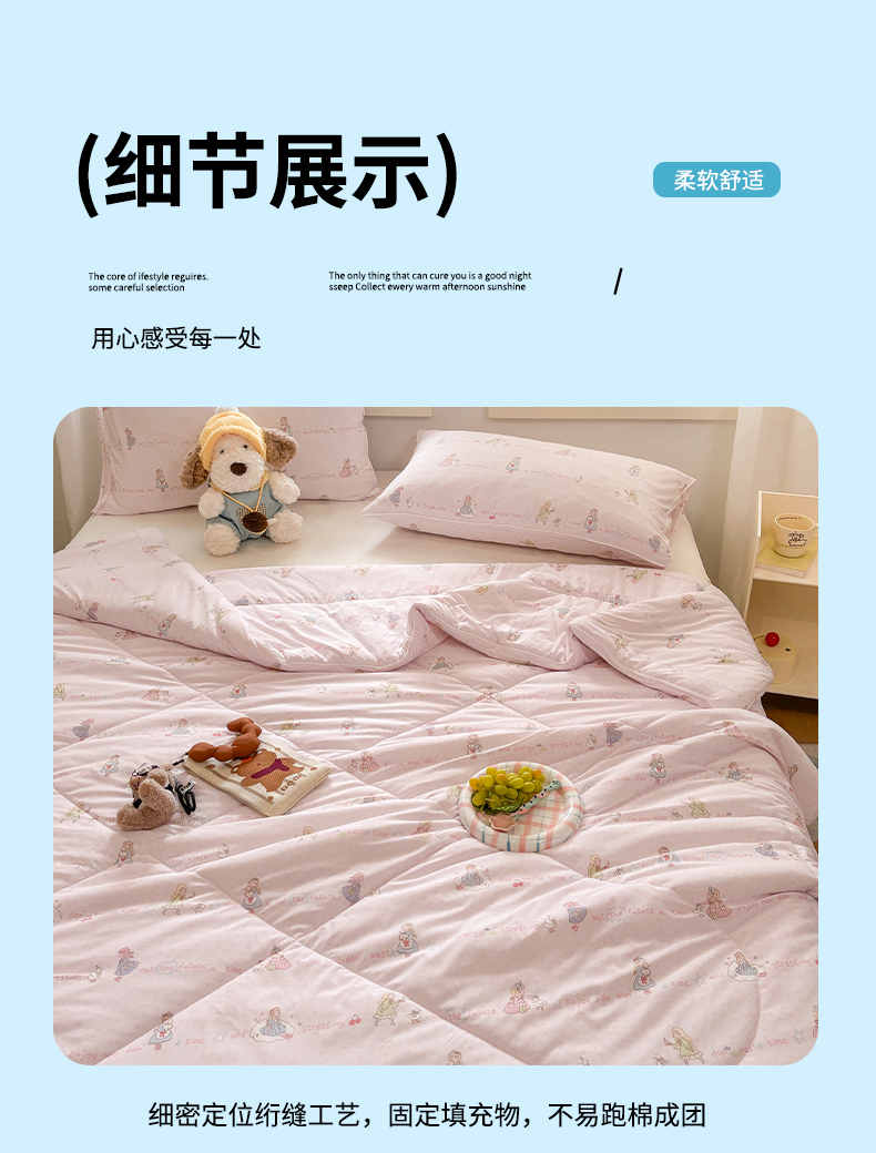 被子 > 夏被 > 益多眠 【同款超低价】2026新款锦氨夏凉被凉感丝夏被空调被单人夏被自带凉感冰丝夏被【四周踩棉】 粉裙女孩