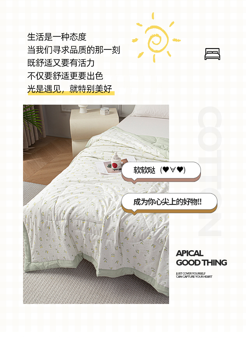 商品名称:亿莱鑫 2026新款时尚优棉夏被夏凉被空调被 小青柠