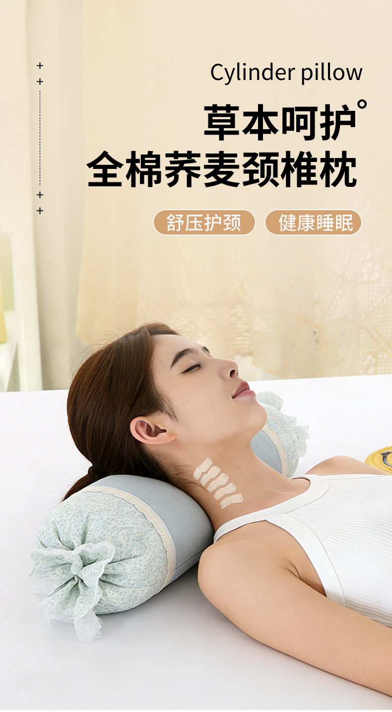 商品名称:(总)蔻眠 绑带款全棉皱皱纱荞麦枕头糖果牵引护颈枕芯
