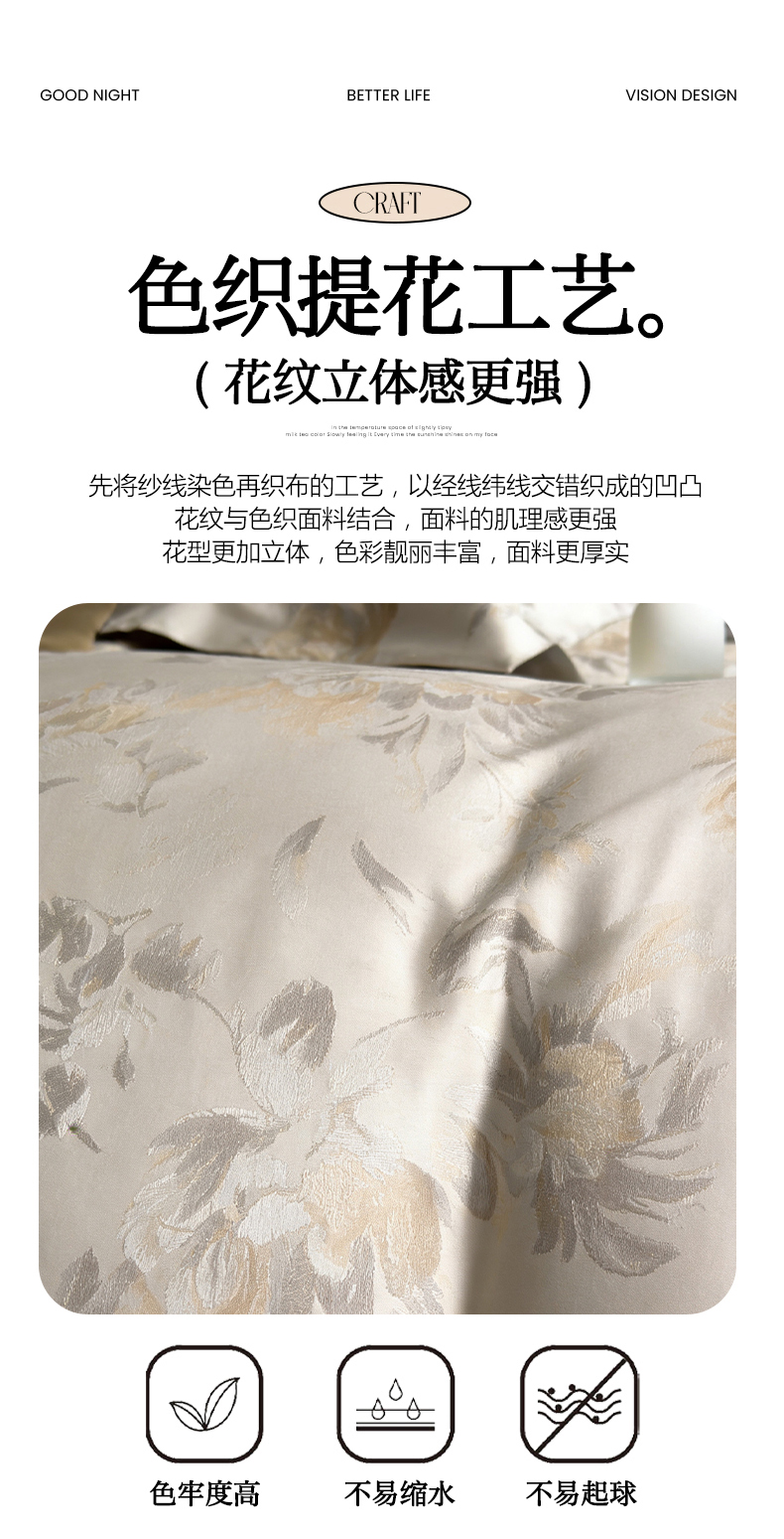 (总)淳绵 2026新款全棉提花四件套,罗卡芙 豆沙,马到成功 月光灰,漫舞花丛 尔雅灰,素锦 尊蒂兰,素锦-浅米灰