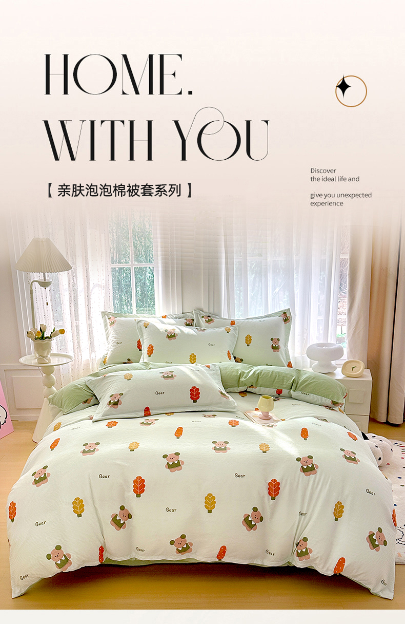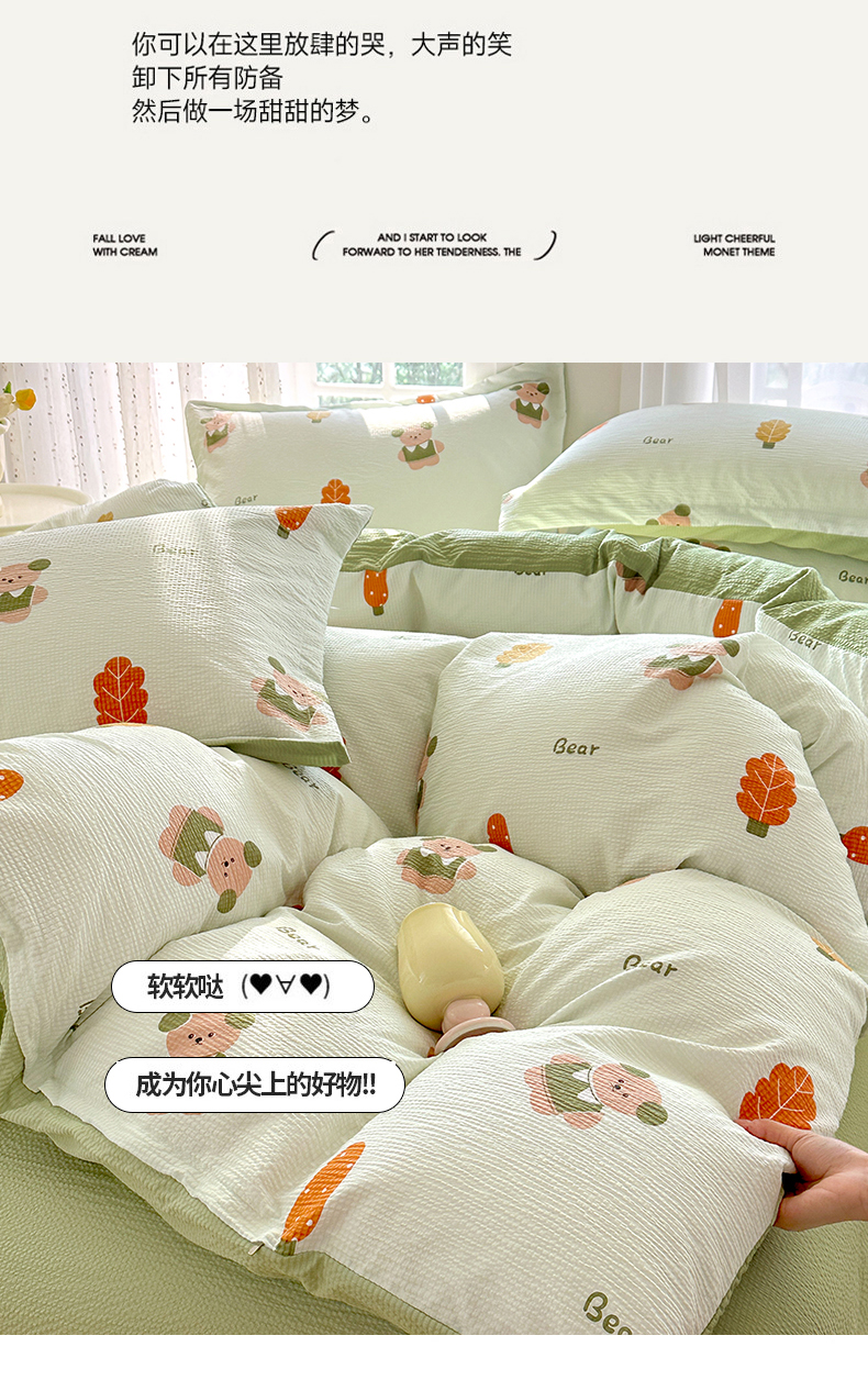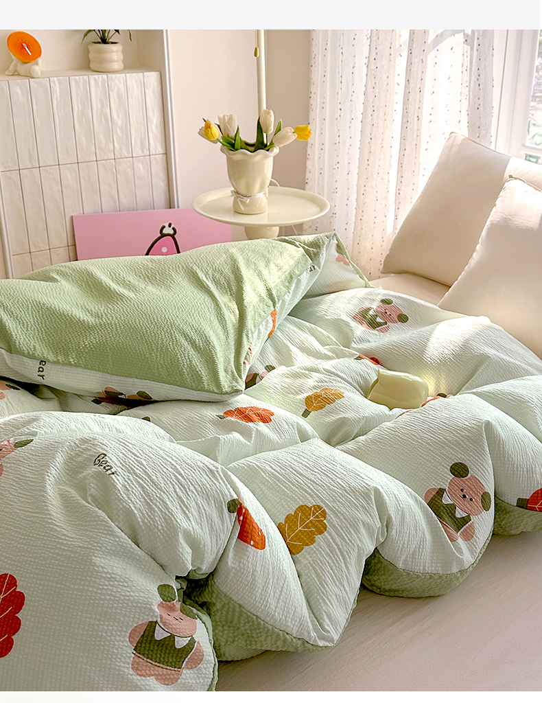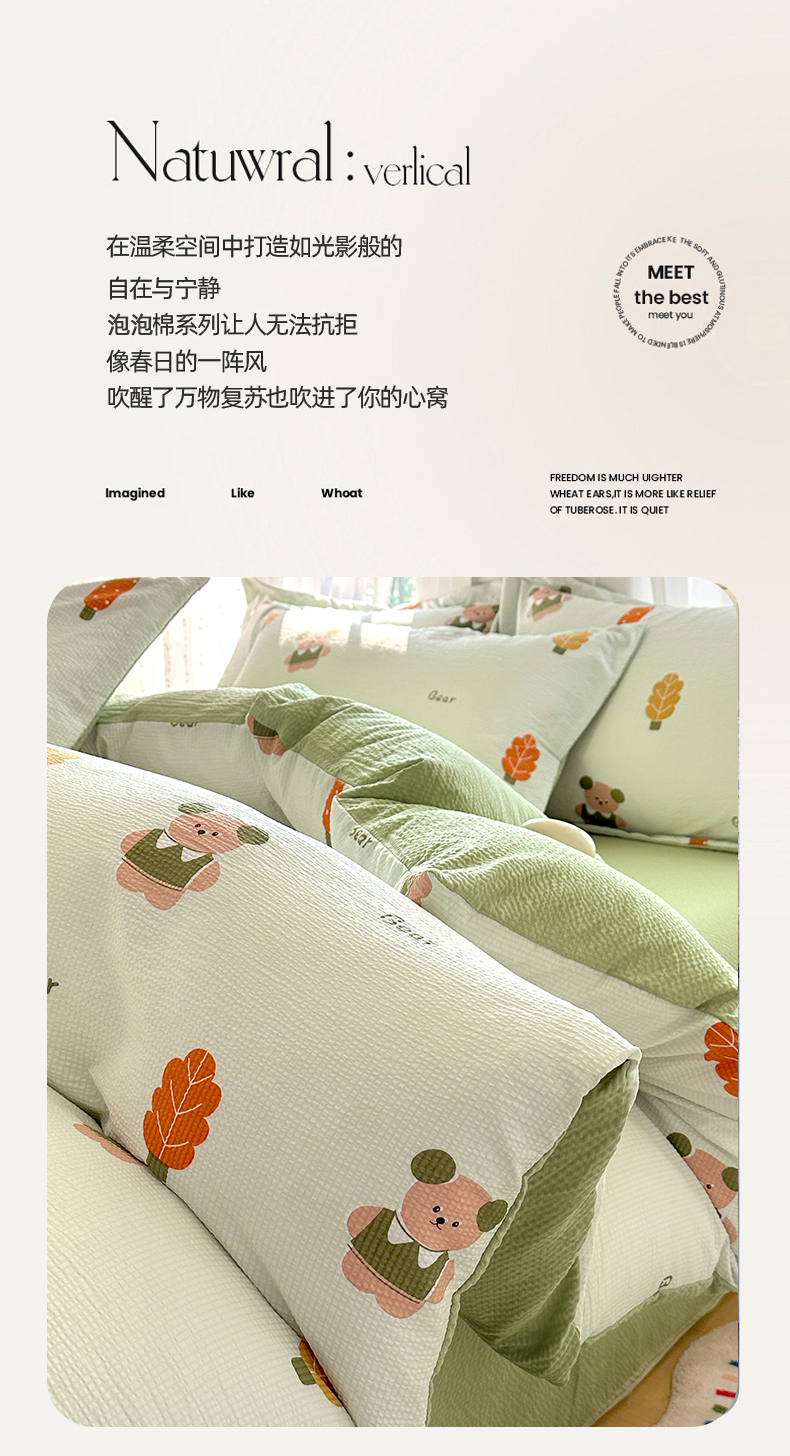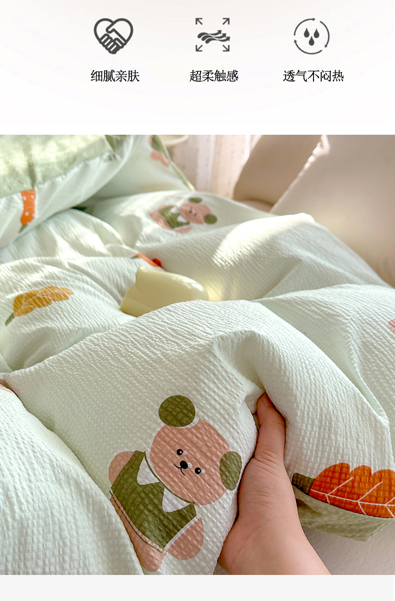 商品名称:家贝爱 2026新款轻氧泡泡棉被套 小熊木木
