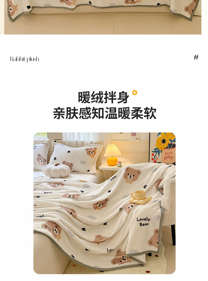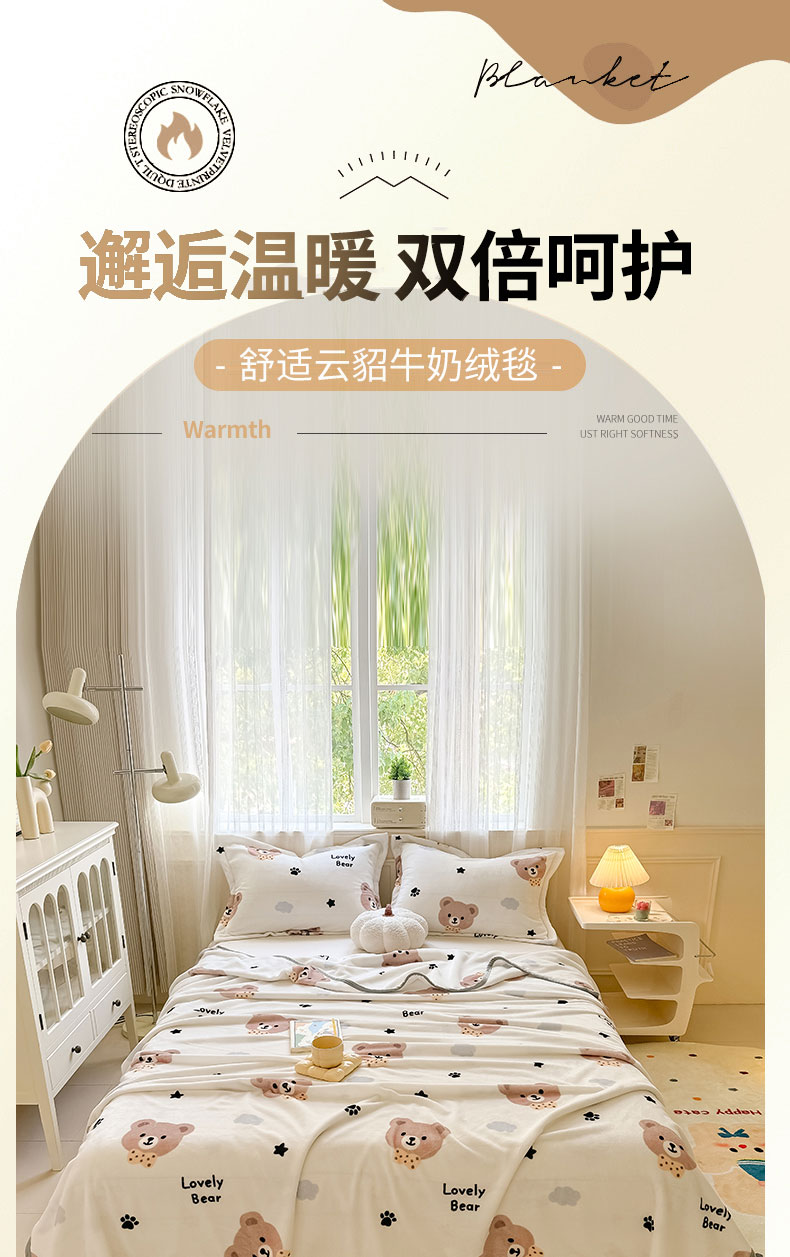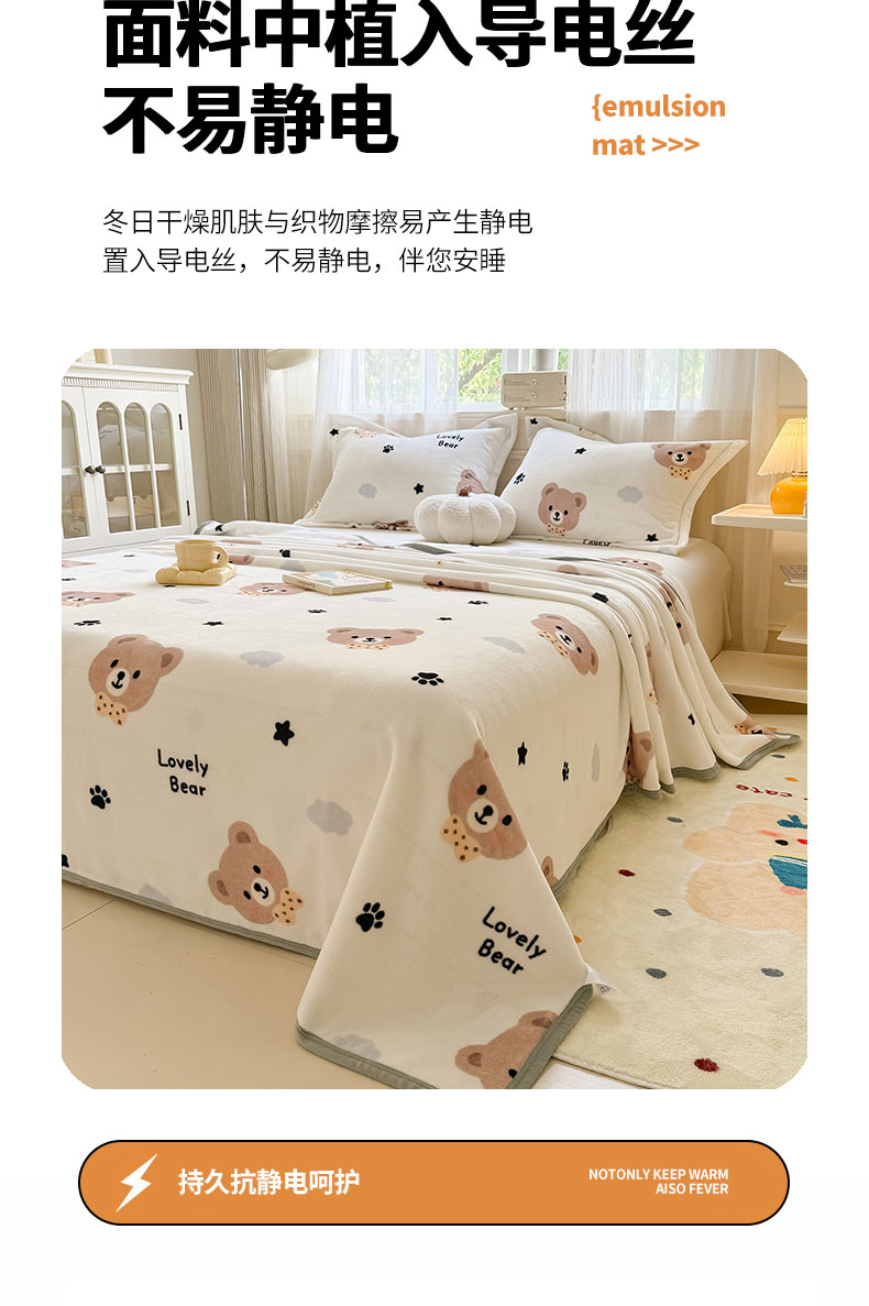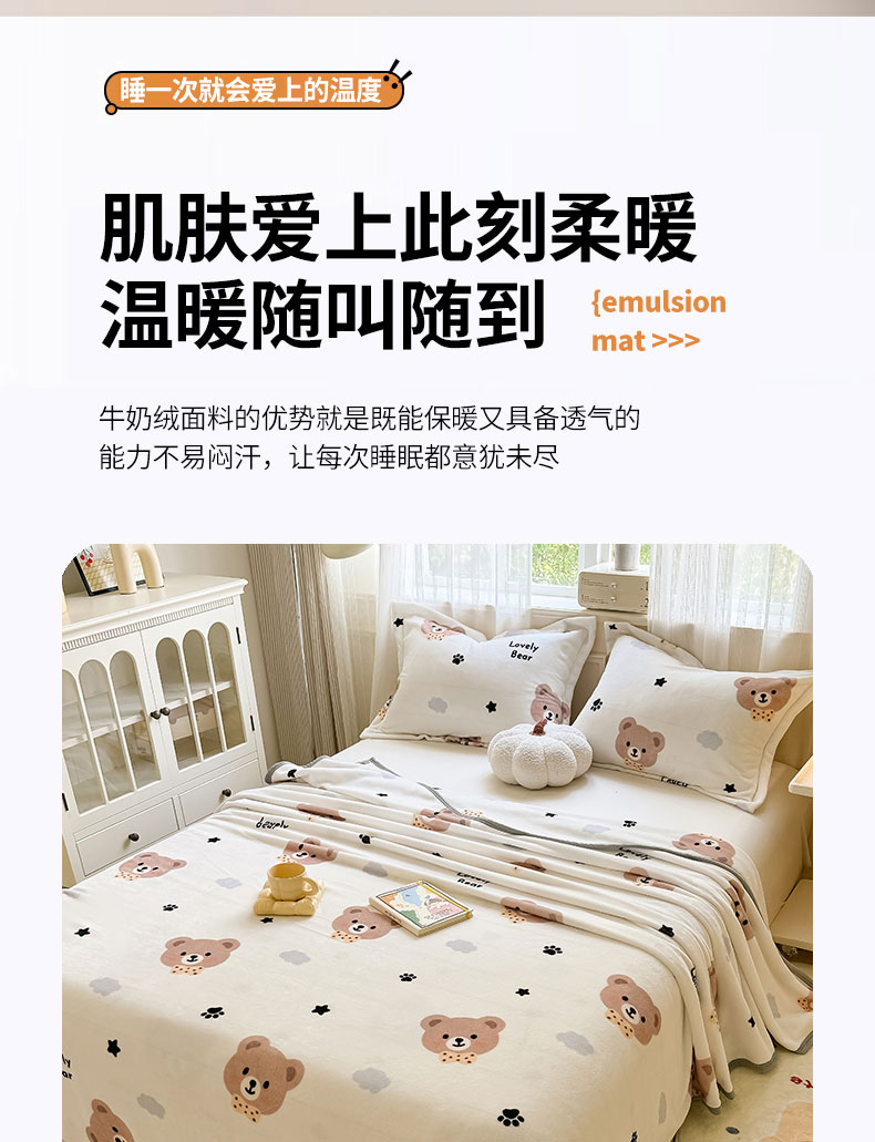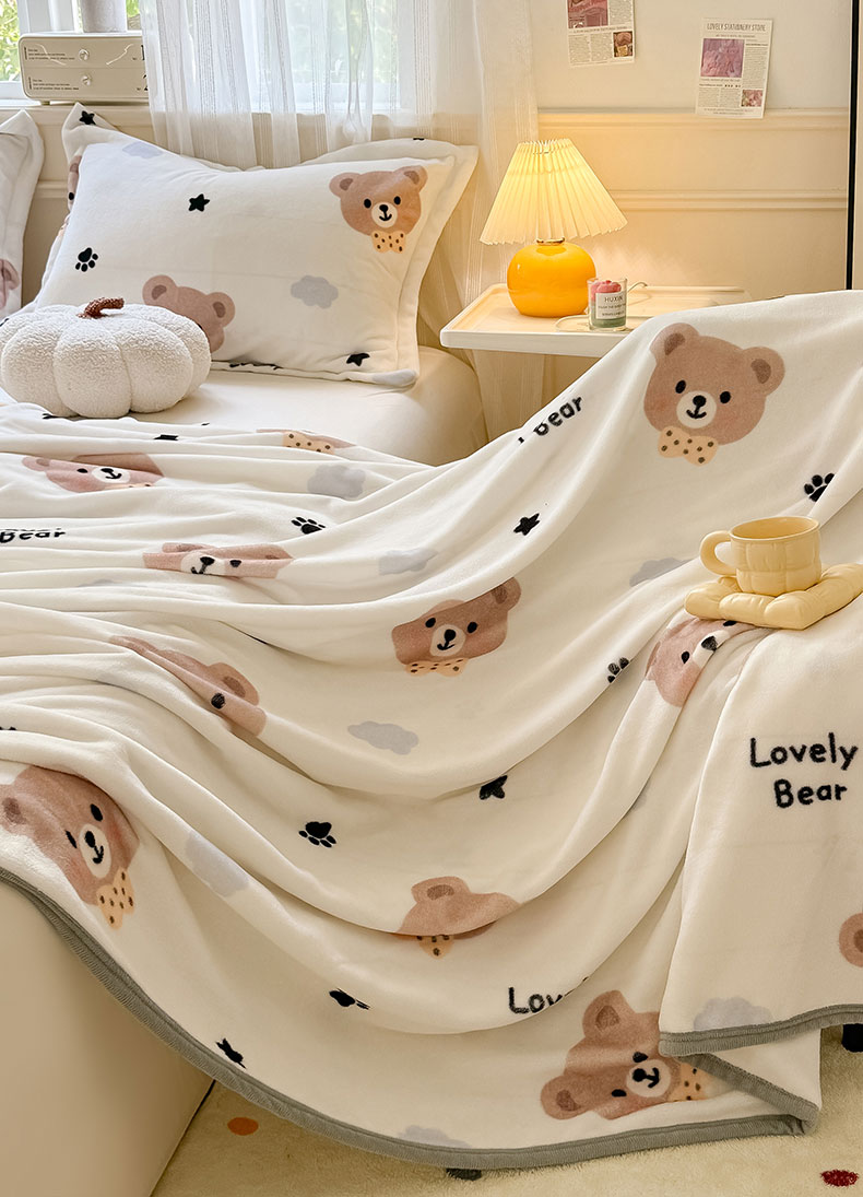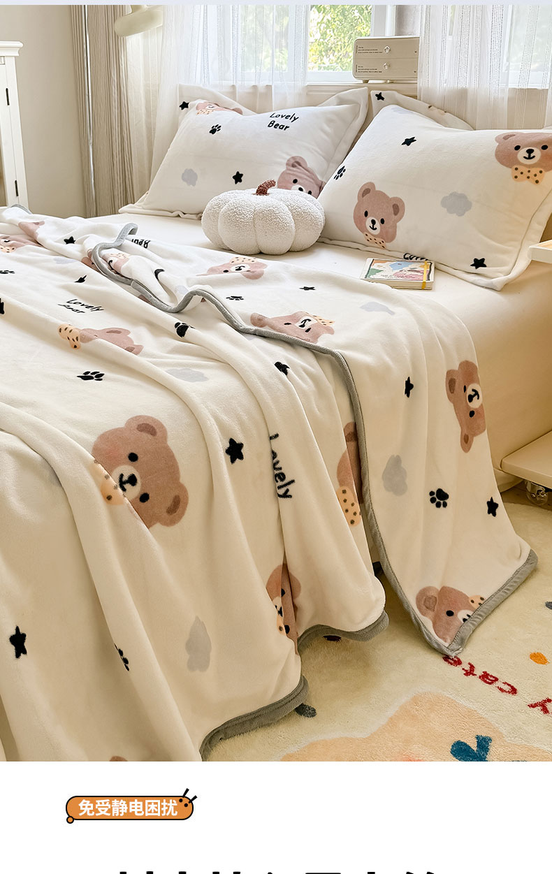 商品名称:宅部落 2026新款亲肤舒适牛奶绒印花毛毯毯子300克云貂绒盖毯毯子 熊的脚印