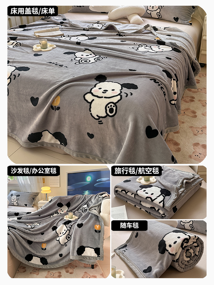 (总)宅部落 2026新款亲肤舒适牛奶绒印花毛毯毯子300克云貂绒盖毯毯子,愤怒的小煤球,黑白熊猫,快乐小汪汪,幸运之花,郁金香小免,卡皮巴拉,酷喵,熊的脚印,腊肠狗,休闲喵喵