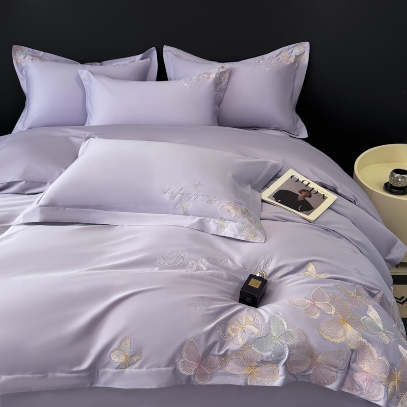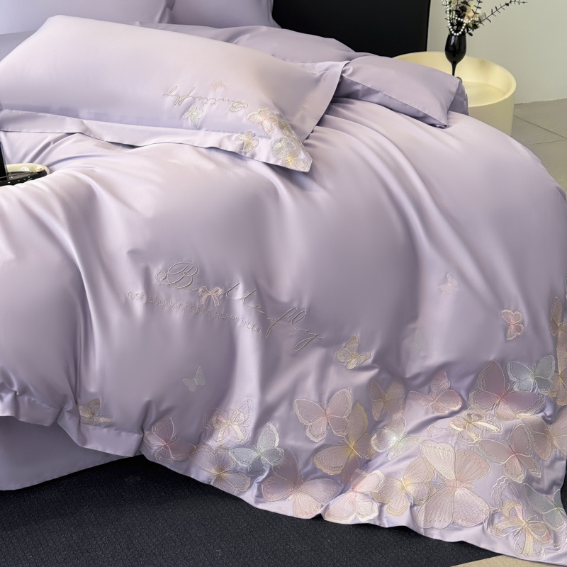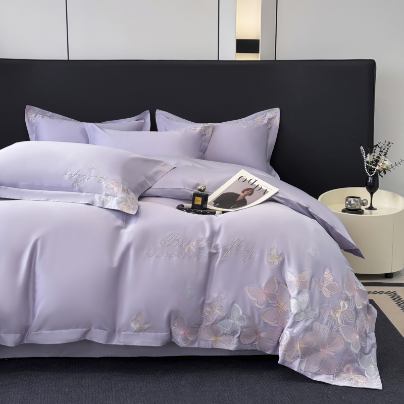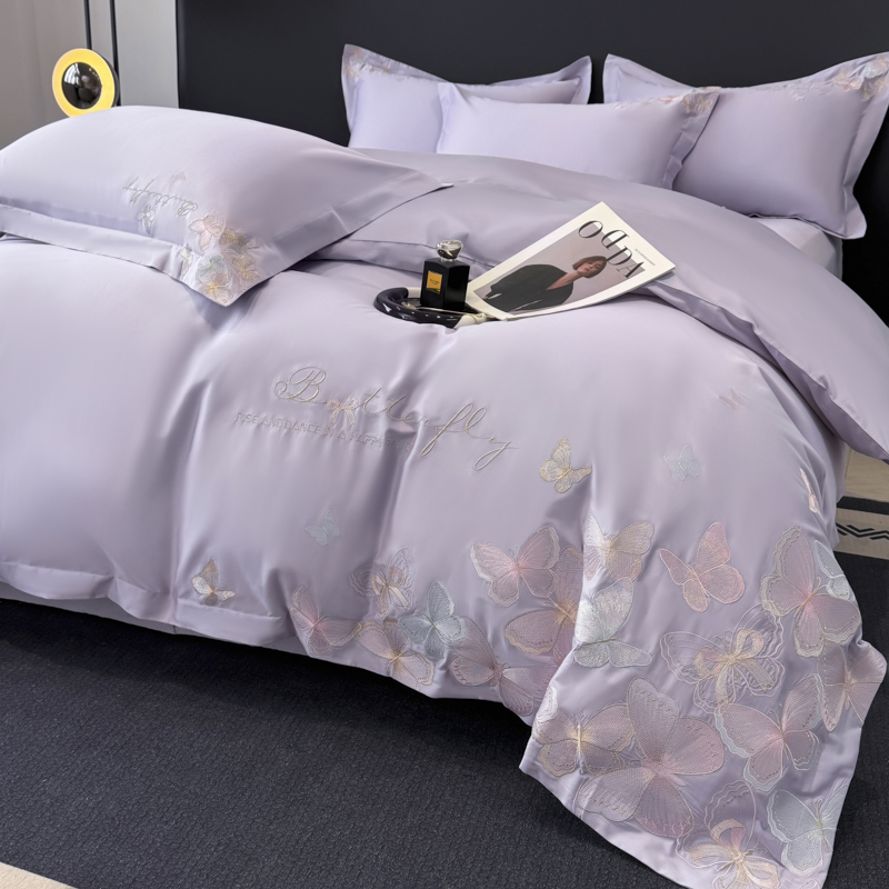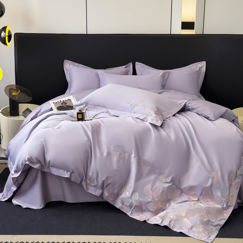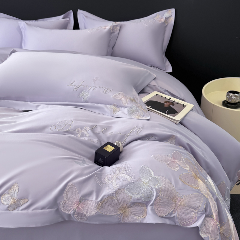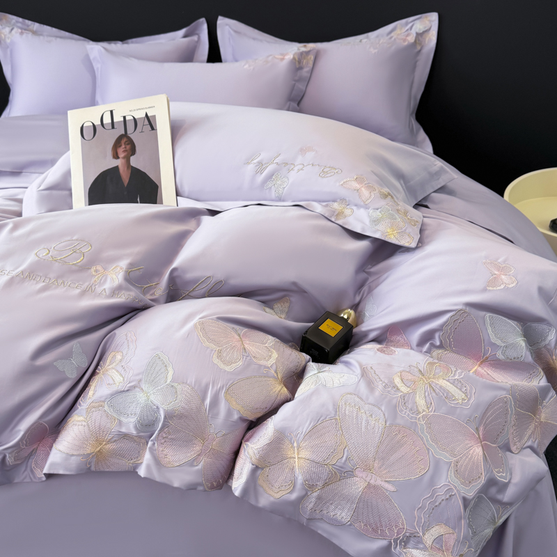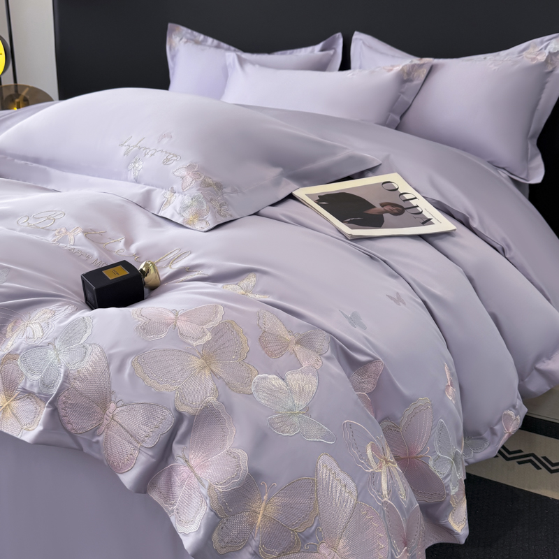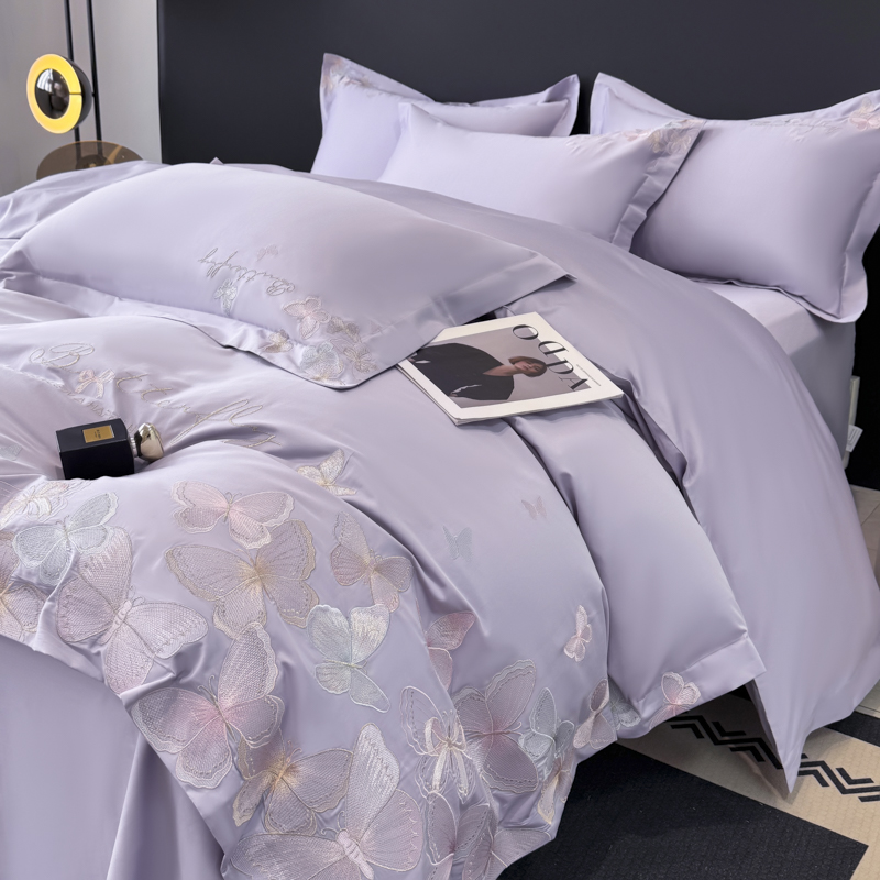 女子家纺 2026新款刺绣亲肤棉轻奢四件套 花蝶 香芋紫
