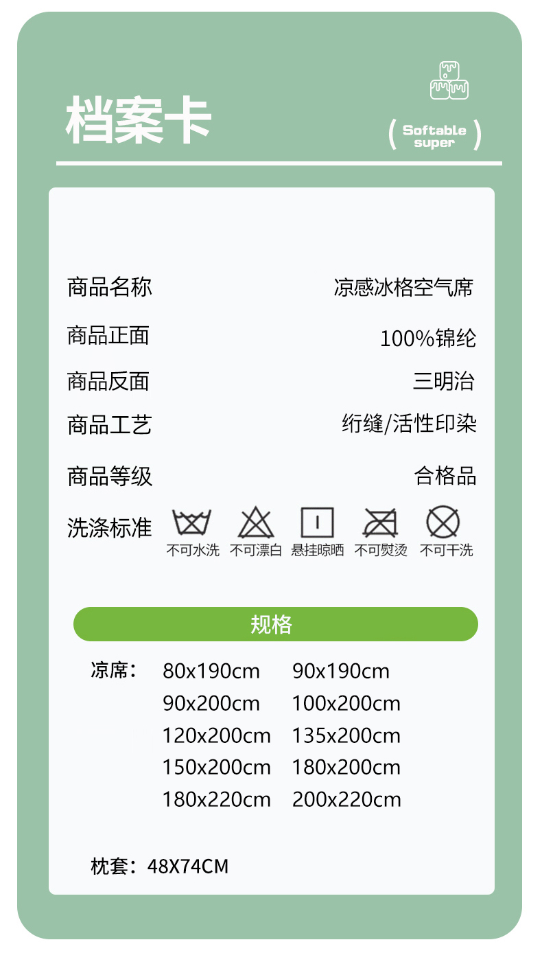 200x220cm单凉席 | ¥88.00 |