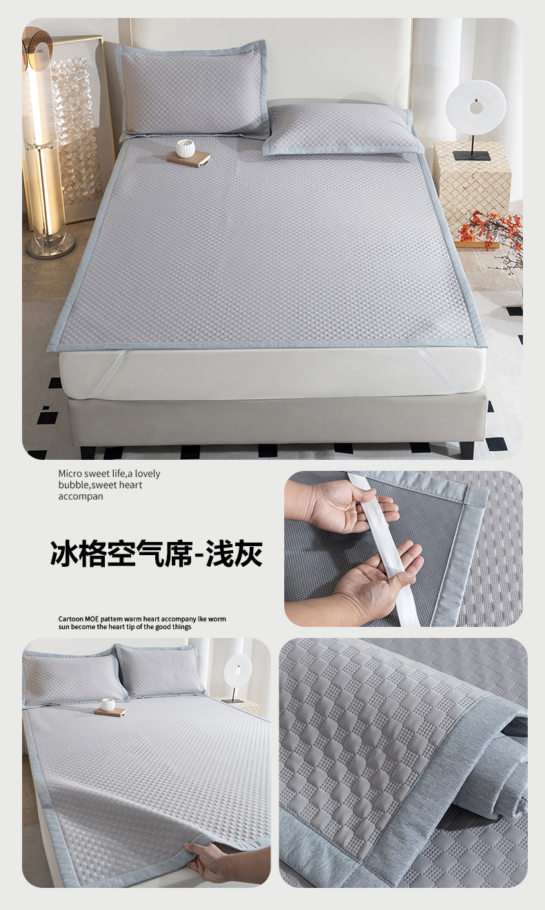 当前位置: 91家纺网 > 商品网购 > 床上用品 > 凉席 > 凉席套件 > 凌云家纺 2026新款宽边锦纶凉感冰丝席三件套冰格空气席单凉席 冰格空气席-浅灰