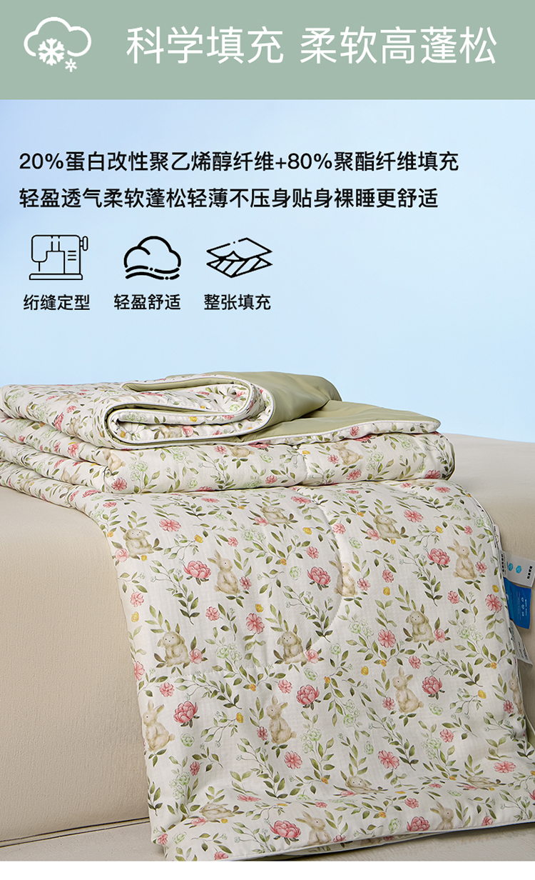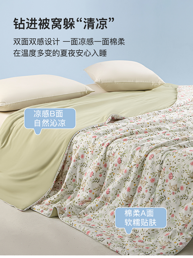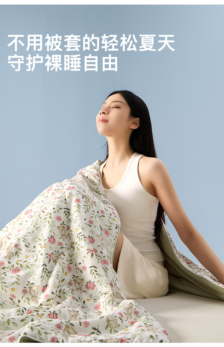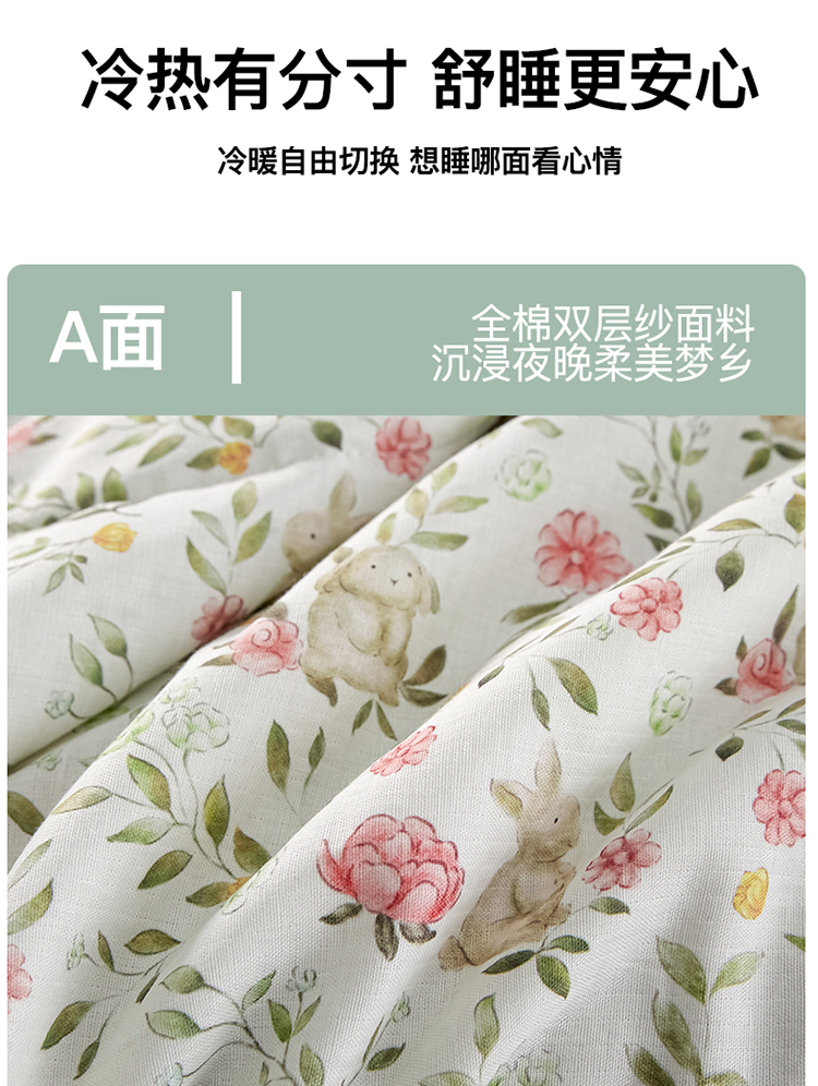 商品名称:金昱纺 2026春夏新款A类全棉双层纱棉花单夏被夏凉被空调被 仙女兔