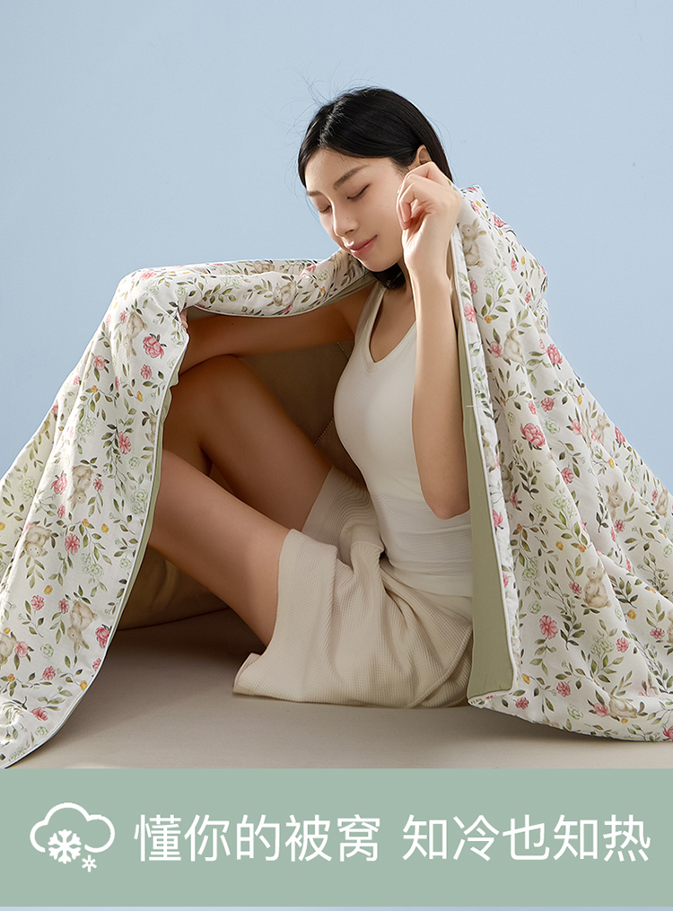 金昱纺 2026春夏新款A类全棉双层纱棉花单夏被夏凉被空调被 仙女兔