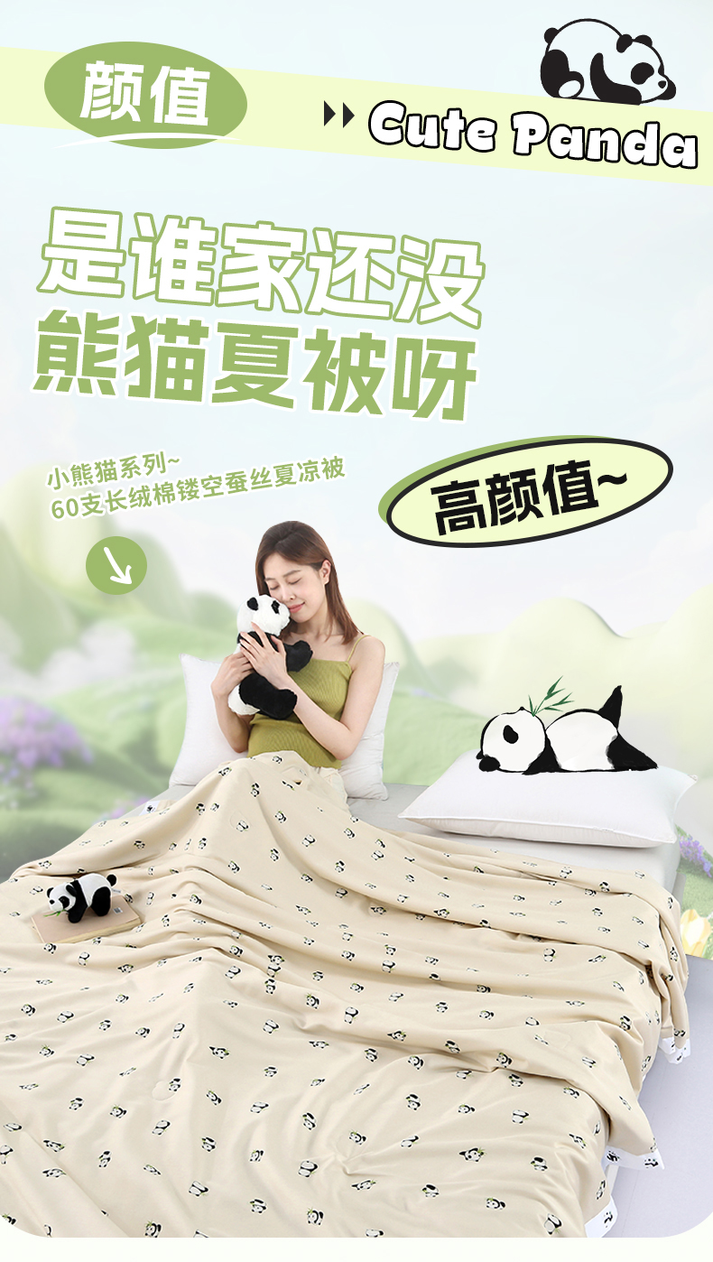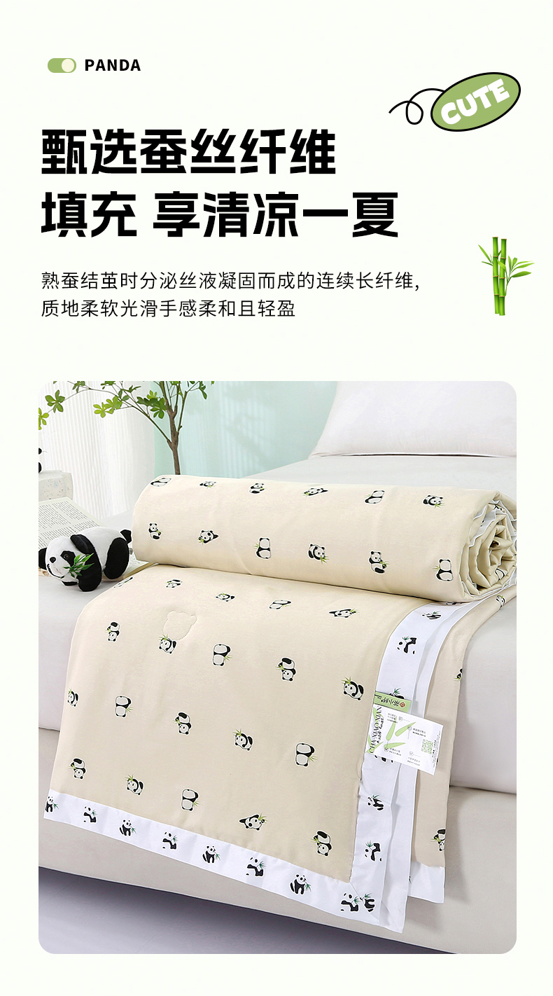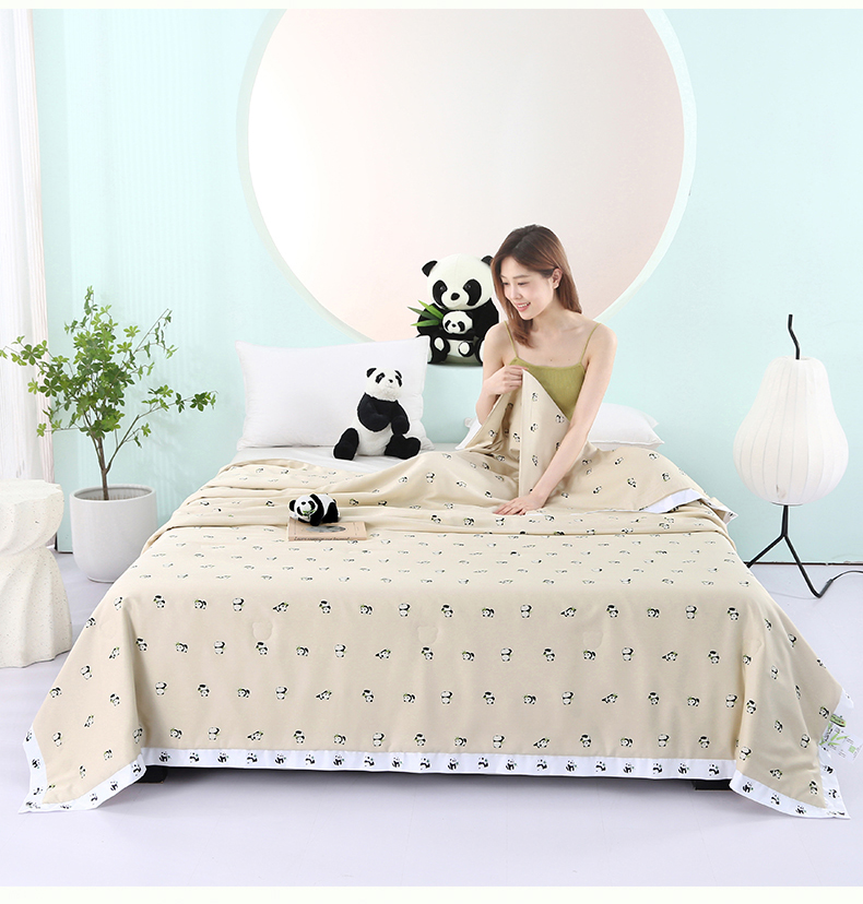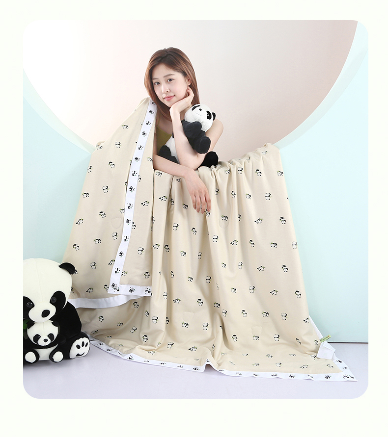 被子 > 夏被 > 薇玛仕 2026小熊猫系列-60支精梳长绒棉双拼角宽边双A类母婴级儿童蚕丝夏凉被空调被 小熊猫-金