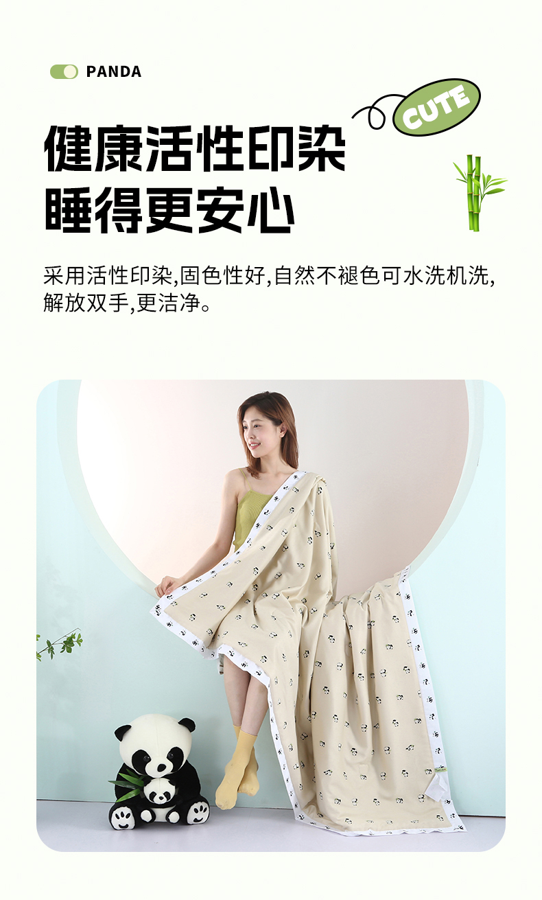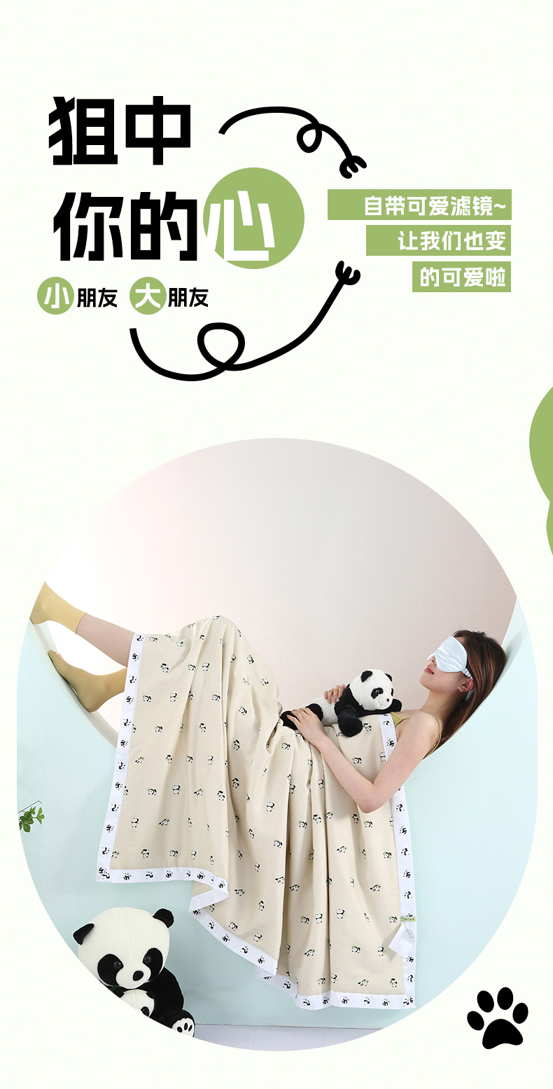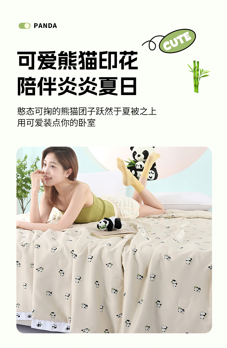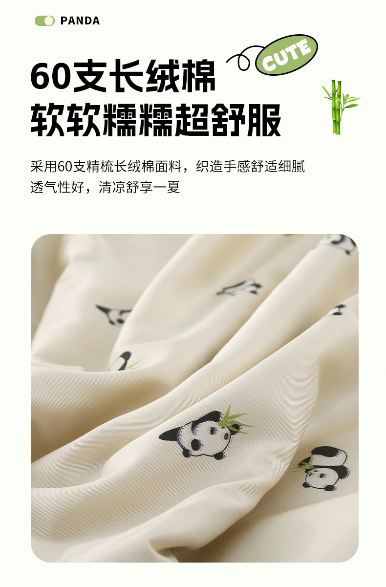 被子 > 夏被 > 薇玛仕 2026小熊猫系列-60支精梳长绒棉双拼角宽边双A类母婴级儿童蚕丝夏凉被空调被 小熊猫-金