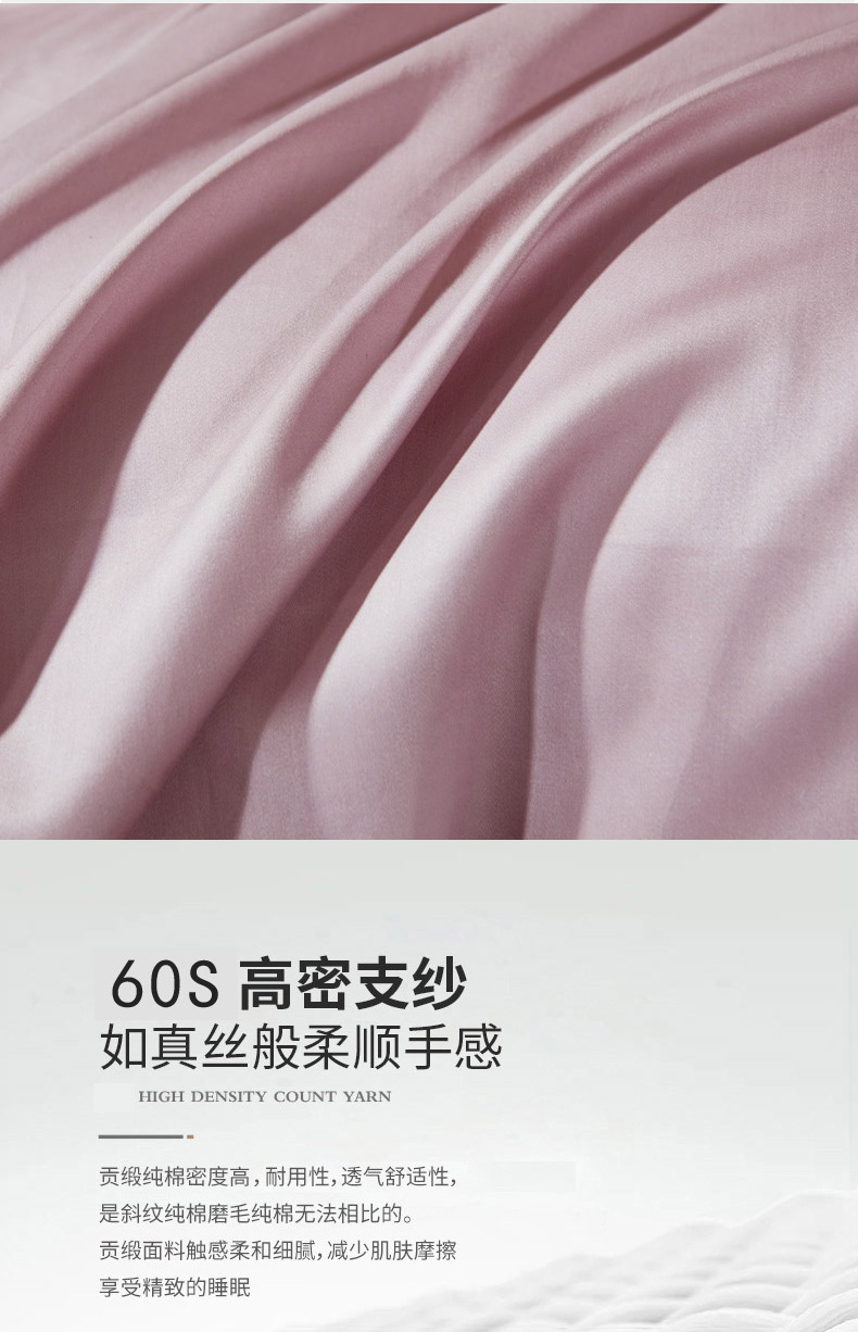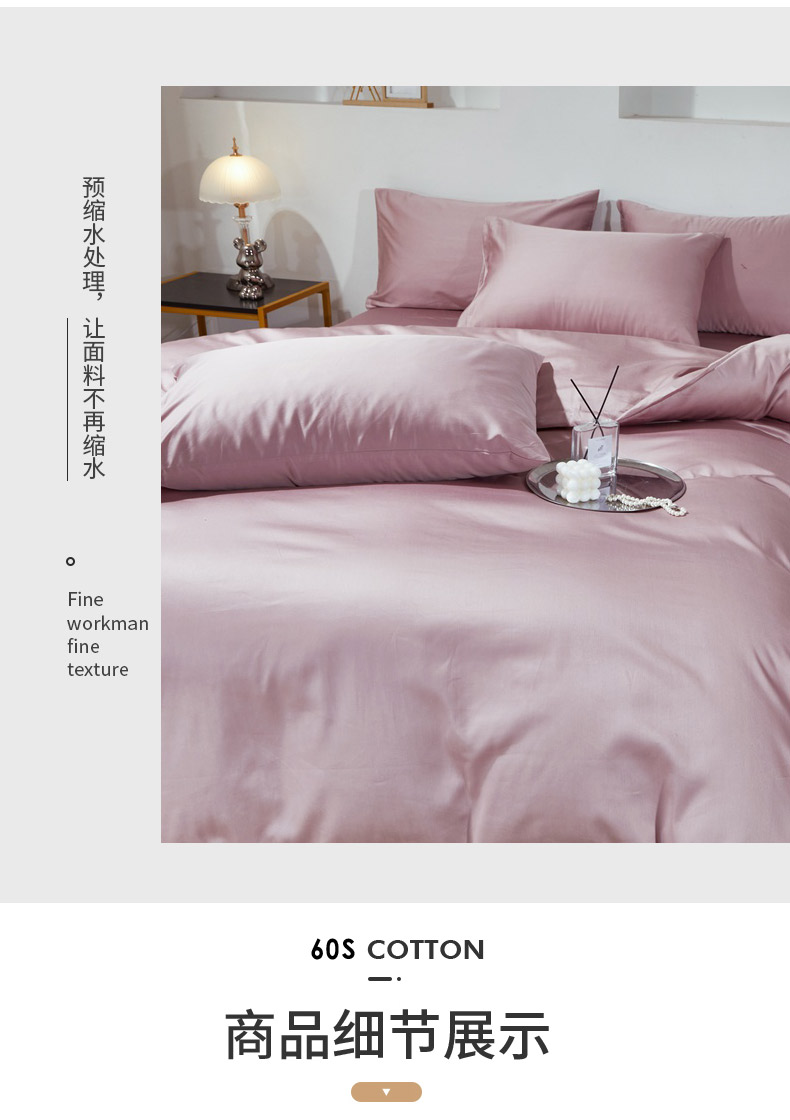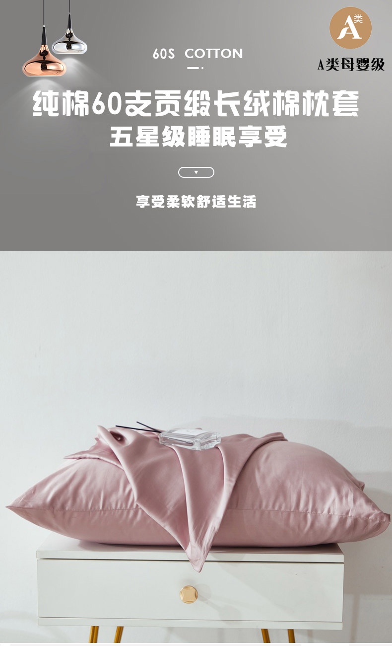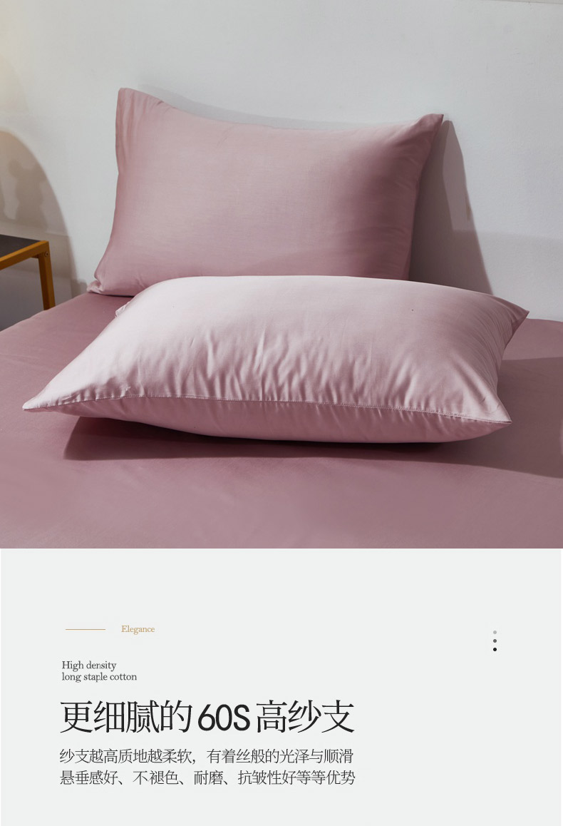 商品名称:晶缦家纺 2026新款全棉A类纯棉60支贡缎长绒棉纯色单枕套单品枕套枕套单件 琳琅-粉豆沙