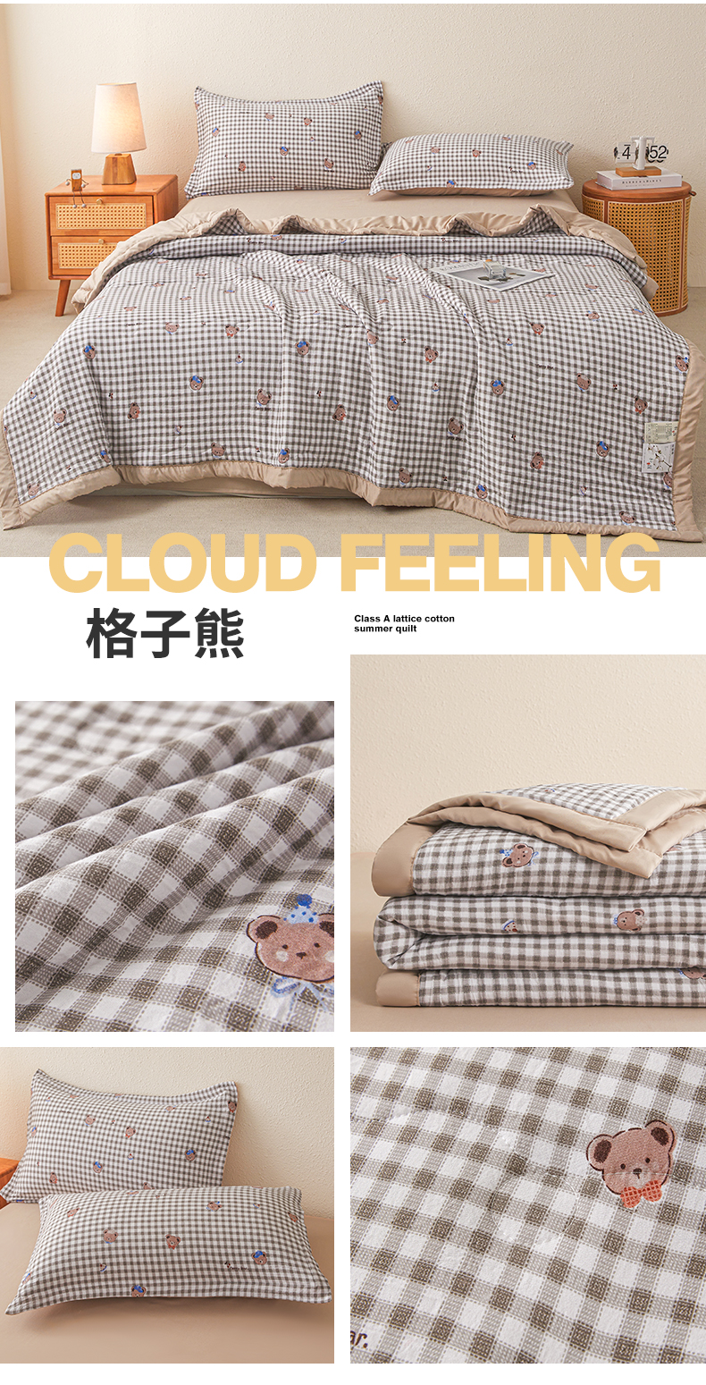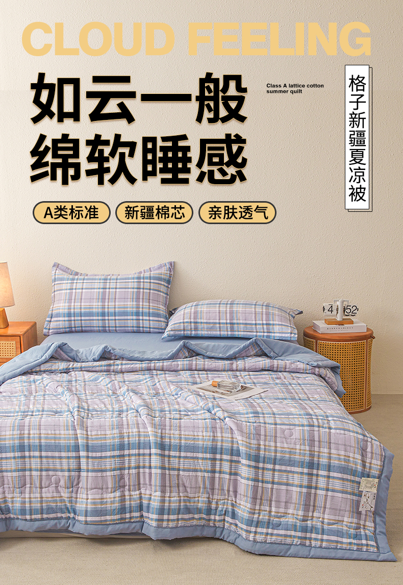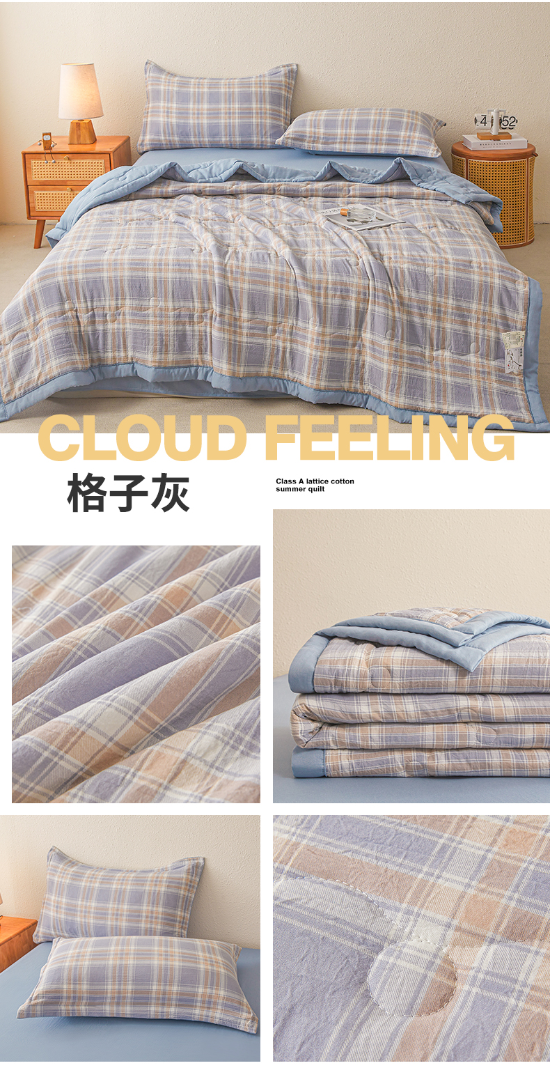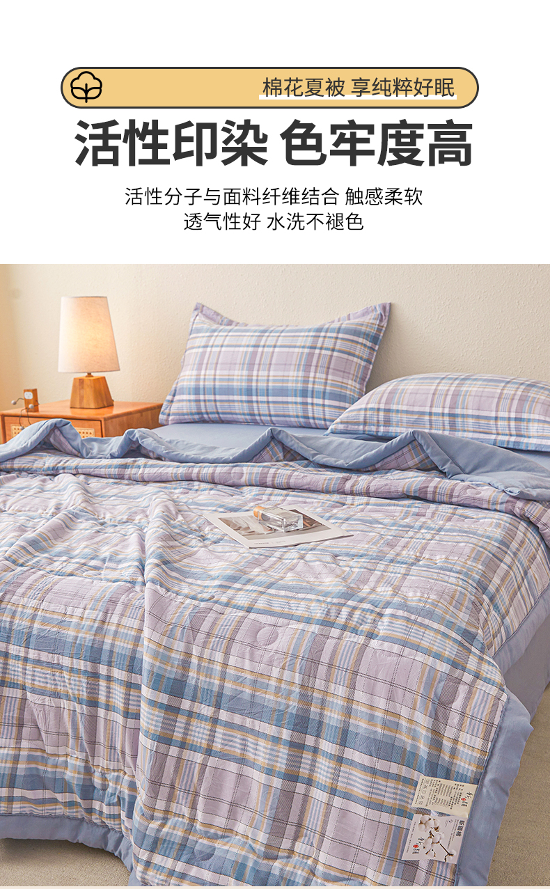(总)西域种棉人·千百笠 2026新款A类新疆棉花夏凉被加宽包边水洗棉无印格子印花吸湿透气棉花夏被空调被,格子灰,格子蓝,格子熊,格子紫,小格灰,小格绿