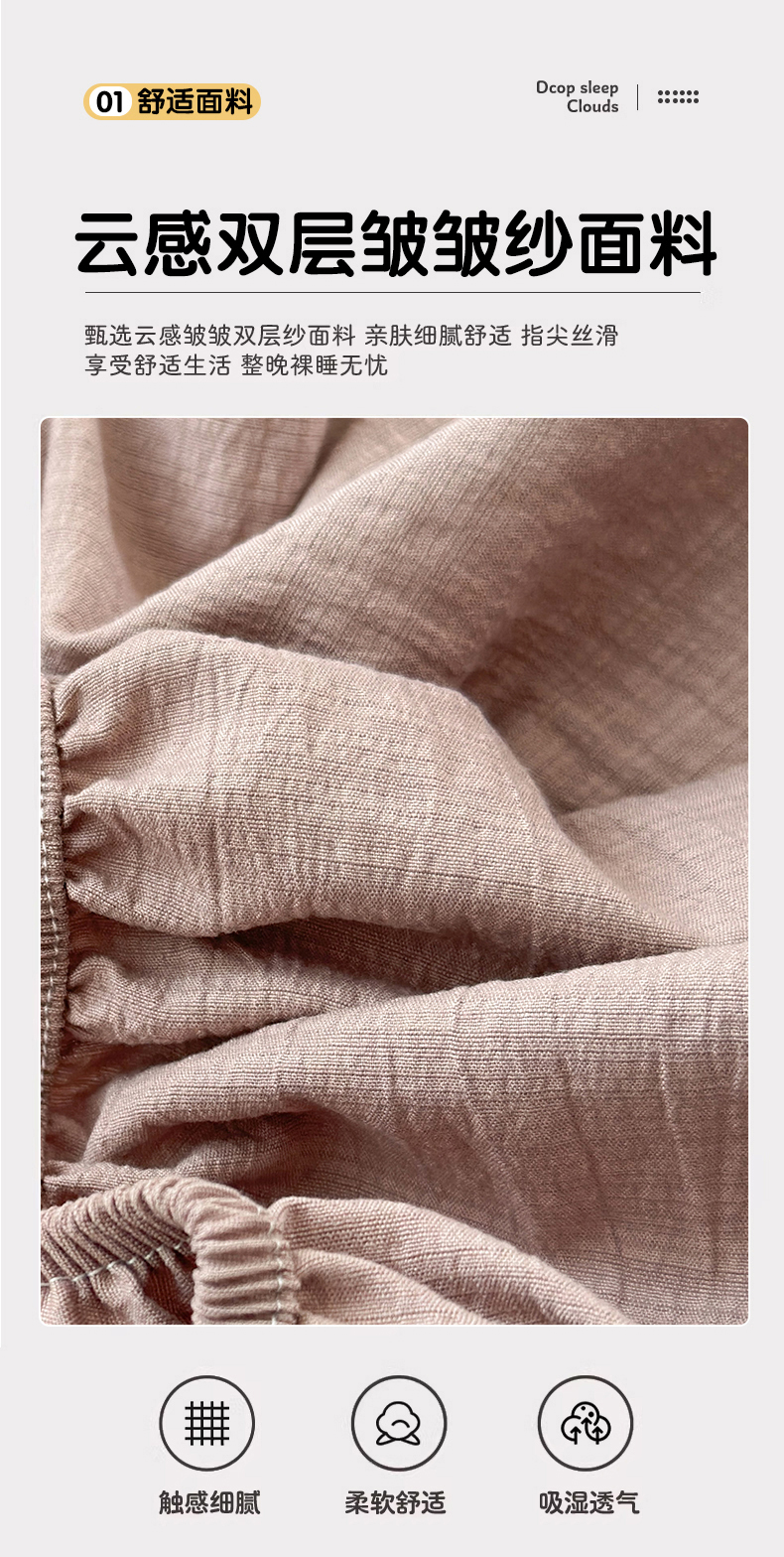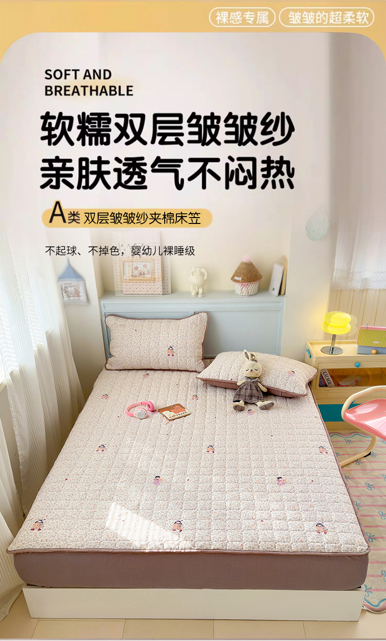 丽美人家纺 2026新款双层皱皱纱大豆夹棉床笠单床笠床笠单件 JM时光