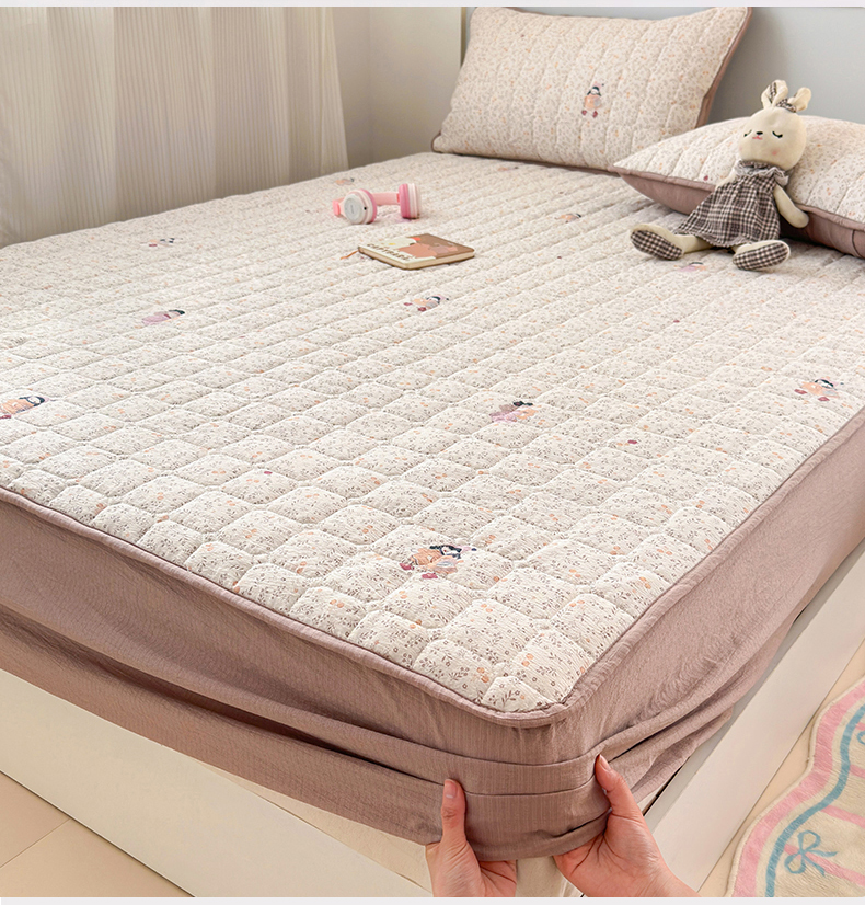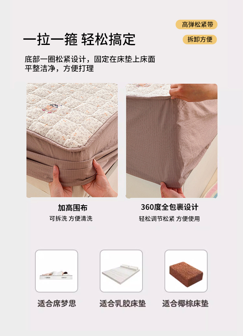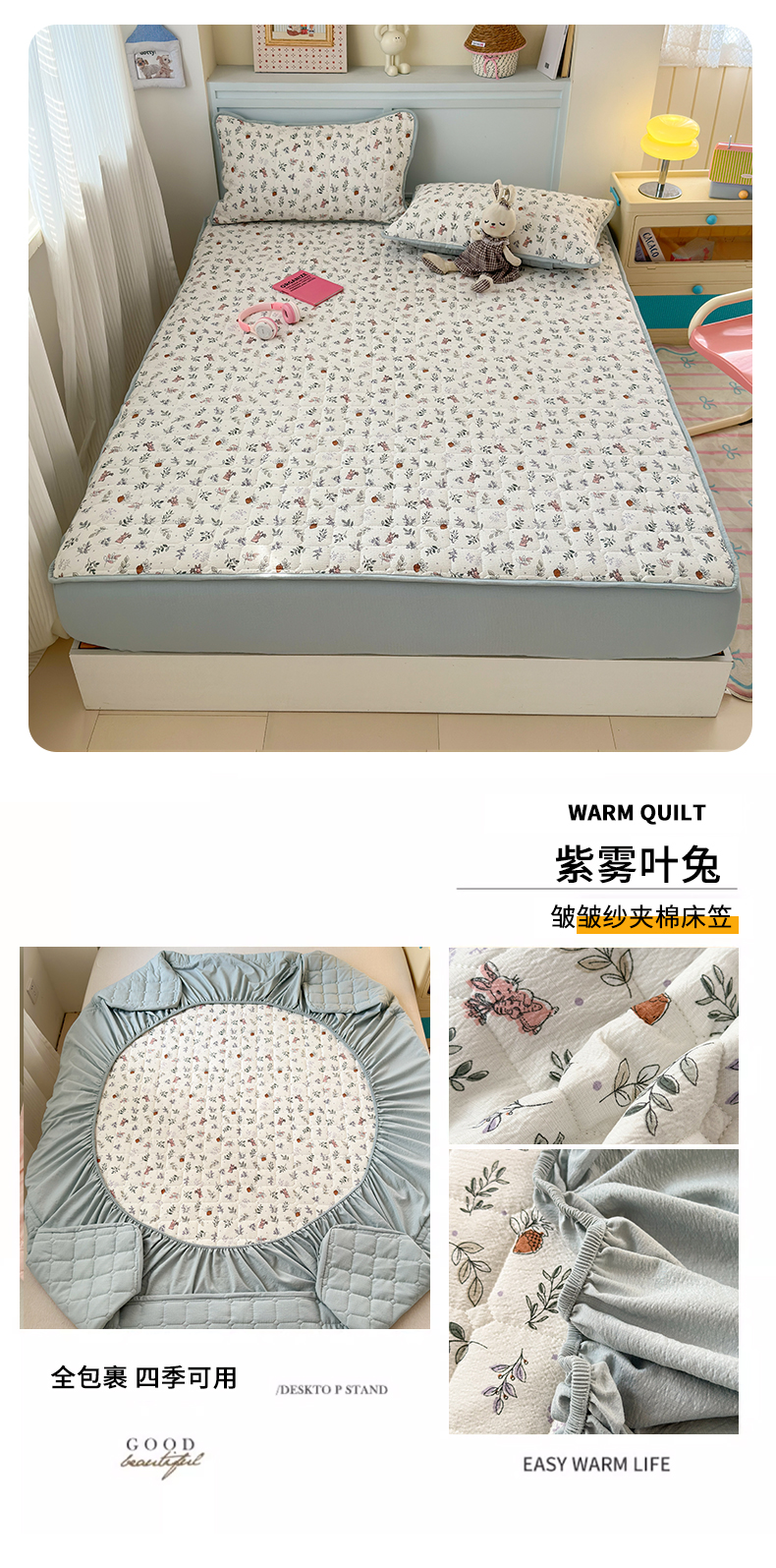 • 91家纺网 家纺一手货源 找家纺 (总)丽美人家纺 2026新款双层皱皱纱大豆夹棉床笠单床笠床笠单件,JM花开漫漫,JM贝拉,JM布兰卡,JM粉格猫咪,JM格仔萌宠,JM可爱小狗,JM腊肠狗,JM乐园,JM玛丽,JM时光,JM月境骑踪,JM紫雾叶兔