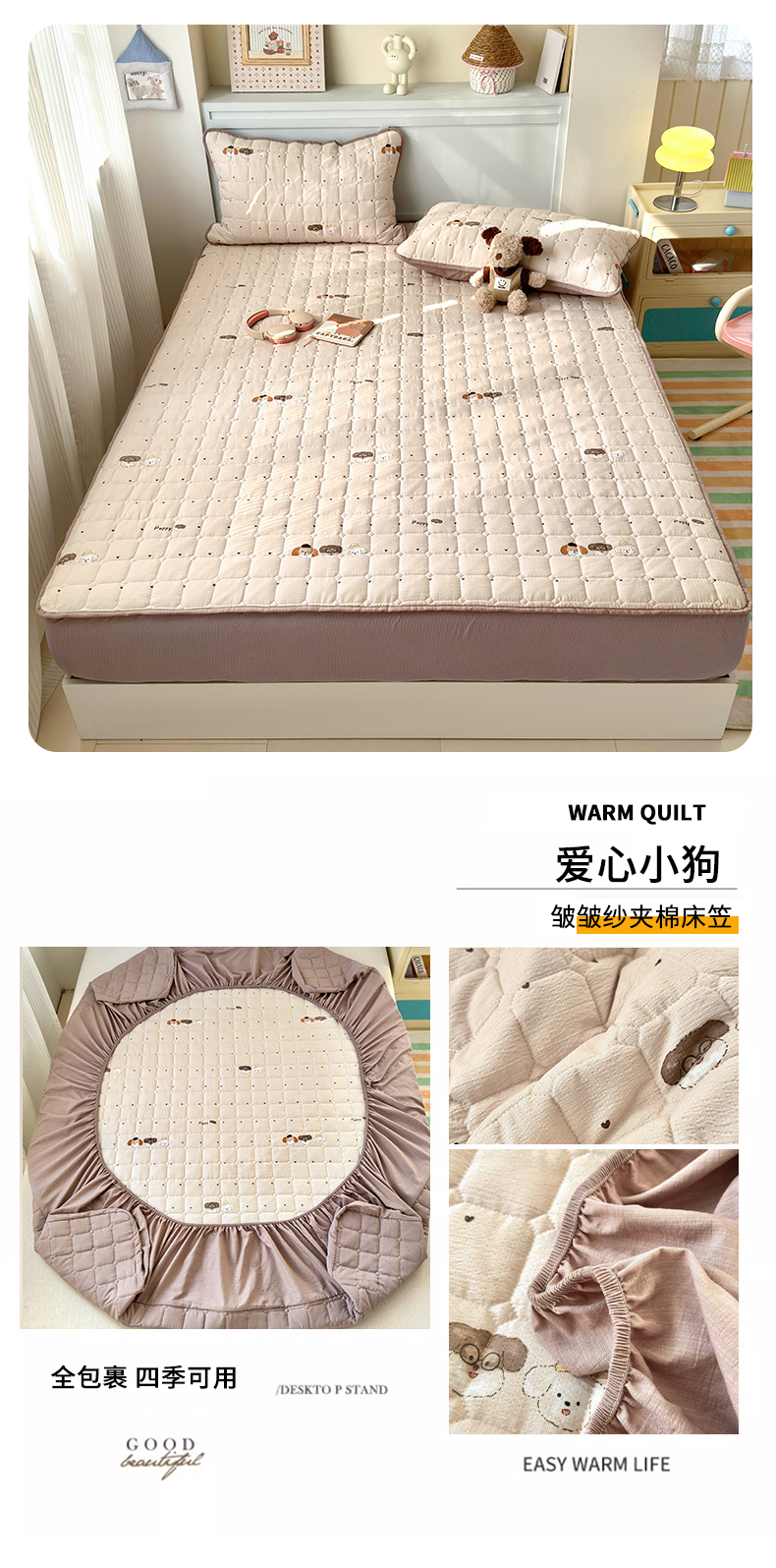 (总)丽美人家纺 2026新款双层皱皱纱大豆夹棉床笠单床笠床笠单件,JM花开漫漫,JM贝拉,JM布兰卡,JM粉格猫咪,JM格仔萌宠,JM可爱小狗,JM腊肠狗,JM乐园,JM玛丽,JM时光,JM月境骑踪,JM紫雾叶兔