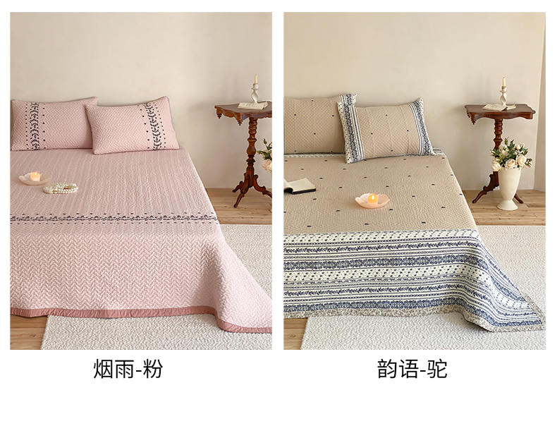 (总)麻依 2026新款全棉纯棉纱布床盖三件套四季款,半纱-粉,半纱-蓝,半纱-驼,慕白-绿,慕白-粉,慕白-驼,组合图仅供展示-不可下单
