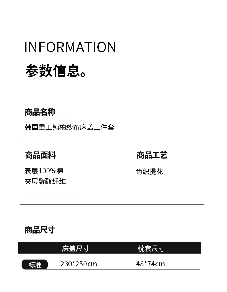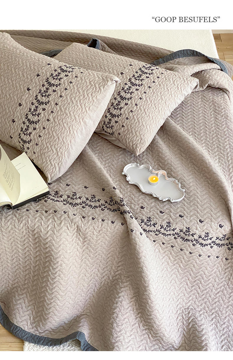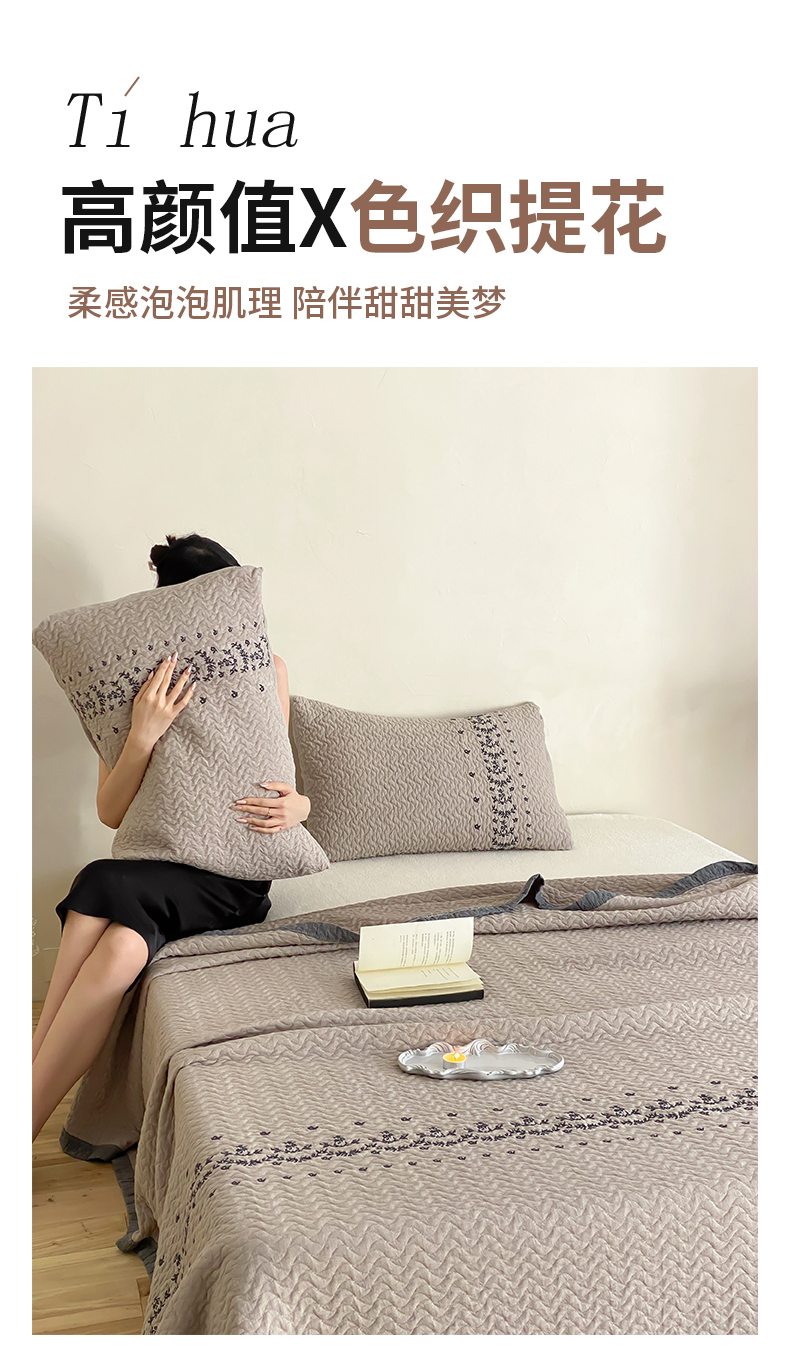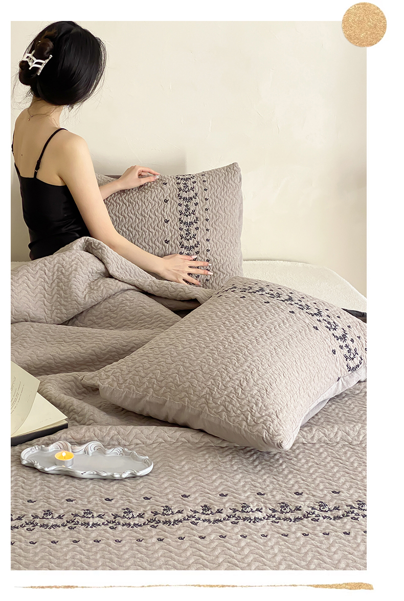 商品名称:麻依 2026新款韩国重工全棉纱布床盖床盖三件套 烟雨-灰咖