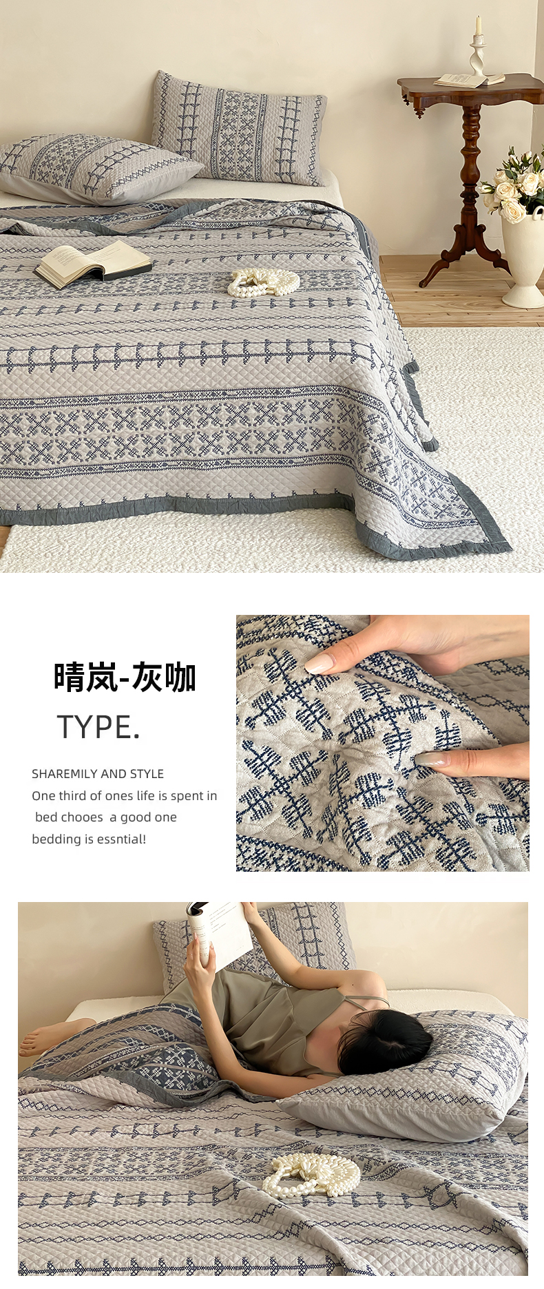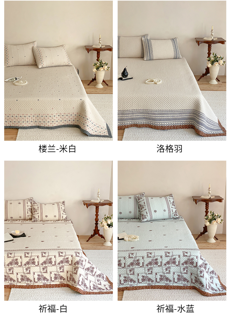 (总)麻依 2026新款韩国重工全棉纱布床盖床盖三件套,楼兰-粉,楼兰-米白,洛格羽,祈福-米白,祈福-水蓝,晴岚-灰咖,晴岚-米白,三叶草,小花排排,烟雨-粉,烟雨-灰咖,韵语-驼,组合图仅供展示-不可下单