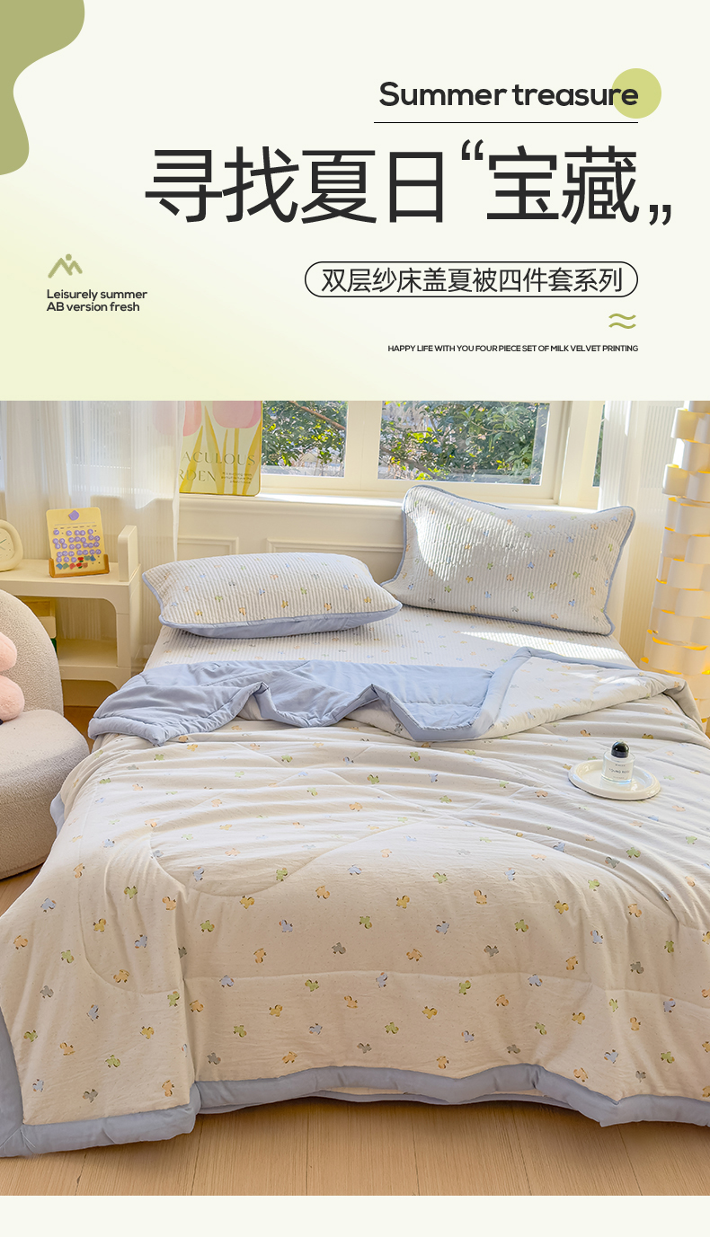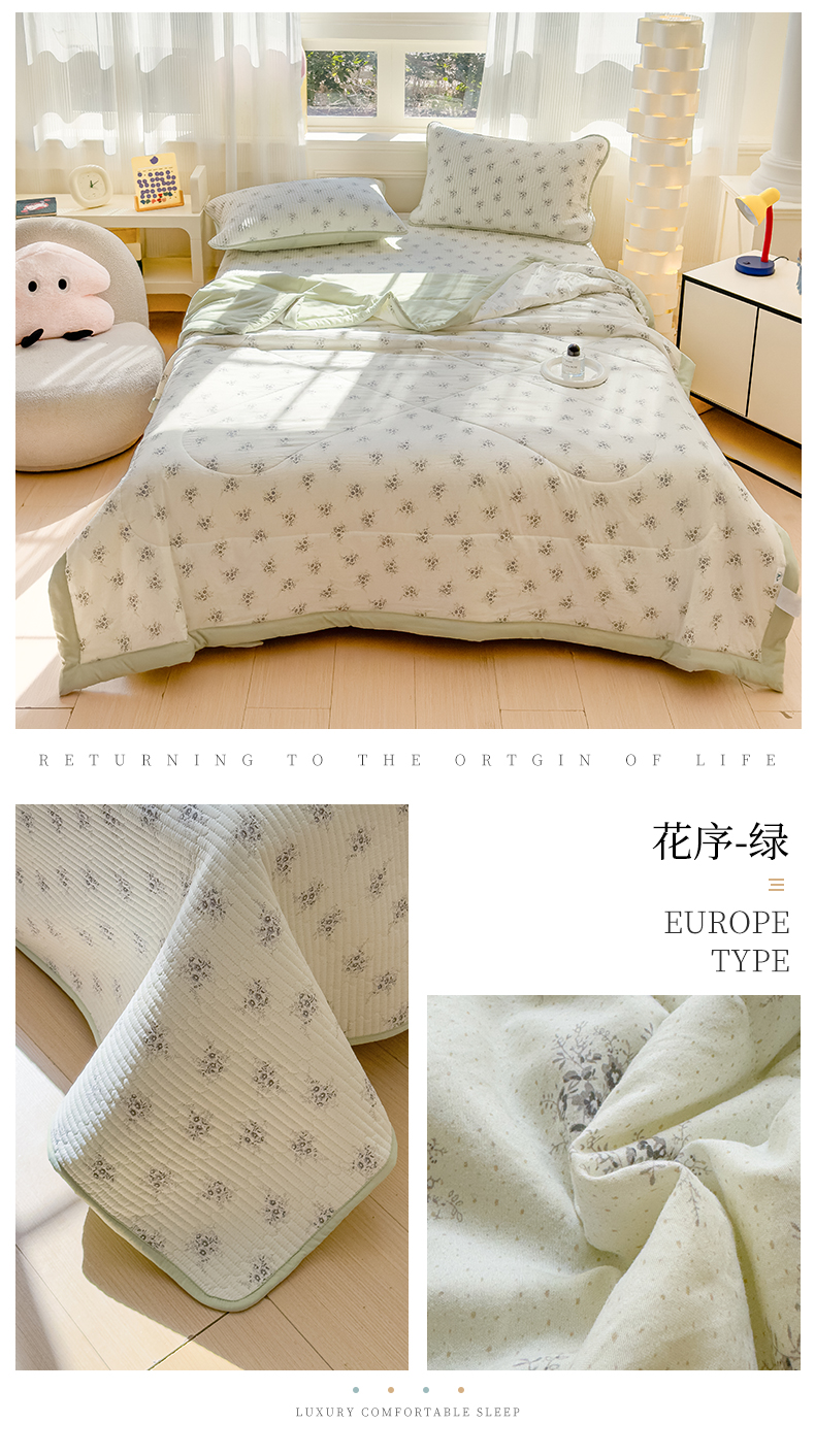 (总)奥裕2025新品 棉麻双层纱夏被 夏被四件套夏凉被子,动物世界-绿,夏日幽香,格调-橘,花园兔-橘,几何-橘,玫瑰柔情-粉,小蘑菇,枇杷-橘,乔凝-绿,石榴-绿,素槿-粉,辛瑞拉-蓝,雅韵-蓝,伊甸园-蓝,优雅花园-橘
