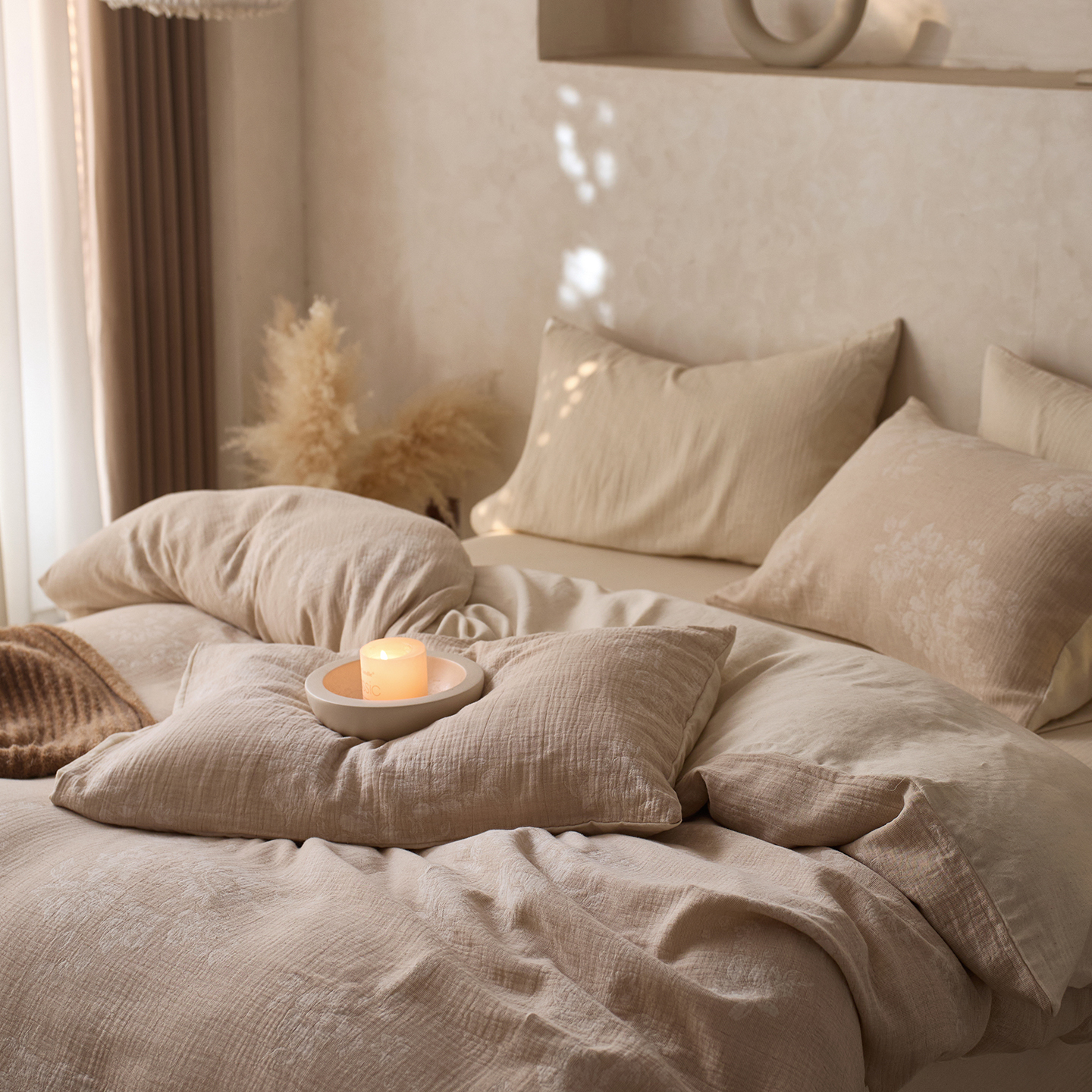 当前位置: 91家纺网 > 商品网购 > 床品套件 > 四件套 > 棉麻四件套 > 尚品本色 2026春夏新款无印风A类色织棉麻提花柔软四件套 鎏光