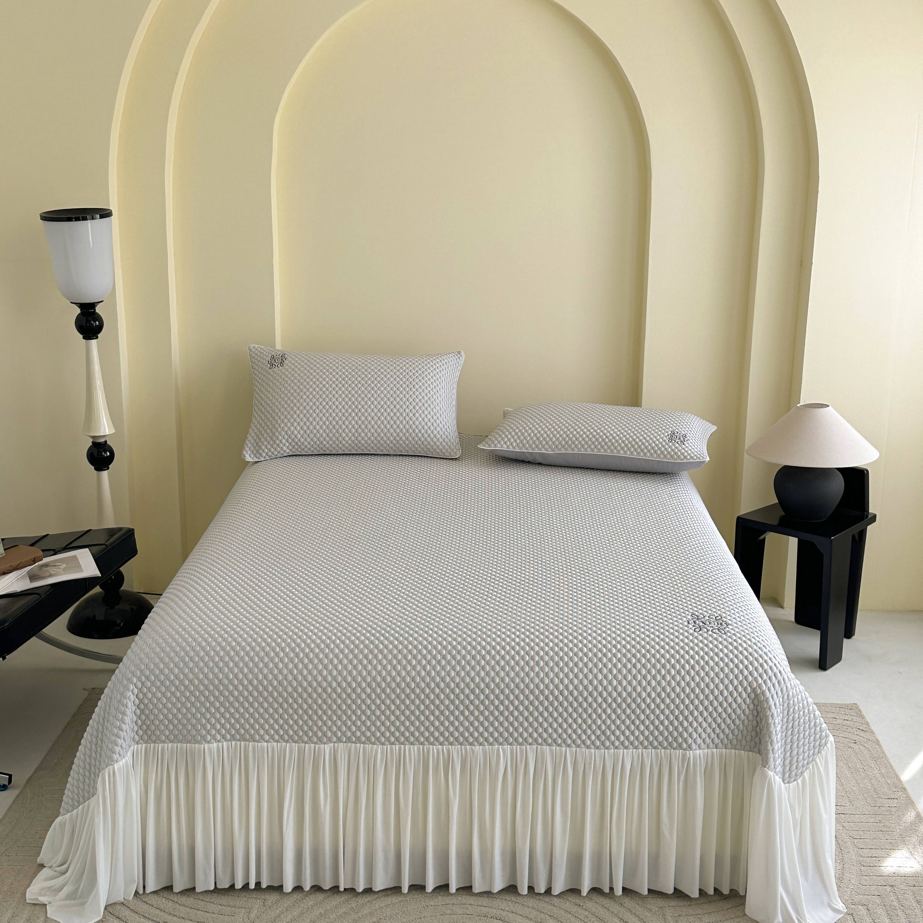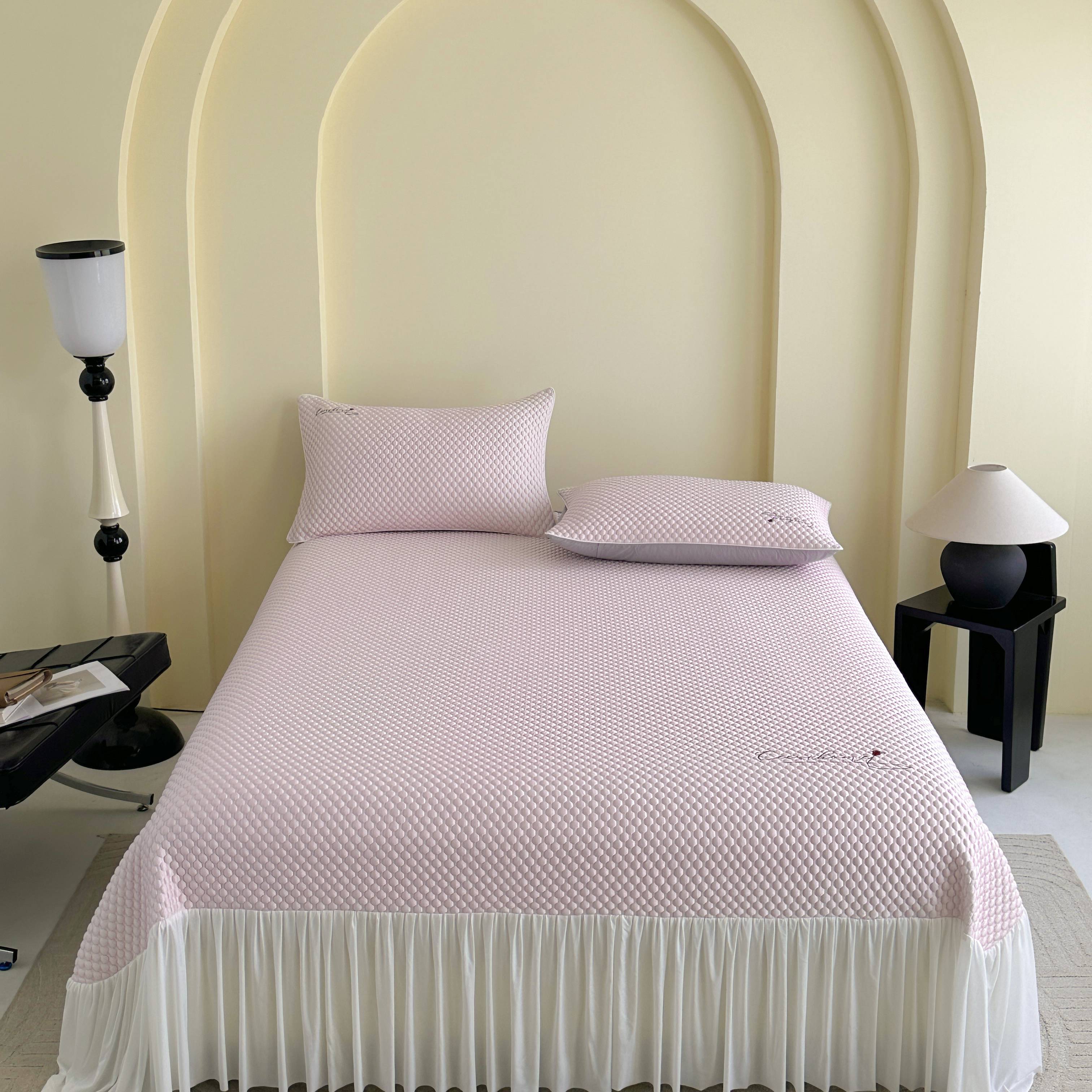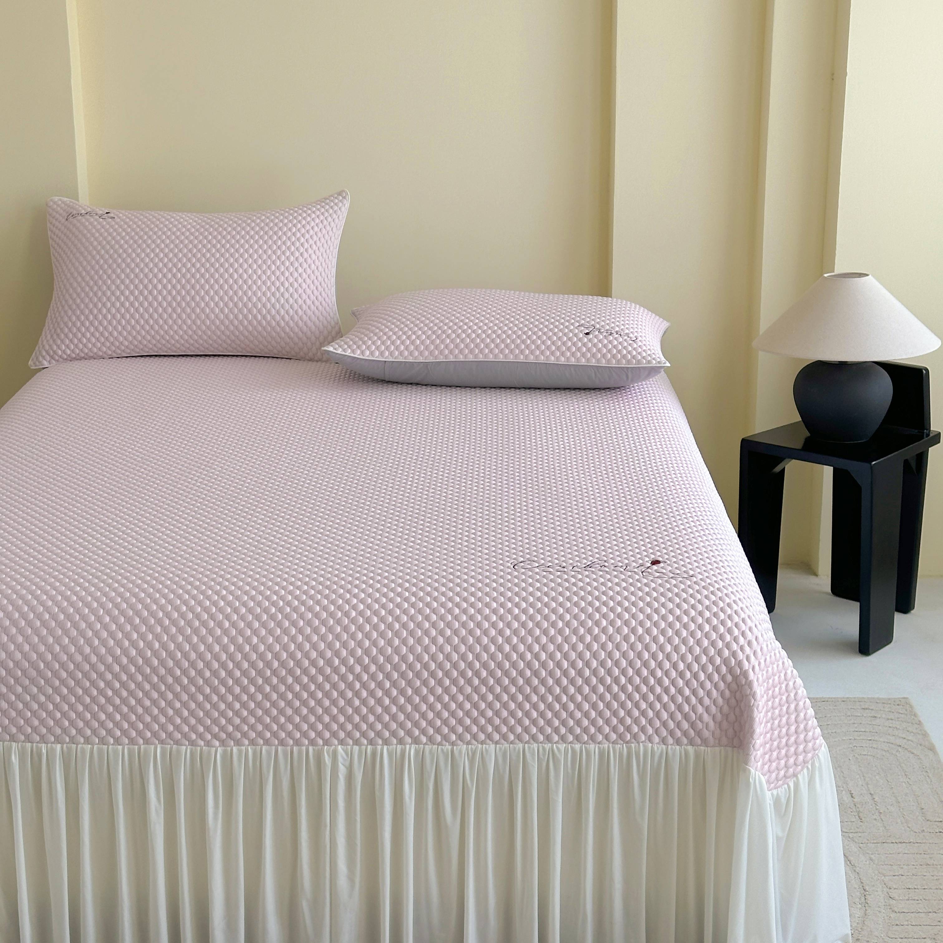 (总)禧禾 2025新款PE高分子A类泡小豆刺绣床裙冷感席三件套-兰蝶秘境,兰蝶秘境-茶绿,兰蝶秘境-浅灰,兰蝶秘境-水粉