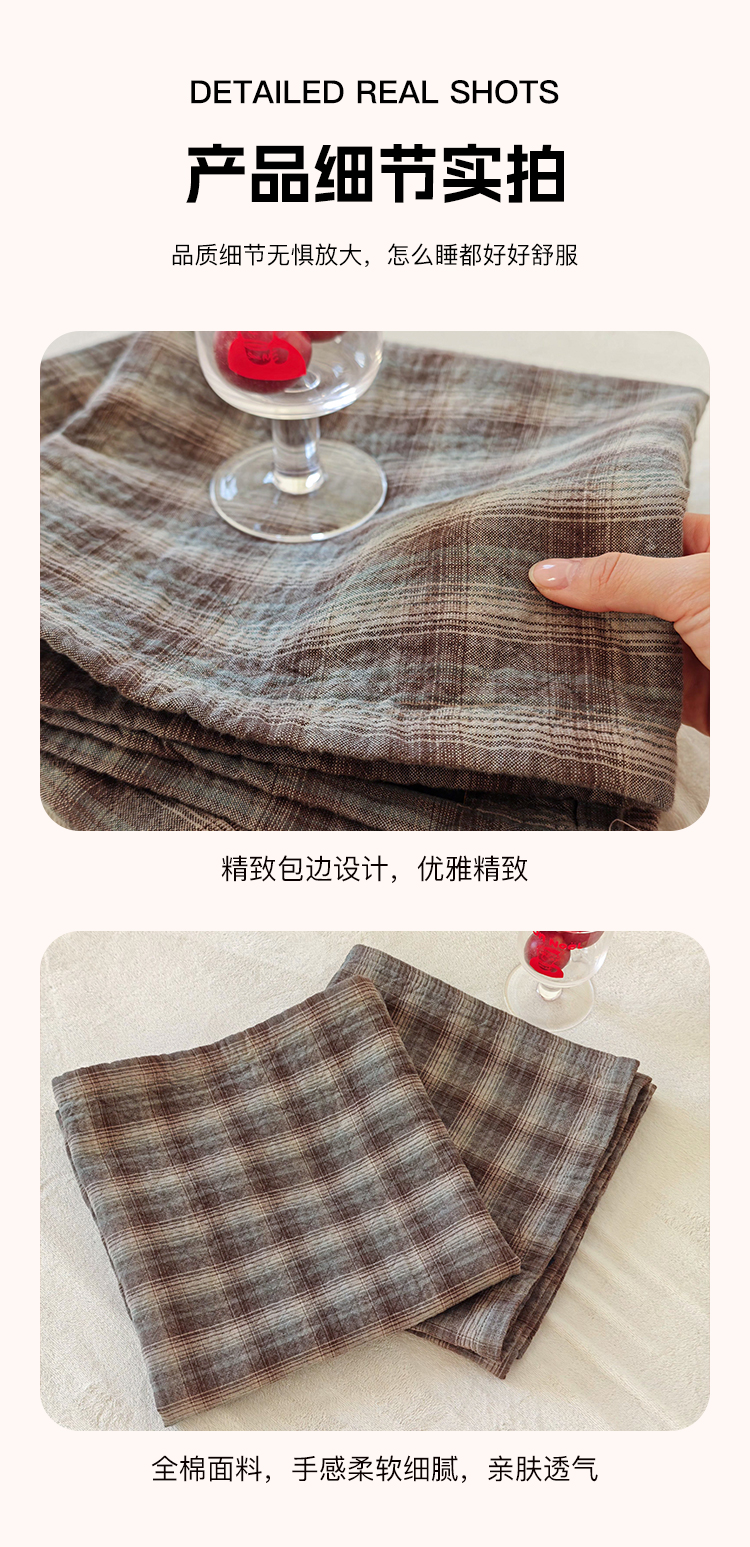 (总)沐瑟家纺 2025新款简约风多功能纱布盖毯纱布毯子毛巾被床盖沙发巾单毯枕巾枕套三件套,H本色,H橙色,H咖色,大马士革本色