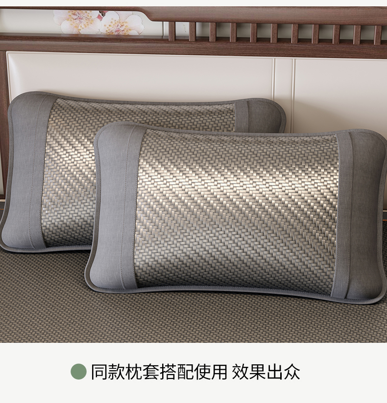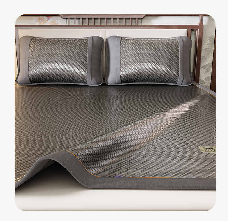 (总)绒艺席业 2026新款A类双面冰藤绣花款学生凉席-抑菌,抑菌咖,抑菌灰